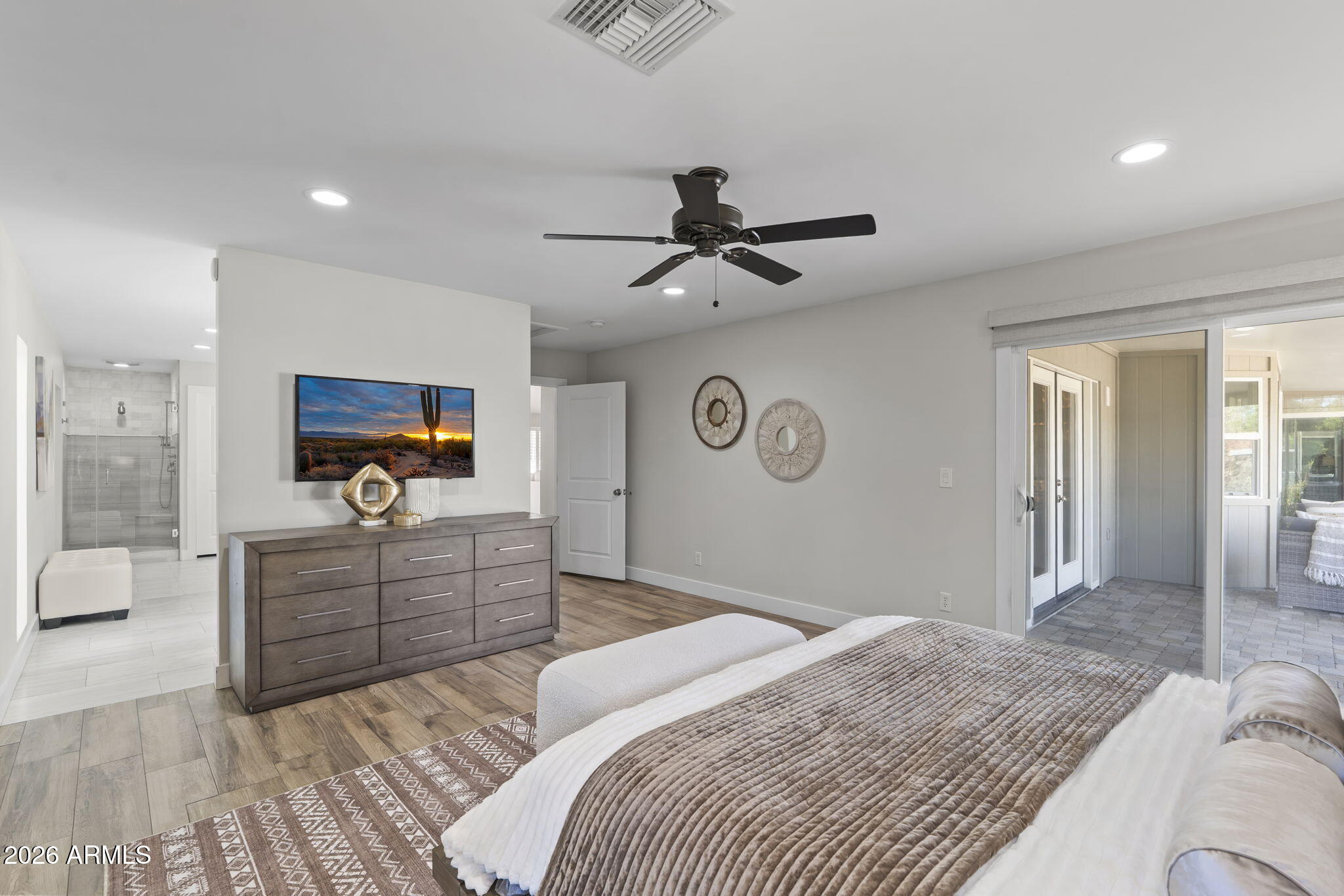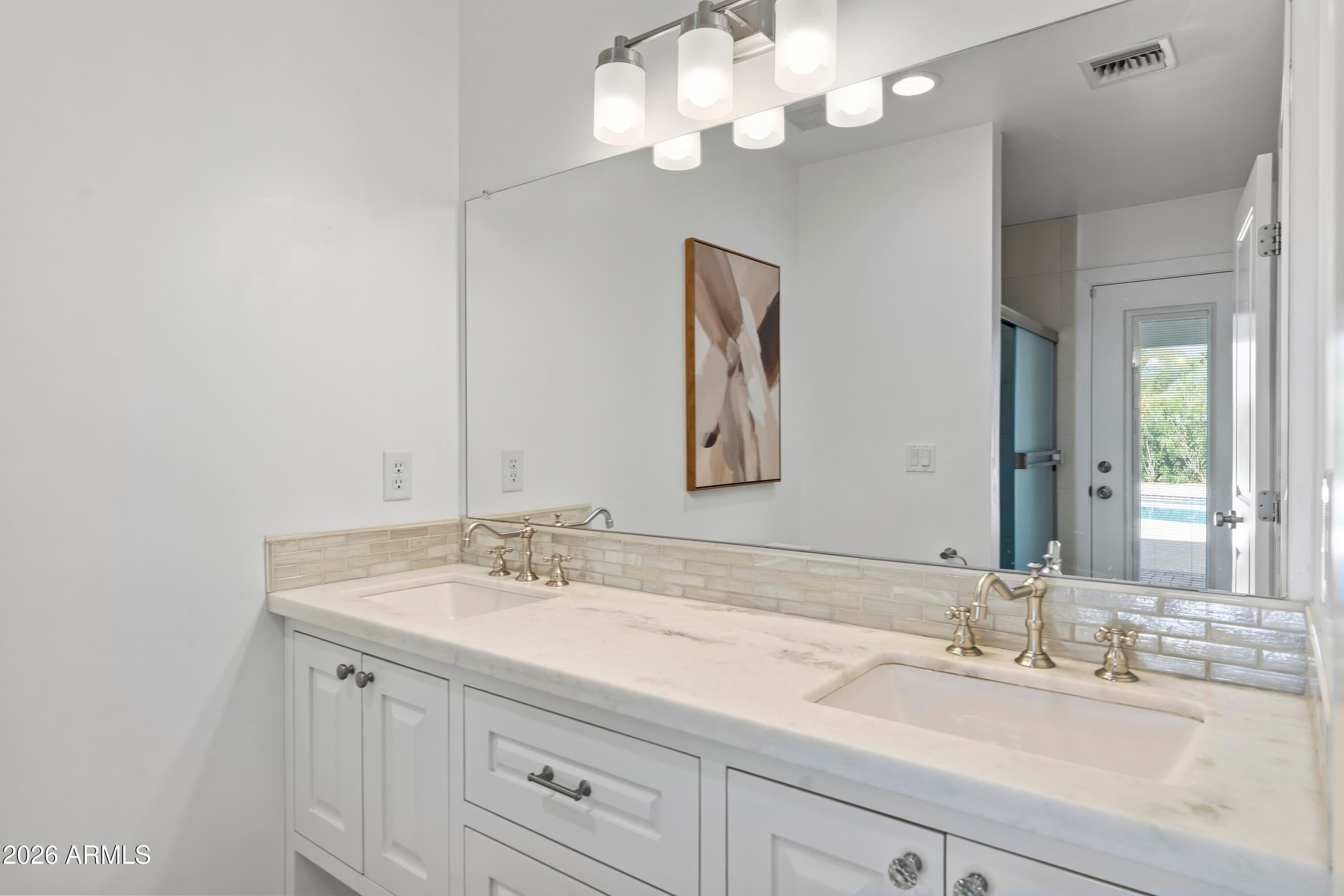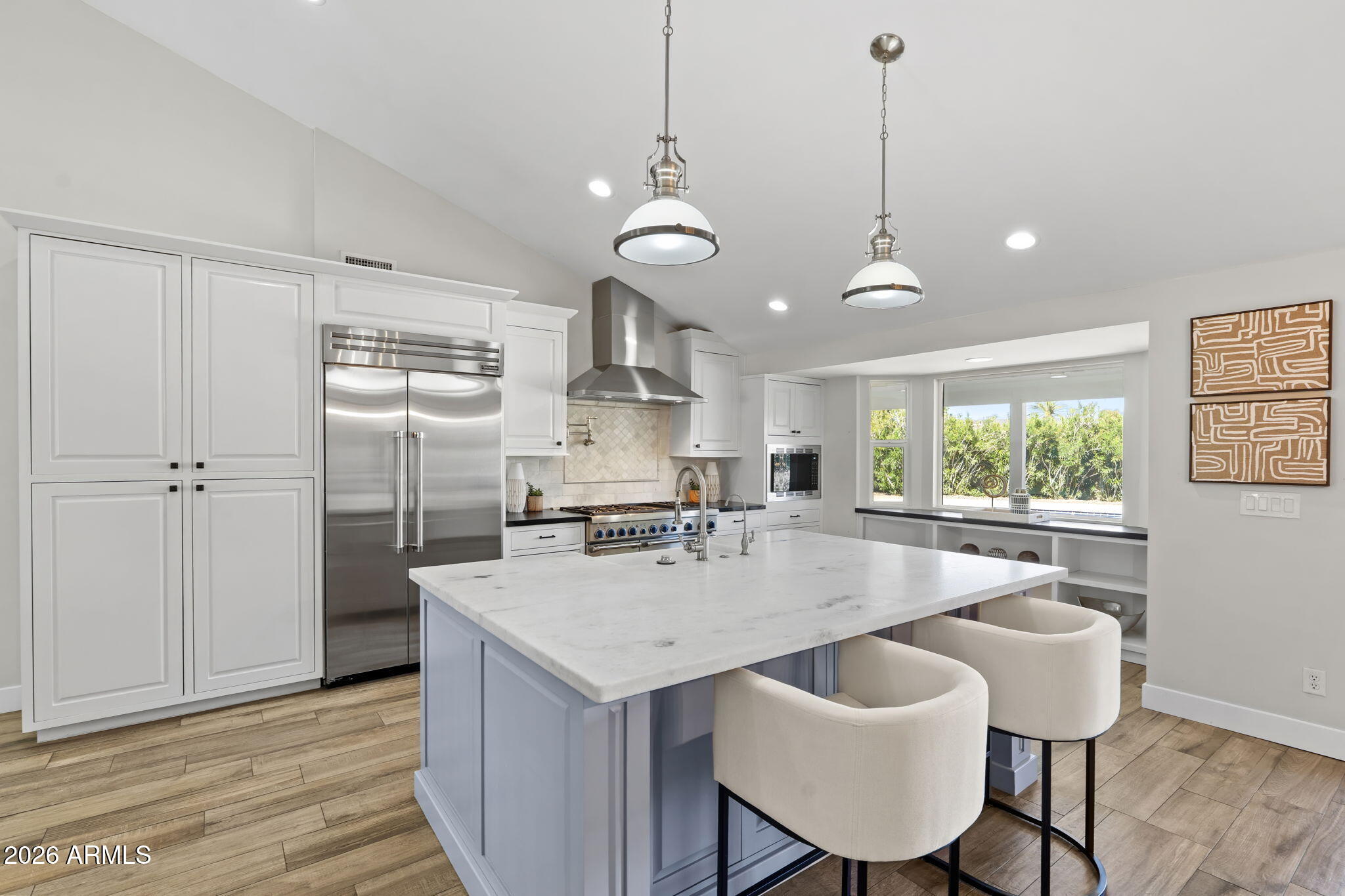HUGE 24,000 sq ft cul-de-sac lot in coveted Buenavante! NO HOA! This fully remodeled home is a true surprise--unassuming at first, but unforgettable once inside. Open the front door and youre immediately met with soaring ceilings, a split floor plan, and beautifully updated interiors that deliver an instant wow. The kitchen is best in class, featuring a large island, honed marble countertops, double dishwashers, a 48 Thermador gas range with vent hood and pot filler, and a Thermador side-by-side refrigerator. At the heart of the home, a large great room anchors the space with a two-way fireplace connecting the kitchen, dining, and family areas. The layout offers 3 bedrooms plus a bonus room and dedicated office, with secondary bedrooms separated by a flex space ideal for a den, playroom, or teen retreat.If the home impresses, just wait until you walk through the French doors into the ultra-secluded, expansive backyard. The scale and sense of privacy are unexpected--especially this close to everyday amenities--creating a rare feeling of openness. Mature landscaping surrounds a large pool with a baja deck, along with pergola dining, a built-in grill, a storage shed, and paver patios and walkways throughout. The space offers unmatched flexibility--whether you envision a guest house, a pickleball court, or simply keeping it open to enjoy.Rare 4-car garage w RV gate, owned solar, whole house fan and newer roof complete the package. Do not miss this one!!! Minutes from shopping and dining at Kierland Commons, the Scottsdale Quarter, A Sonoran Sky Elementary and the JCC. Easy 101 access.