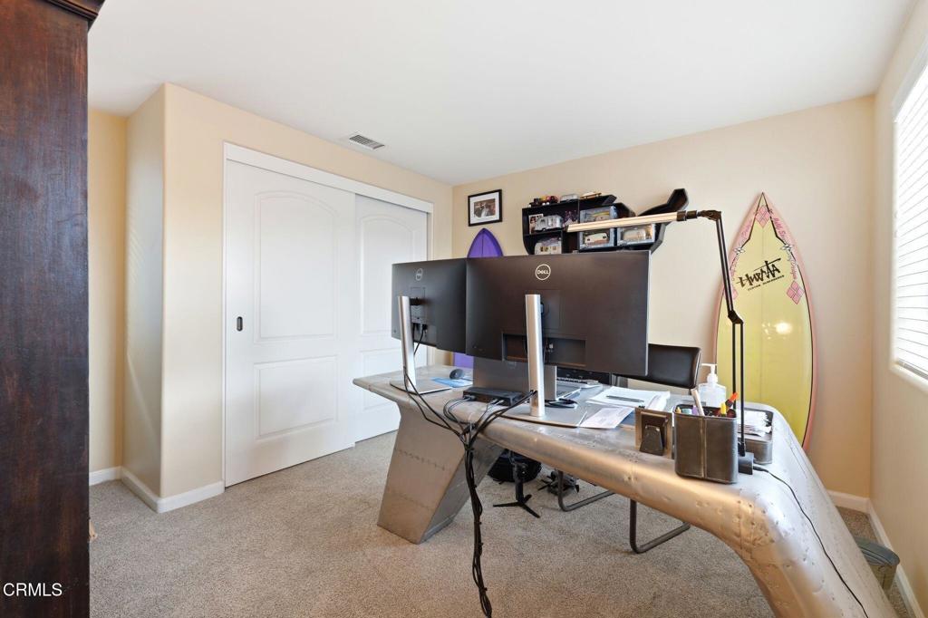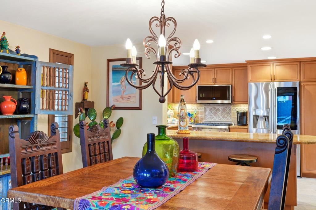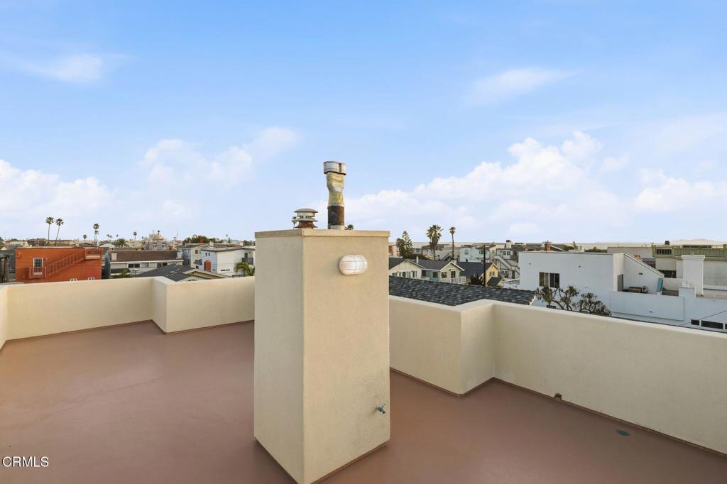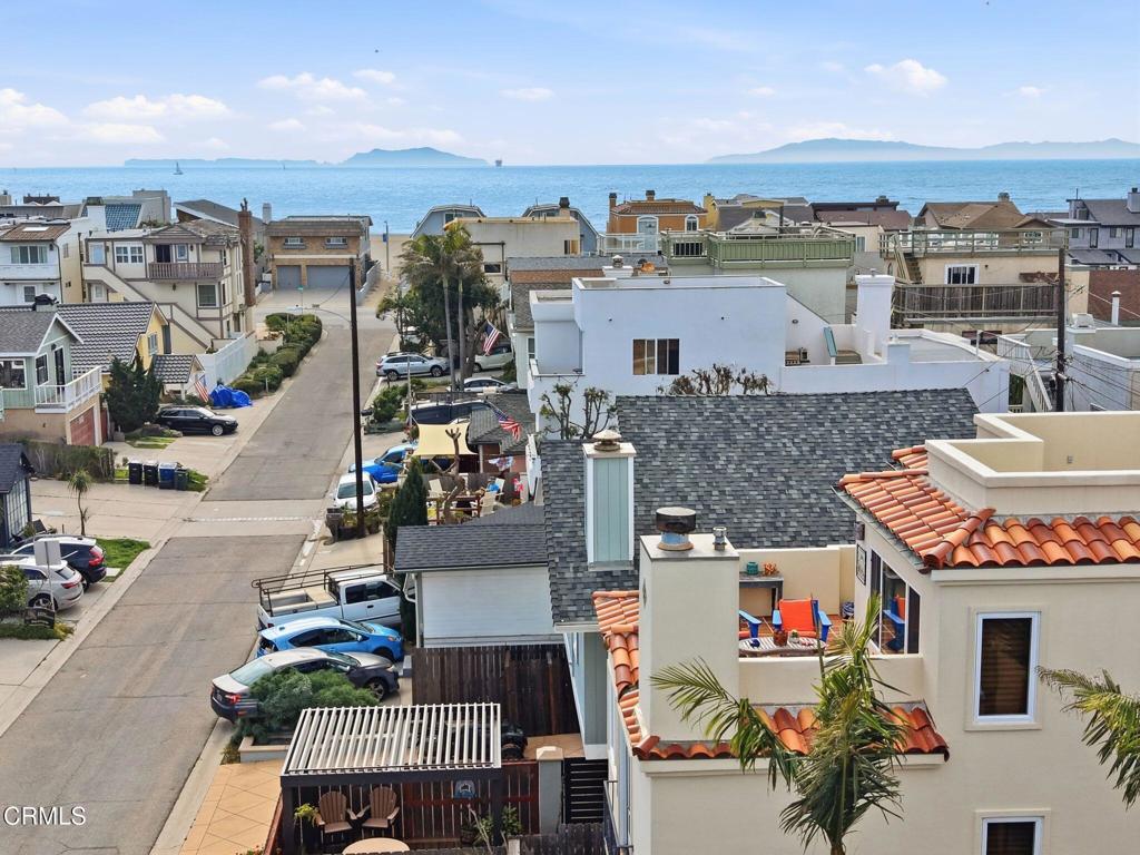 Just eight houses from the sand, this meticulously maintained Spanish-style home delivers the full beach lifestyle without compromise. From the hand-carved solid wood entry door and Talavera tile accents to the travertine floors and wrought iron staircase, the craftsmanship throughout is a cut above; every surface thoughtfully finished, nothing overlooked.The open main level flows easily from a generous living room anchored by a travertine fireplace to a warm dining area and a chefs kitchen with rich custom cabinetry, granite countertops, stainless appliances, and a peninsula counter that invites casual dining and conversation. Wood shutters, and a tropical ceiling fan give the space a relaxed, coastal character that feels both polished and lived-in.The primary suite is a true retreat; spacious and quiet, with a jetted soaking tub, walk-in tiled shower, and custom vanity. Two additional bedrooms and a versatile lower-level bonus room with a fireplace and wet bar round out the 2,177 sq ft of living space across three floors.The crown of the home is the private rooftop deck - open sky, ocean horizon, and the Channel Islands floating on the water. Sunsets here are something else entirely.With a 2-car garage, front patio courtyard, and beach access steps away, this is the rare property that checks every box - built with care, kept with pride, and ready for its next chapter.
