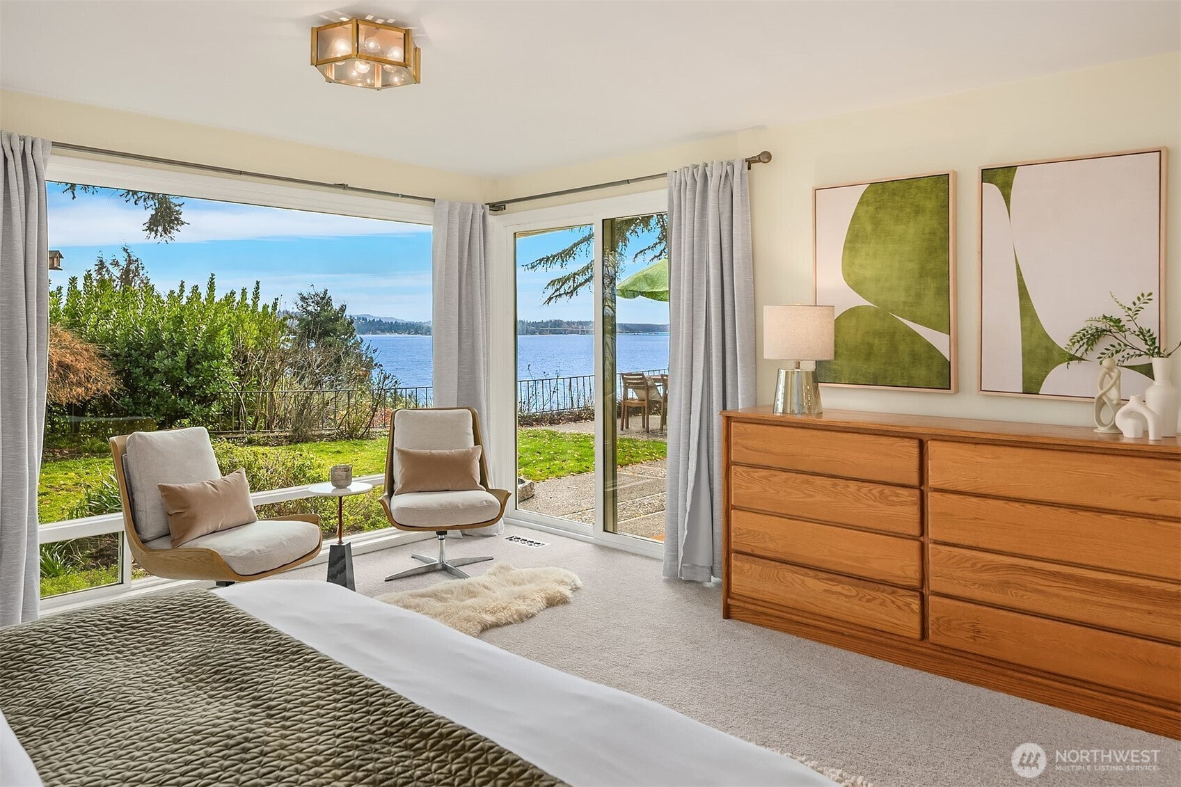 Nestled down a private lane surrounded by greenery on over half an acre is your private Shangri La retreat. A level courtyard garden leads to a breathtaking entry with walls of glass facing Lake Washington and flooding the open living space with views and light. Stately living and dining rooms are relaxed for easy day-to-day with the kitchen and a family room in a circular flow. Showcase your cooking talents in the gourmet kitchen, equipped with stainless steel appliances, hardwood floors, granite counters, solid wood cabinetry & bar seats, all with picture windows looking out to nature and the lake. The luxe primary bedroom boasts views, a sitting area and a large ensuite bathroom. Two addl bedrooms are nestled in a private back wing with the other wing dedicated to an office, Laundry/Mud room area with lots of storage. Outside, a spacious patio takes in the views & a fire pit offers space to gather with friends while watching boats pass by below. Home includes an easement path down to 20 feet of Lake Washington waterfront for swimming, picnics and the coveted lakefront lifestyle. Large 2-car garage houses projects and toys for a hobbyists dream. Pristine privacy, yet only moments away from everything: U-Village amenities and shopping, Magnuson Park, top-rated dining, Seattle Childrens, UW, and more.