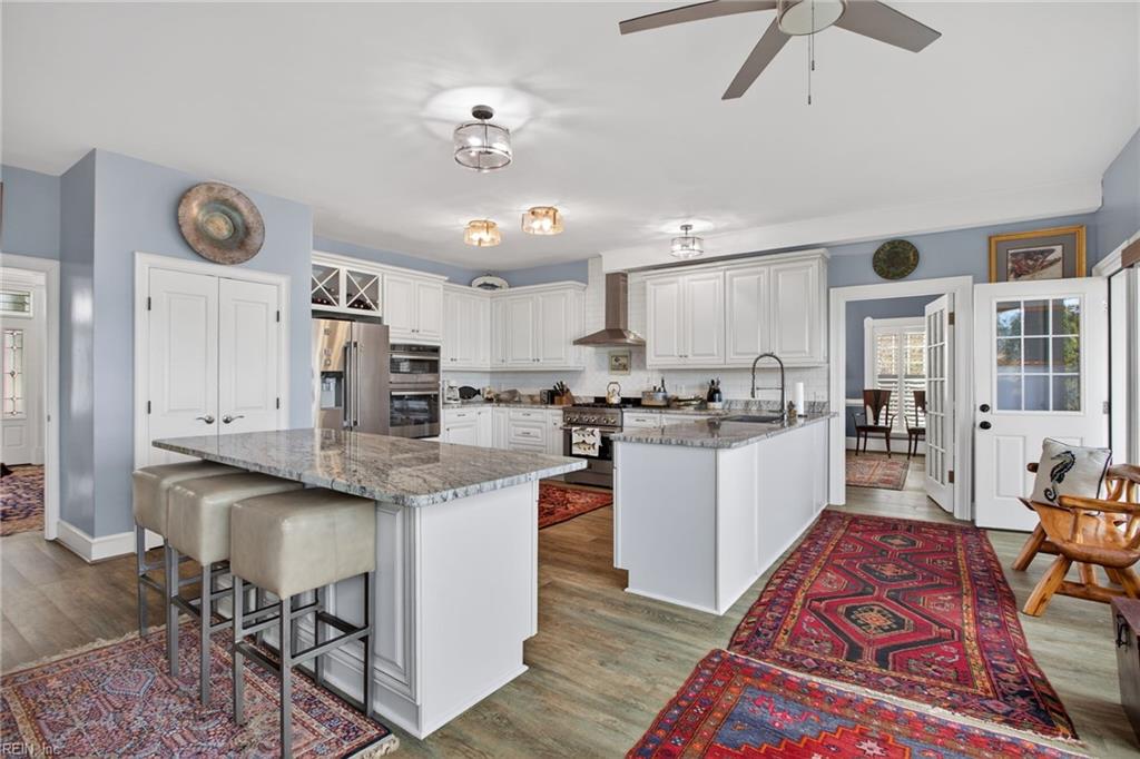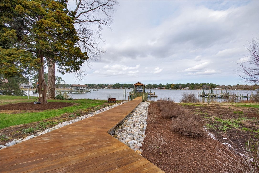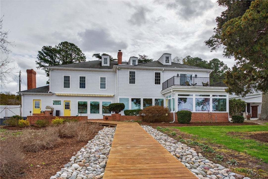 Luxury deep waterfront estate on 2.95 private acres with 226 of frontage and expansive water views. A pier, dock, and boat slips (built in 20220 are already in place, offering an exceptional opportunity for boating enthusiasts. A detached 3-car garage with 12 doors and a spacious workshop/man cave (2022) provides incredible space for hobbies, storage, or projects. Inside the home offers a beautiful blend of classic charm and thoughtful updates. Formal living and dining rooms feature plantation shutters and detailed molding, while the renovated kitchen is bright and open with direct water views, making it ideal for entertaining. The rear family room is perfectly positioned to enjoy both sunrise and sunset over the water. A versatile first floor room with pocket doors can serve as a bedroom, office or flex space. The primary suite features hardwood floors and a private balcony overlooking the water, creating a peaceful retreat. Additional highlights include a whole-house generator, solar panels for energy efficiency, raised garden beds, a brick patio overlooking the water, beautiful landscaping, and exceptional privacy. Located in the highly desirable Tabb School District.