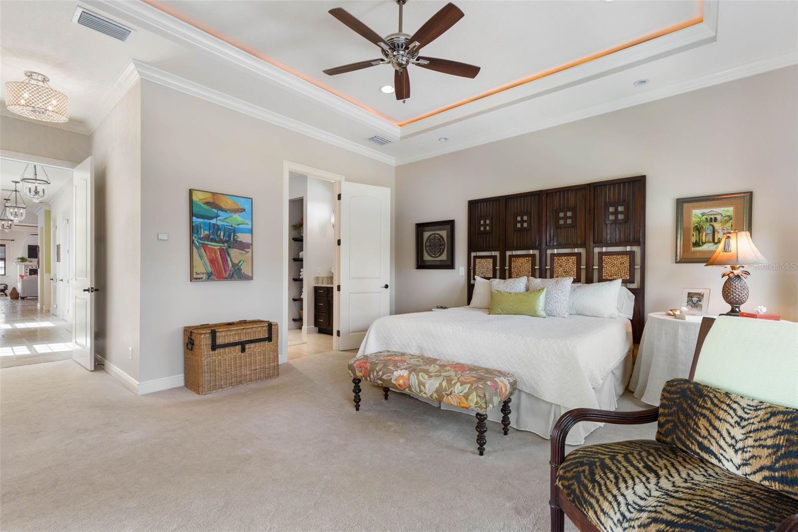 Absolutely stunning modern luxury home in prestigious MacDonald Highlands with panoramic views of DragonRidge Golf Course, the Strip & surrounding mountains. Features 3 bedrooms, 4 baths, loft, office area & coffee bar. The massive primary suite offers a private balcony, spa-like bath with shower, standalone tub & custom walk-in closet.
