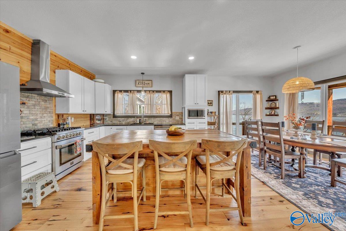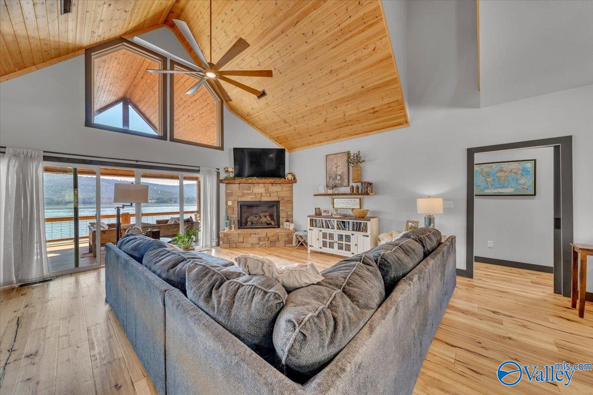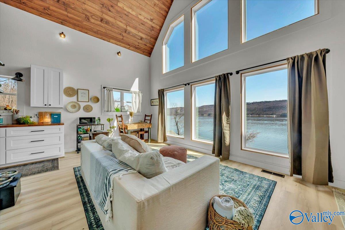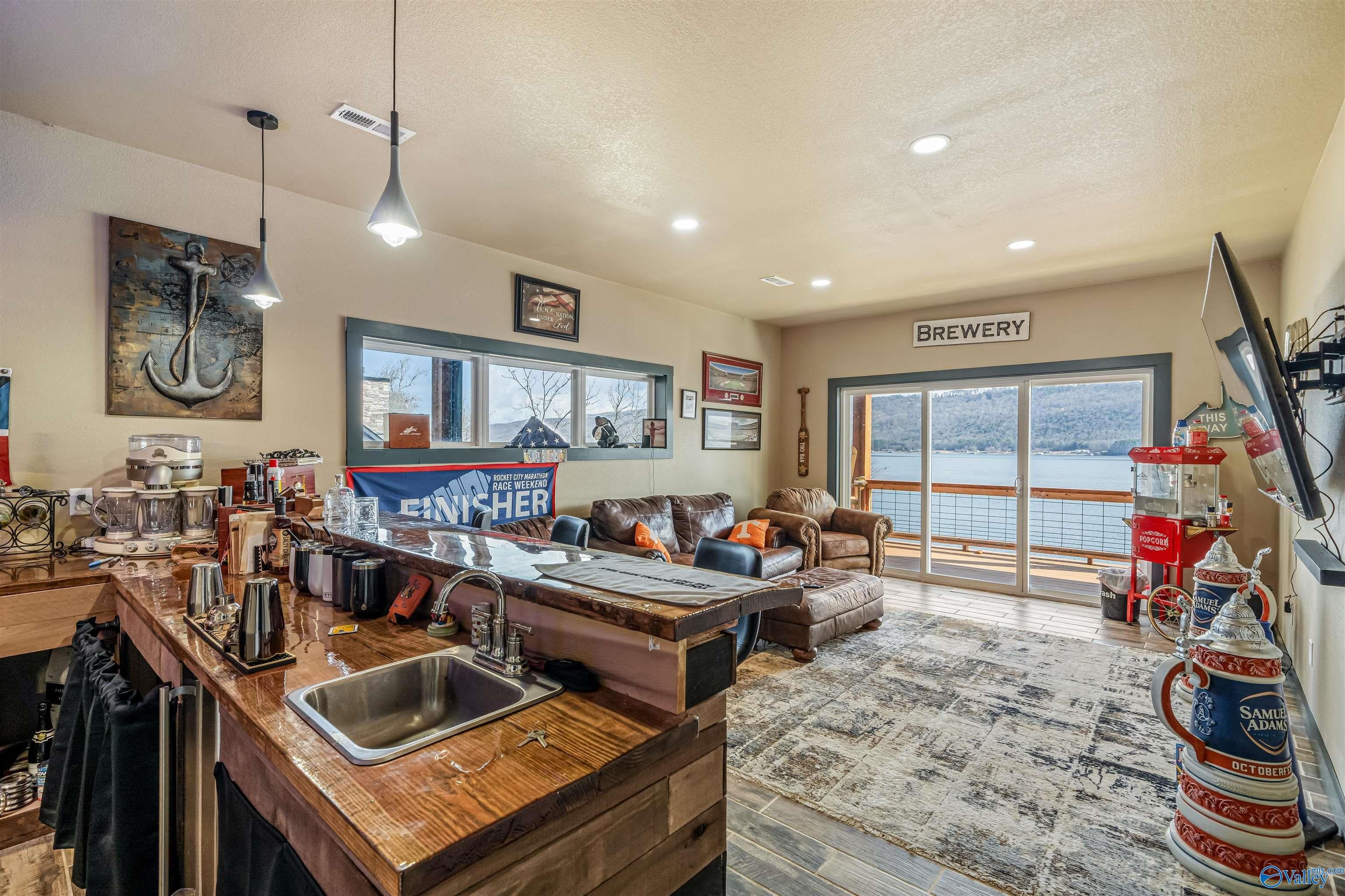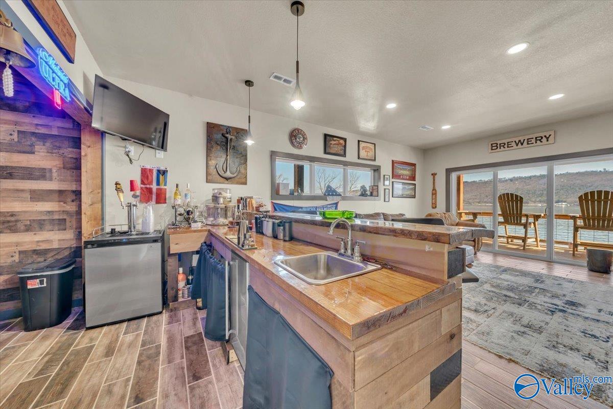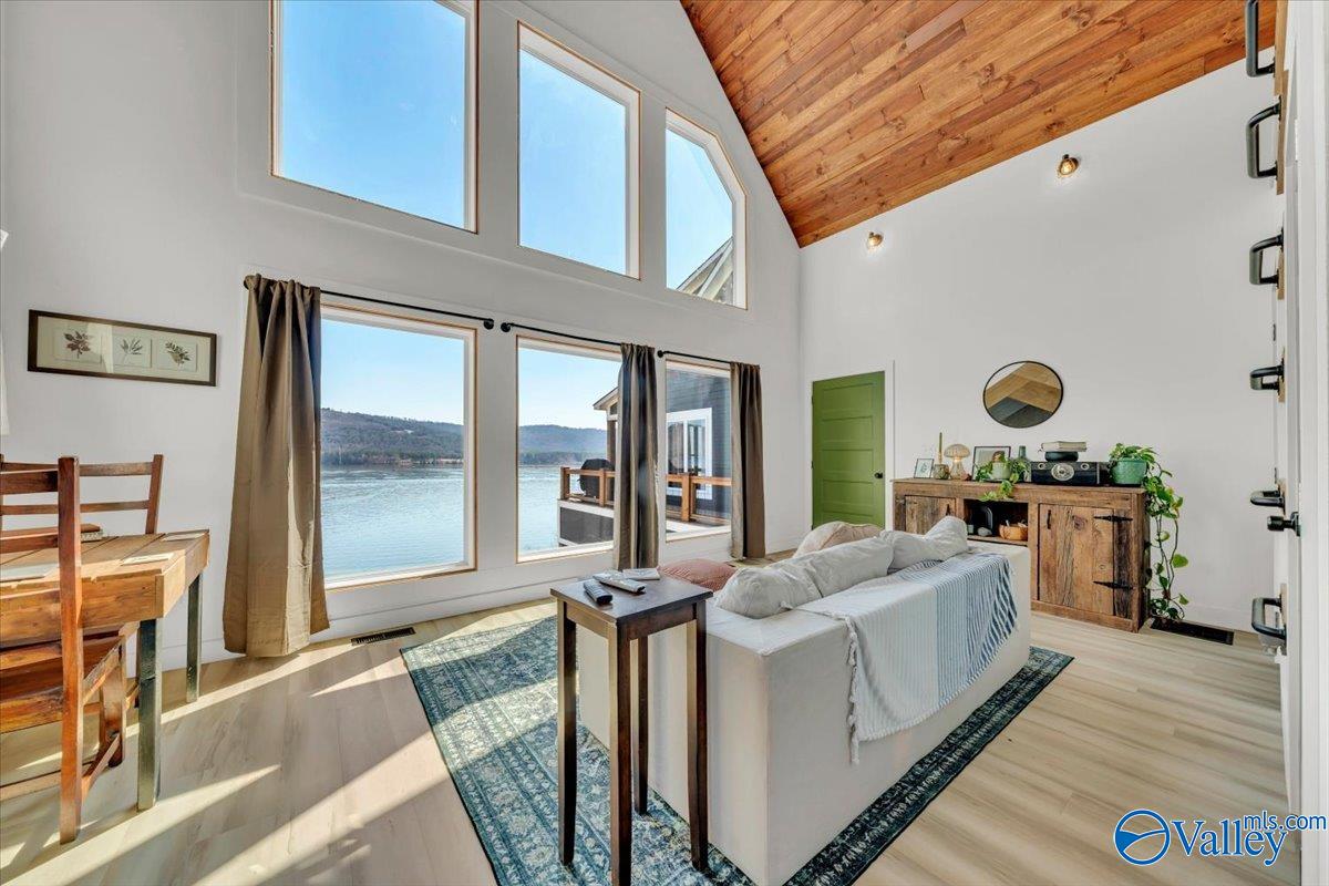 Main Channel Waterfront Home with Guest House! Awesome Beach area & Zero Entry into the Lake! 5 Bedrooms -7 baths Nice Pier & Boat House - Private Boat Launch in the Neighborhood! Breathtaking VIEWS of TN River from Every Room! Resort Style Living outside & inside w/ Lounge w/VIEW, wet Bar w/ ice & Kegerator, Game Room w/ VIEW, Workout RM, multiple Flex Rooms! Special Features of Main House- Hickory Floors, Multiple Decks with VIEWS! Dining Room with VIEW adjoins Kitchen, Master main LeveL,Office 1st floor & upstairs! Guest House features- Living, Kitchen, Laundry, Bedroom Ensuite w/ VIEW plus a Loft Sleeping Room! Check out the Link to Video TOUR! Come See this Amazing Retreat!