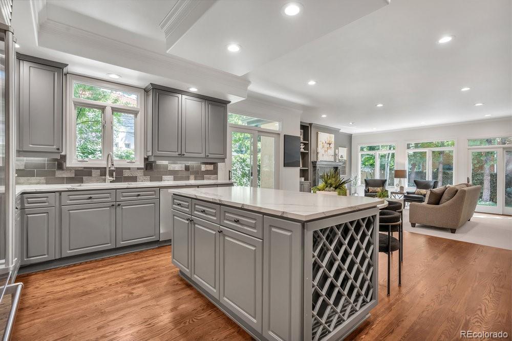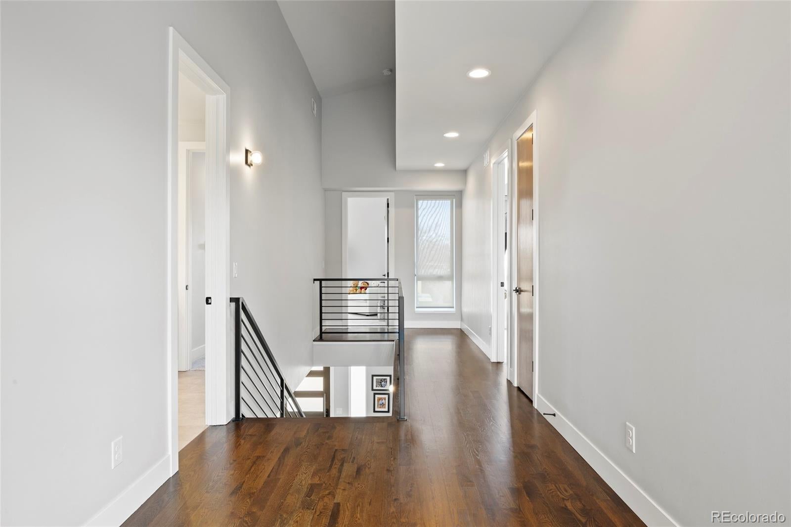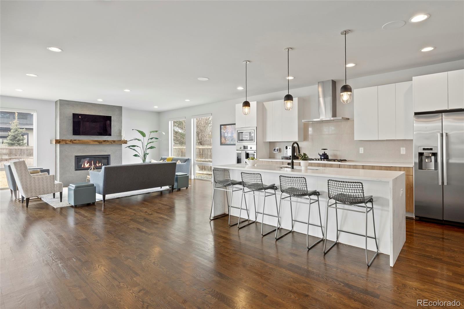 This stunning 2018-built contemporary residence in the sought-after University Hills neighborhood offers the perfect blend of modern luxury and functional design. Spanning over 4,500 total square feet, this home features high ceilings, an open floorplan, and premium finishes throughout.The main level is designed for both productivity and entertaining, boasting a dedicated office, a formal dining area, and a spacious living room centered around a cozy fireplace. The gourmet kitchen is equipped with quartz countertops, a walk-in pantry, and high-end appliances.Retreat to the upper level where youll find three bedrooms, including a luxurious primary suite featuring a walk-in closet and a spa-like ensuite bath. Two additional bedrooms share a convenient Jack-and-Jill bathroom, and the upper-level laundry room adds ease to daily chores.The 10 ceiling fully finished basement expands your living space significantly with a massive great room, a wet bar with a beverage fridge, and a private guest bedroom with a full bath, perfect for a home theater, gym, or teen suite. Easily add a 5th bedroom and still have space for the great room. The expansive 9,000 sqft lot offers an outdoor sanctuary in the heart of the city. There is ample room to create your dream backyard oasis, offering a rare opportunity to add a private pool, while still preserving plenty of green space for play and gardening. This oversized lot provides the perfect canvas for your outdoor lifestyle.