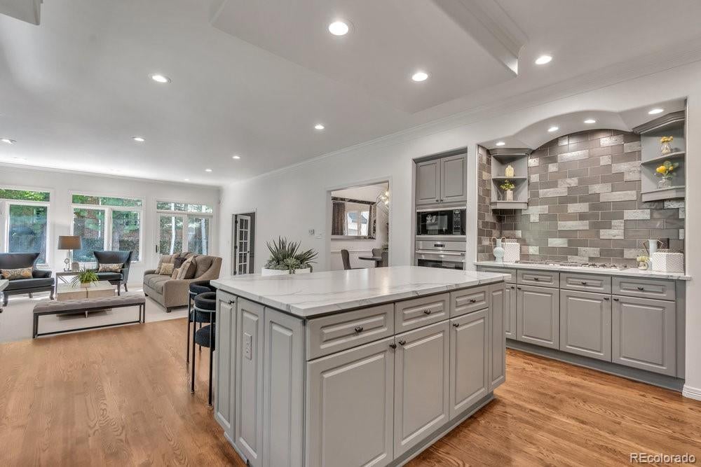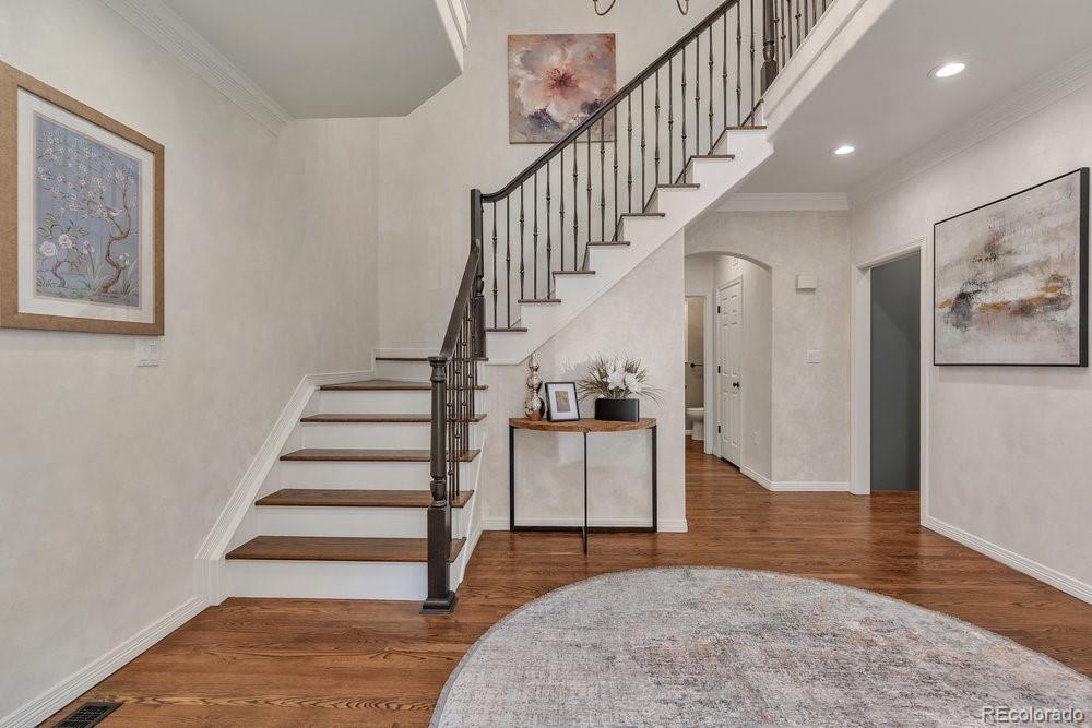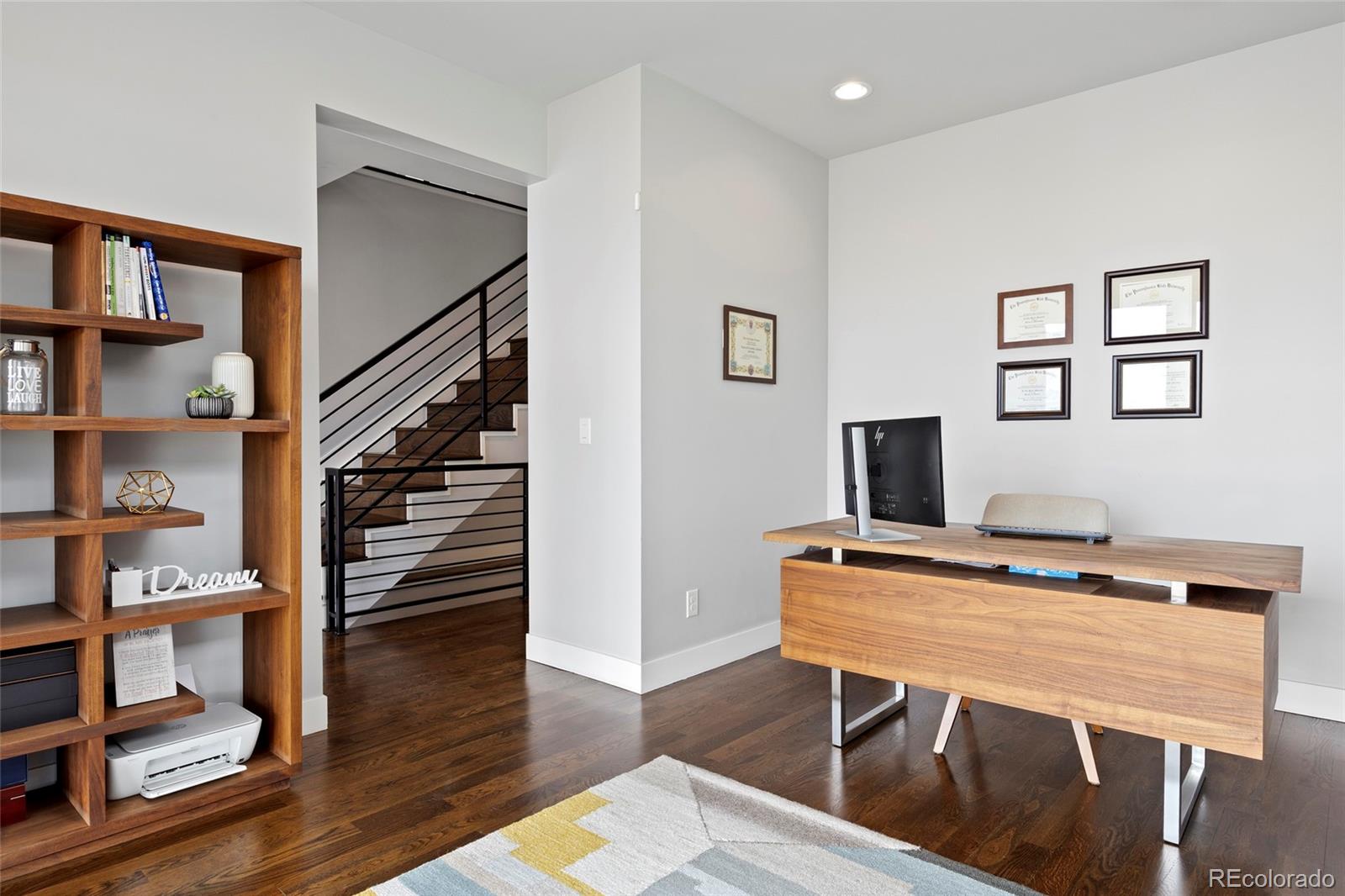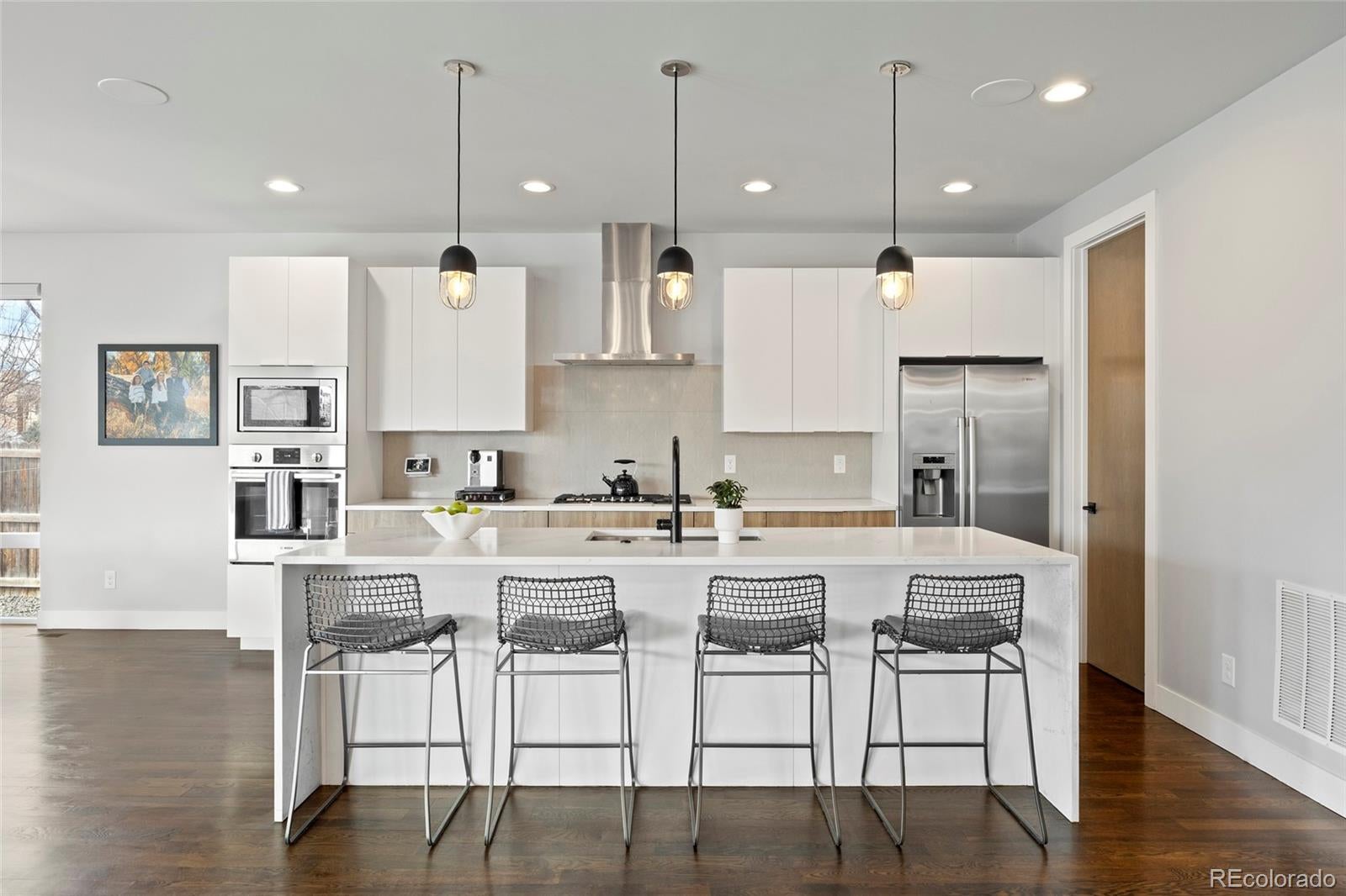 This stunning 2018-built contemporary residence in the sought-after University Hills neighborhood offers the perfect blend of modern luxury and functional design. Spanning over 4,500 total square feet, this home features high ceilings, an open floorplan, and premium finishes throughout.The main level is designed for both productivity and entertaining, boasting a dedicated office, a formal dining area, and a spacious living room centered around a cozy fireplace. The gourmet kitchen is equipped with quartz countertops, a walk-in pantry, and high-end appliances.Retreat to the upper level where youll find three bedrooms, including a luxurious primary suite featuring a walk-in closet and a spa-like ensuite bath. Two additional bedrooms share a convenient Jack-and-Jill bathroom, and the upper-level laundry room adds ease to daily chores.The 10 ceiling fully finished basement expands your living space significantly with a massive great room, a wet bar with a beverage fridge, and a private guest bedroom with a full bath, perfect for a home theater, gym, or teen suite. Easily add a 5th bedroom and still have space for the great room. The expansive 9,000 sqft lot offers an outdoor sanctuary in the heart of the city. There is ample room to create your dream backyard oasis, offering a rare opportunity to add a private pool, while still preserving plenty of green space for play and gardening. This oversized lot provides the perfect canvas for your outdoor lifestyle.
