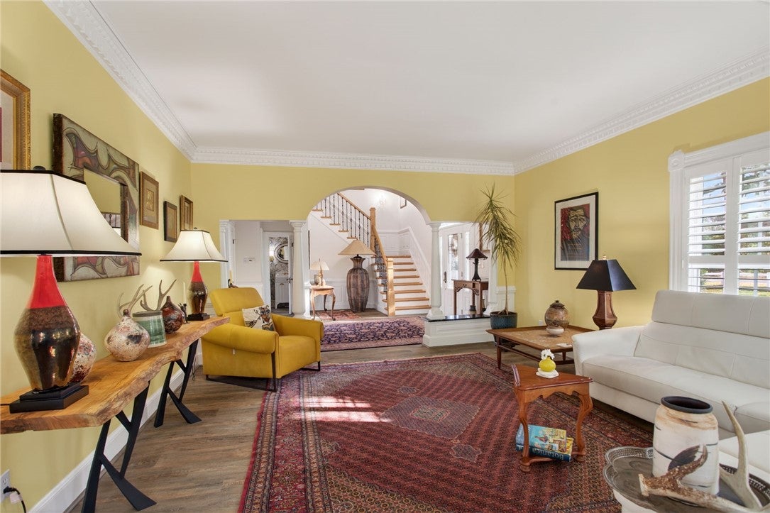 Luxury waterfront estate on 3 private acres with 226 of deep-water frontage and expansive views. A pier, dock, and boat slips (built in 2022) are already in place, making this a rare opportunity for boating enthusiasts. A detached 3-car garage with 12 doors and a large workshop/man cave (2022) offers incredible flexibility for hobbies, storage, or projects. Inside, the home blends classic charm with thoughtful updates. Formal living and dining rooms feature plantation shutters and detailed molding, while the renovated kitchen is bright and open with direct water views, ideal for entertaining. The rear family room is perfectly positioned to enjoy both sunrise and sunset over the water. A flexible first-floor room with pocket doors can serve as a bedroom or office. The primary suite features hardwood floors and a private balcony overlooking the water. Additional highlights include a whole-house generator, solar panels, a brick waterfront patio, and raised garden beds. So much more!
