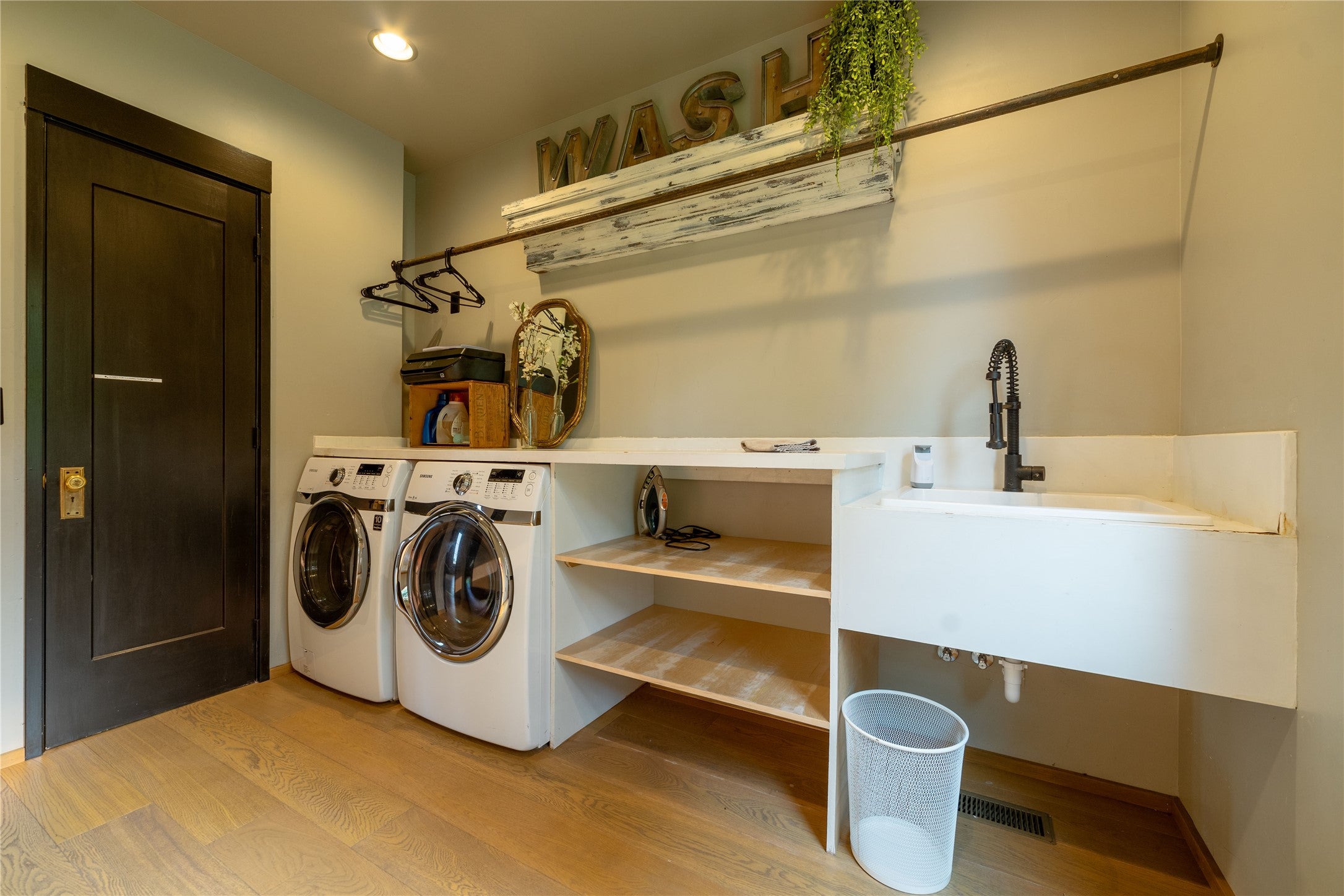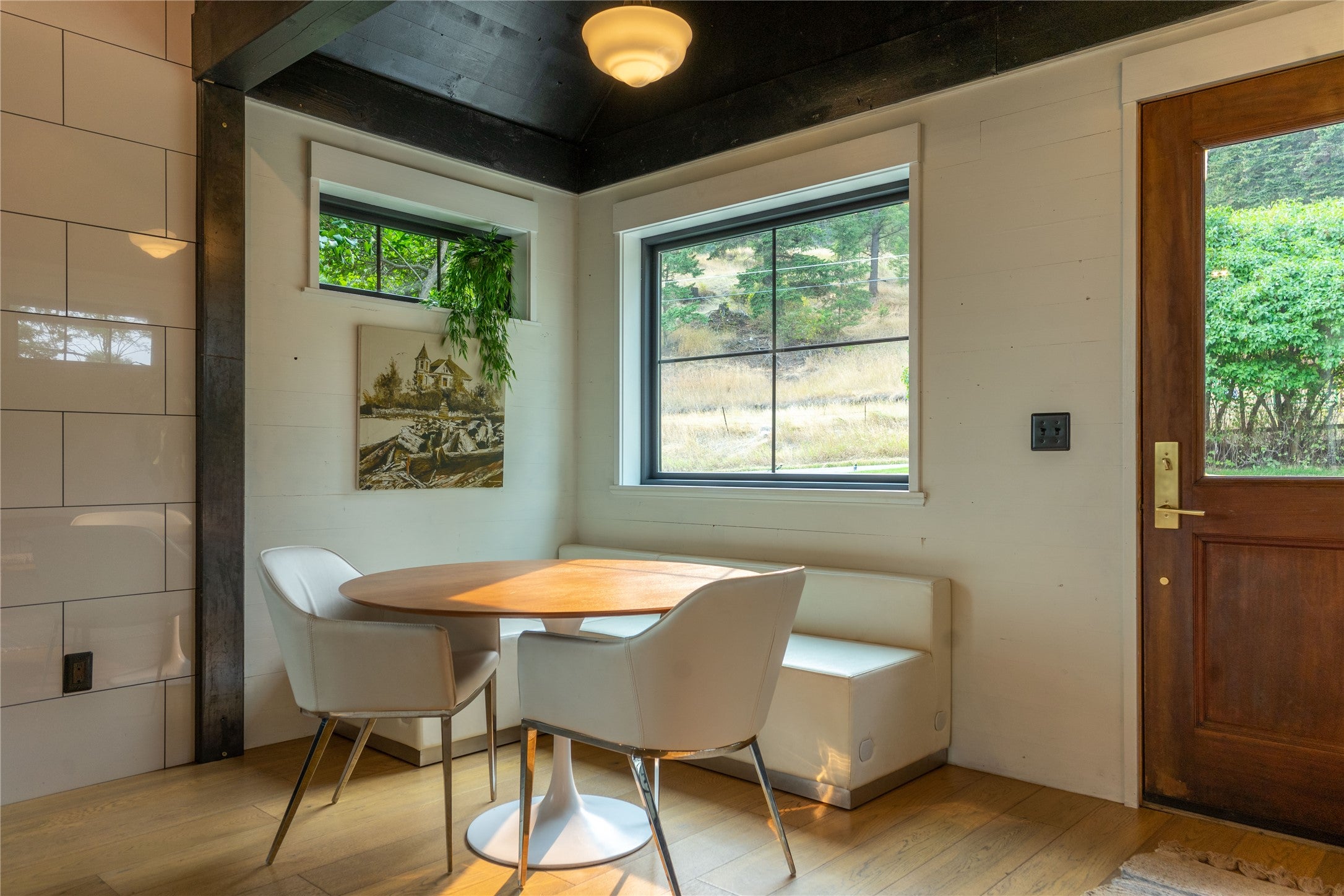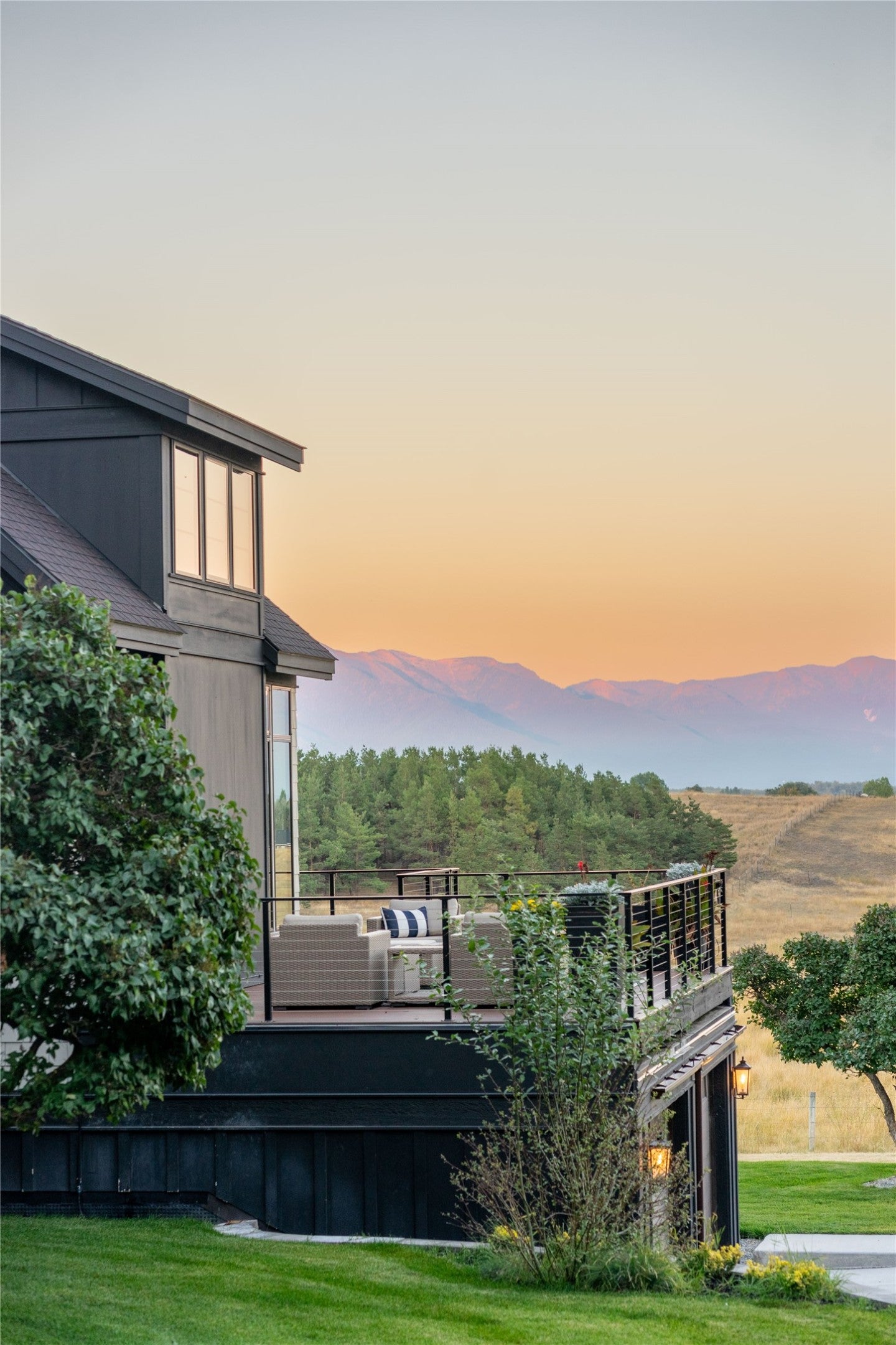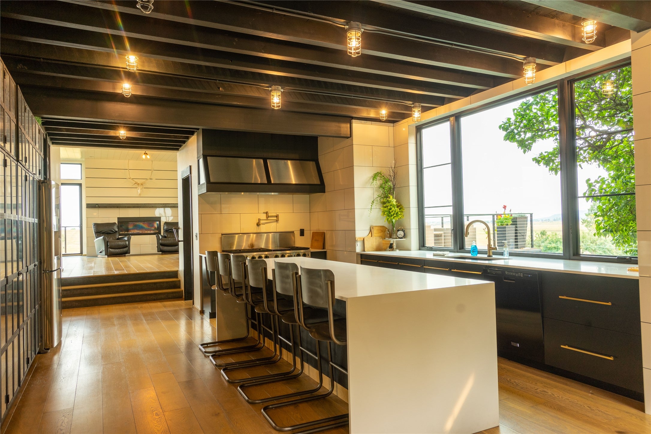 Originally built in 1925, this residence has been completely rebuilt from the studs upretaining touches of its historic character while incorporating high-end modern design. Offering over 5,000 square feet of refined living space on over 8 usable acres, this property combines elegance, comfort, and functionality in a serene country setting just minutes from town.The main level centers around a gourmet kitchen that was designed to impress and built to function. Floor-to-ceiling glass-front cabinetry along one wall offers both statement-making style and incredible storage. Oversized windows frame the greenery outside and offer beautiful views right from your kitchen window. With high-end appliances and bold design choices like exposed black ceiling beams from the original home, this kitchen is sure to impress. The adjacent great room features soaring ceilings, walls of glass, and an indoor-outdoor fireplace that flows seamlessly to expansive decks overlooking the mountains. Designed for effortless entertaining, the open layout connects spacious living and dining areas, highlighted by abundant natural light and beautiful engineered oak wood floors.The main level master suite features a private terrace and a spa-inspired bath with radiant in-floor heating. Upstairs, a cozy reading nook, guest bedrooms, and a grand room with its own terrace create versatile retreats. The lower level offers two flex rooms, a built-in playhouse, and a luxury bath with steam shower and sauna.Multiple outdoor living areas provide extraordinary spaces for entertaining, from intimate gatherings to large celebrations. The upper deck above the garage offers a dramatic setting with panoramic views, perfect for summer parties under the Big Sky.Additional amenities include an attached, heated 2 car garage, a heated 32x60 shop with an office and bathroom, an established garden, a stunning waterfall feature, close proximity to Lone Pine State Park, and so much more. There is even a shelter and fencing for your animals. No covenants and no HOA! This one-of-a-kind estate delivers privacy, sophistication, and ample space for both everyday living and unforgettable entertaining. While photos and video offer a glimpse, the true level of luxury, craftsmanship, and detail in this home is best appreciated in person. Dont miss your opportunity to view this property and make this one-of-a-kind estate your own.