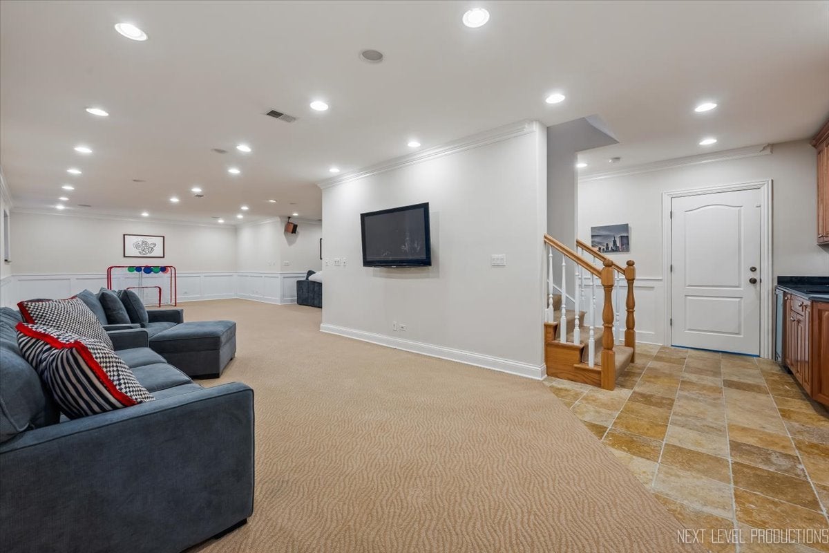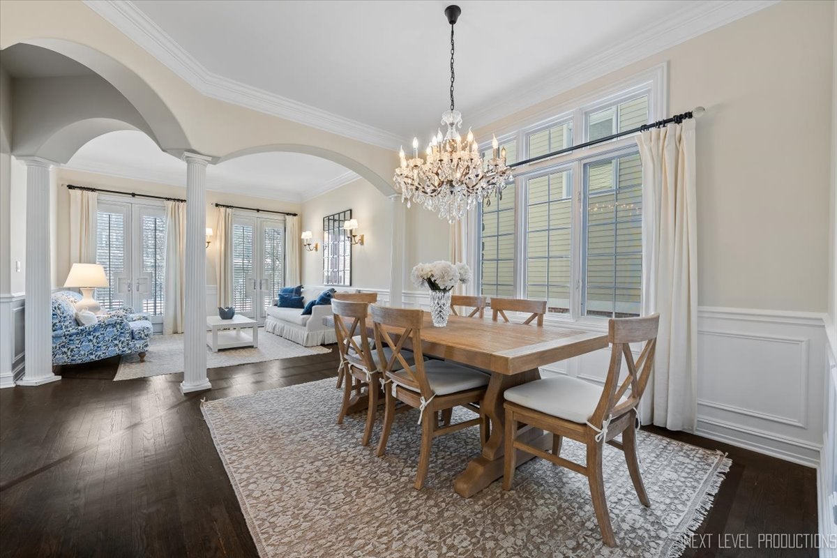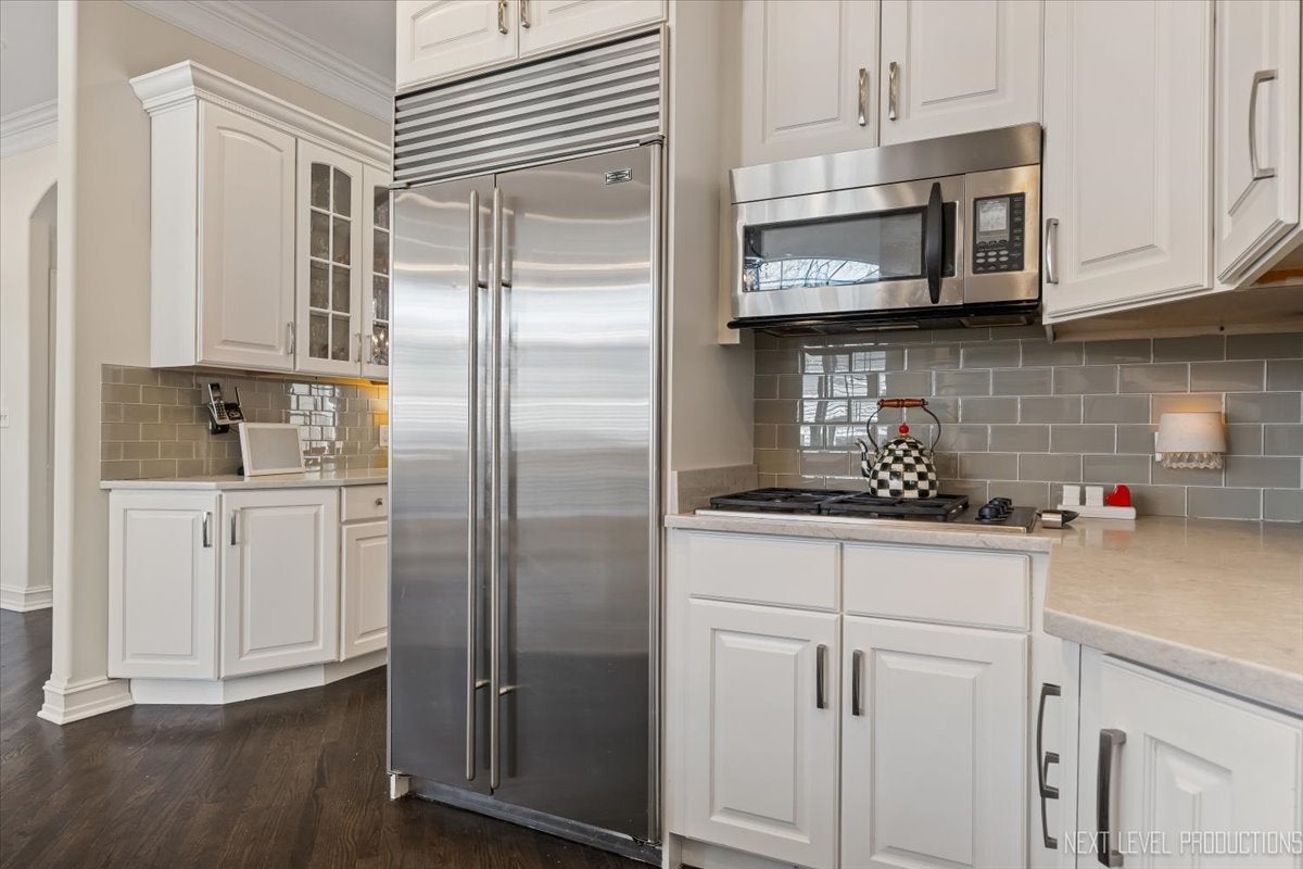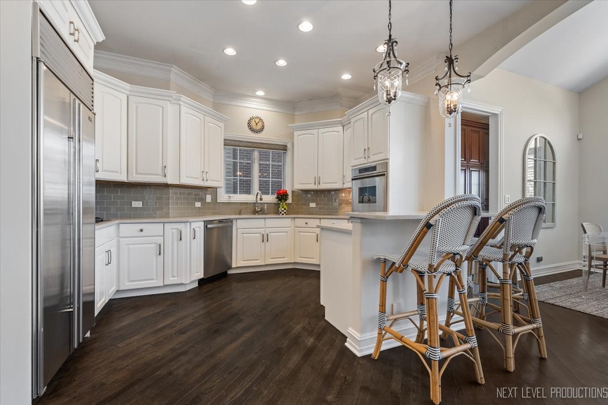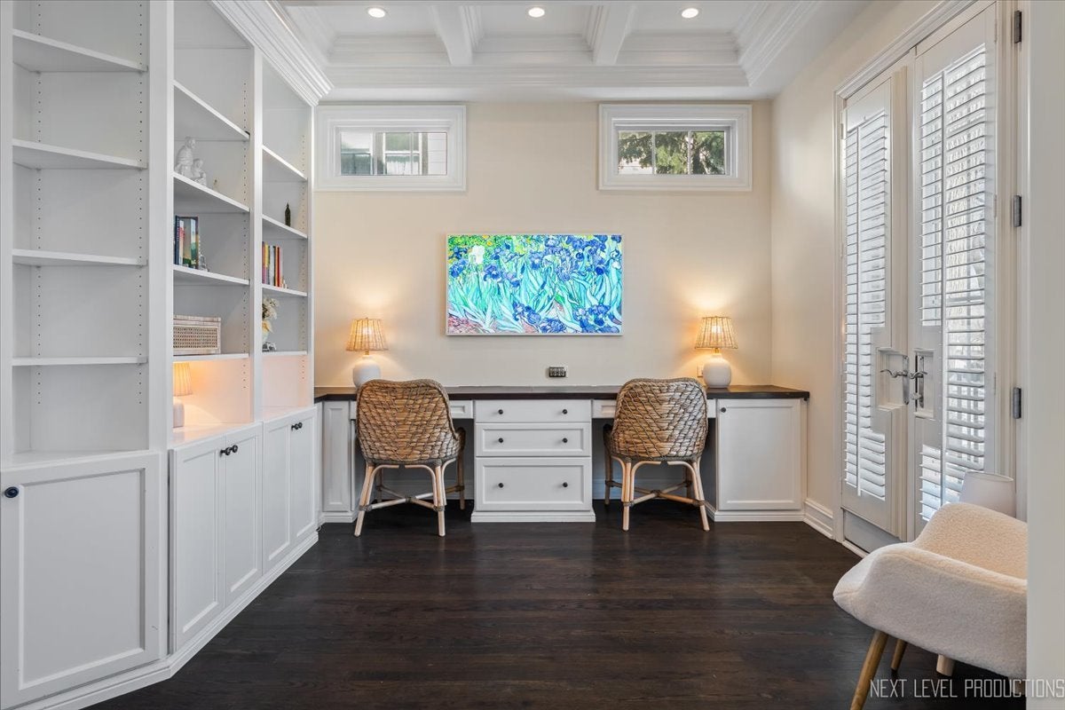 Experience luxury living in the heart of Hinsdale! This attractive stone front 3-story home will woo you with its high end finishes from the moment entering the front foyer. 10 ceilings, rich hardwood flooring, and plantation shutters throughout the first floor. Split entry has office with two work stations, built in bookshelves and a coffered ceiling.
