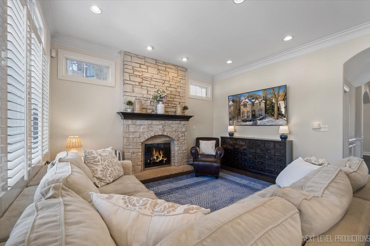 Experience luxury living in the heart of Hinsdale! This attractive stone front 3-story home will woo you with its high end finishes from the moment entering the front foyer. 10 ceilings, rich hardwood flooring, and plantation shutters throughout the first floor. Split entry has office with two work stations, built in bookshelves and a coffered ceiling. Formal living and dining rooms include an arch entry, wainscot, multi piece crown moulding, 5-1/2 baseboards, plantation shutters, and updated lighting. Planning hub/butlers pantry join the dining room to the kitchen. Kitchen boasts a walk in pantry, white cabinets, SS appliances, quartz countertops, and a breakfast bar. Sunny morning room offers generous eat-in area, skylights and a wall of windows overlooking backyard. Mud room from kitchen with built in lockers and shoe storage, heated floor and door to backyard. Open kitchen-family room is perfect for everyday family gathering and/or social entertaining. Attractive stone fireplaces w/gas logs in both family room and finished basement. First floor also includes a laundry room and a powder room. Beautiful staircases lead to the 2nd and 3rd floors. Primary bedroom with a 10 ceiling, walk in closet and generous bath with separate tub and shower. There are 3 additional bedrooms on the 2nd level, including a private en-suite bedroom & bath. AND...theres more on the 3rd floor! This extra large area has 2 skylights and a full bath and can be used in a variety of ways...play room, office, gym, media room, 5th bedroom. The finished basement consists of two huge finished areas for everyday play or entertaining. The 9 ceilings, windows, and extra canned lighting make it open and bright. There is a wet bar area, fireplace, full bath and separate storage room. The oversized lot (170 deep) includes a maintenance free deck, swing set, fenced backyard and a walkway to detached 2-car garage. Nice private alley in rear with 2 additional parking spaces. Best of all, this home offers a Walk to Everything location only a few blocks to downtown, main train, grocery store, pool, Madison Elementary & St Isaacs schools, and Robbins Park. This home is in excellent move in condition, neutral decor throughout. Interior paint 2026.