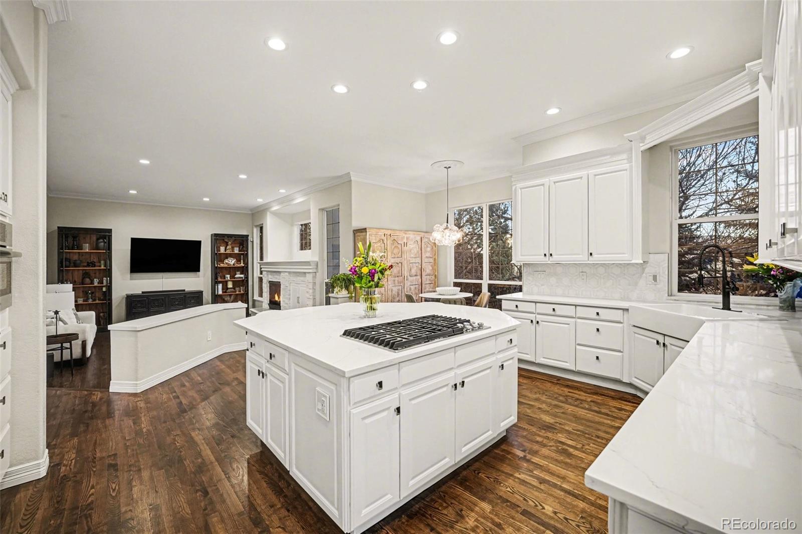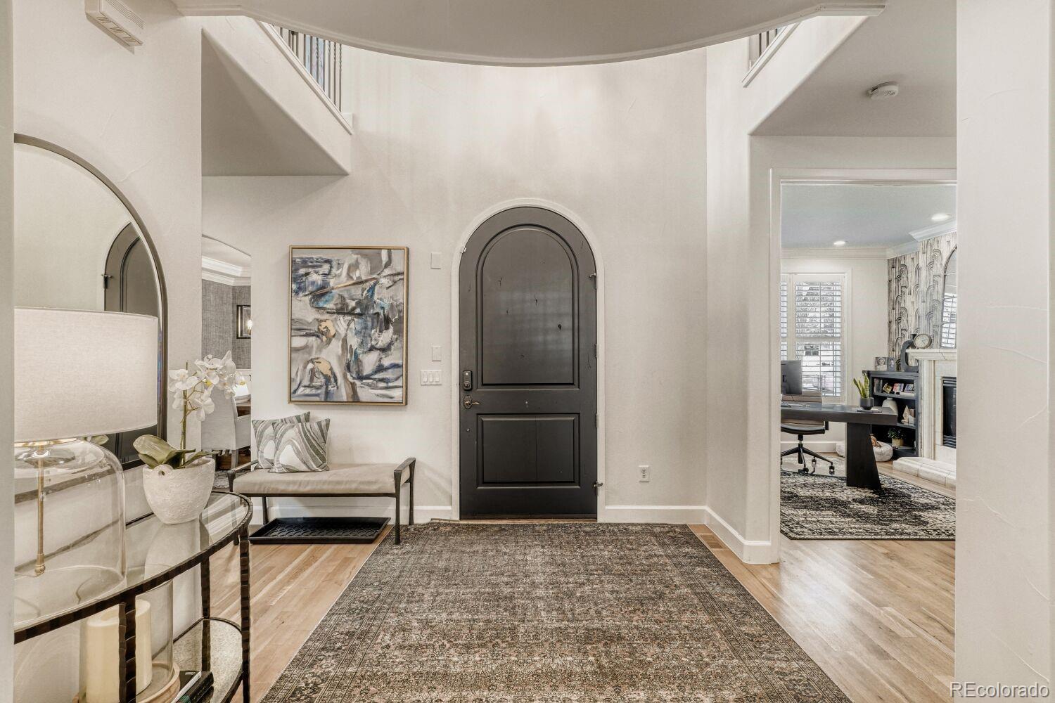 Incredible remodel in gated Heritage Hills Lone Tree! Over 200k in recent upgrades! Positioned on a premium cul-de-sac, this stunning home offers a private, tree-lined yard, multiple outdoor living areas, a charming front courtyard, expansive deck, and lower covered patio with dry-below. The grand entry soars with 18 ceilings, a wrought-iron staircase, and tons of natural light from over 30 large windows. The open floor plan features formal living and dining, hardwood floors, designer carpet and paint, and a spacious great room with gas fireplace and stone surround. The gourmet kitchen is a showstopper with quartz countertops, stainless steel, a 42 built-in Monogram refrigerator, gas cooktop, farmhouse sink, oversized island with breakfast bar, and a cozy breakfast nook. The main level also includes a private study with French doors and a laundry room with cabinetry and utility sink. Upstairs youll find 4 beds and 3 baths and an impressive primary suite with sitting area, second fireplace, and spa-like bath featuring an oval soaking tub, rain-shower walk-in shower, and custom walk-in closet. A guest suite with bath and 2 additional bedrooms with a full bath complete the upper level. The fully finished walk-out basement is ideal for entertaining, offering a rec/media room with built-in entertainment center, custom wet bar with microwave, ice machine, wine fridge, dishwasher and a private home theater with recessed lighting, screen, and bar. The lower level also includes a large exercise room, guest bedroom and updated bath with steam shower. Additional highlights include 5,559 sq ft of living space, a 3-car gar, new home generator and a backyard oasis with mature trees and covered paver patio. Steps from the community pool and park, residents enjoy exceptional amenities including tennis, pickleball and basketball courts, plus miles of sidewalks. Easy Access to I-25/C-470, Park Meadows, shopping, dining, Sky Ridge, Charles Schwab Campus, light rail, and more.