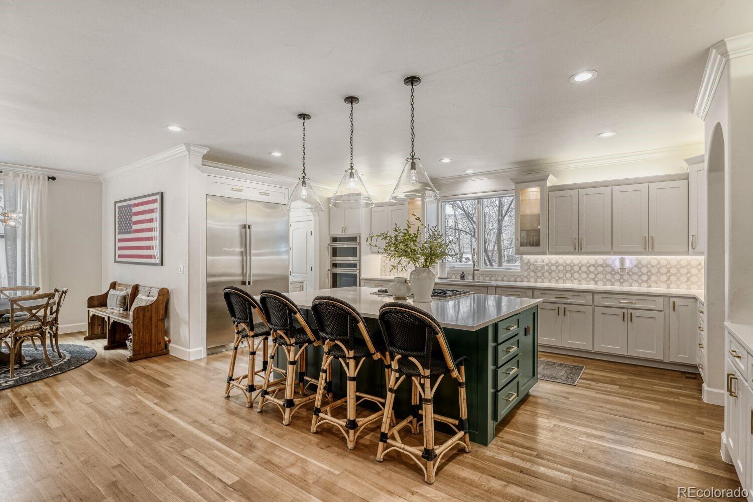 This stunning Tuscan-style residence has been thoughtfully updated with refined finishes that elevate every inch of the home. Located in Observatory Park, this captivating six-bedroom, five-and-a-half-bath home blends timeless elegance with everyday functionality. Designed for both entertaining and comfortable living, the open-concept main level showcases premium details throughout. A formal dining room sets the stage for gatherings, while a private home office with a gas fireplace offers a warm and inspiring workspace. The inviting living room features custom built-ins and a striking fireplace, opening to the fully updated kitchen with a generous island, farmhouse sink, stainless steel appliances, and a light-filled breakfast nook. Upstairs, the primary suite is a private retreat with a five-piece bath, walk-in closet, and secluded balcony. Three additional bedrooms provide en-suite access, with two offering private balconies. The finished basement expands the living space with a spacious recreation room, two additional bedrooms, a Home Gym, and a three-quarter bath ideal for guests or flexible living. Outdoors, the fully fenced backyard offers a peaceful setting to enjoy Colorados seasons, complemented by a detached two-car garage. Premier location in one of Denvers most desirable neighborhoods. Rare opportunity for space, layout, and top-tier schools.