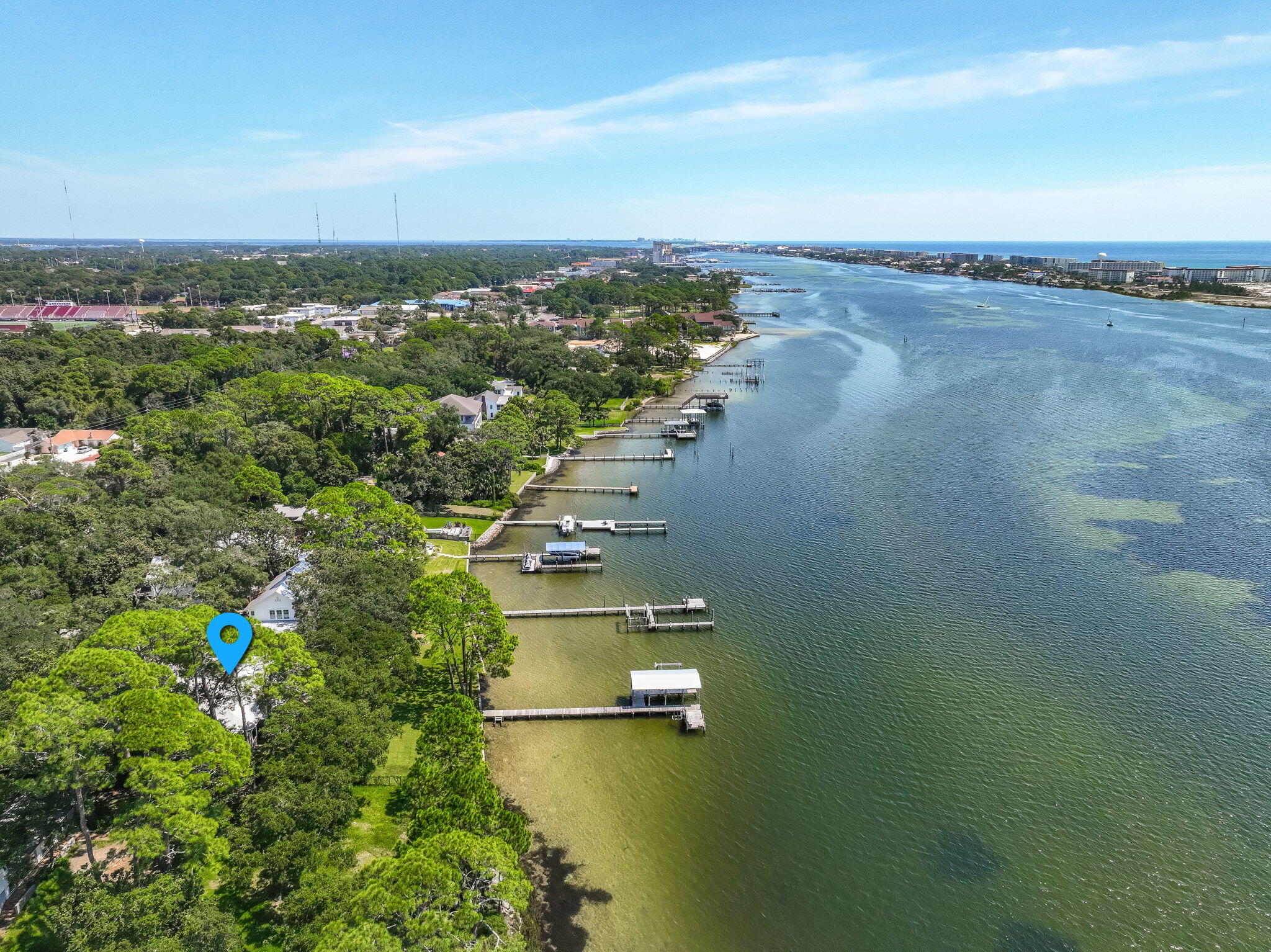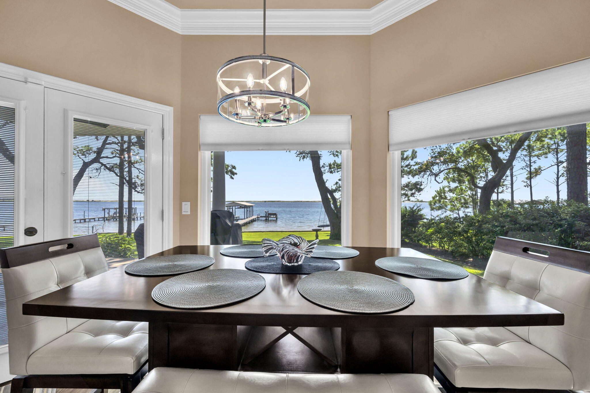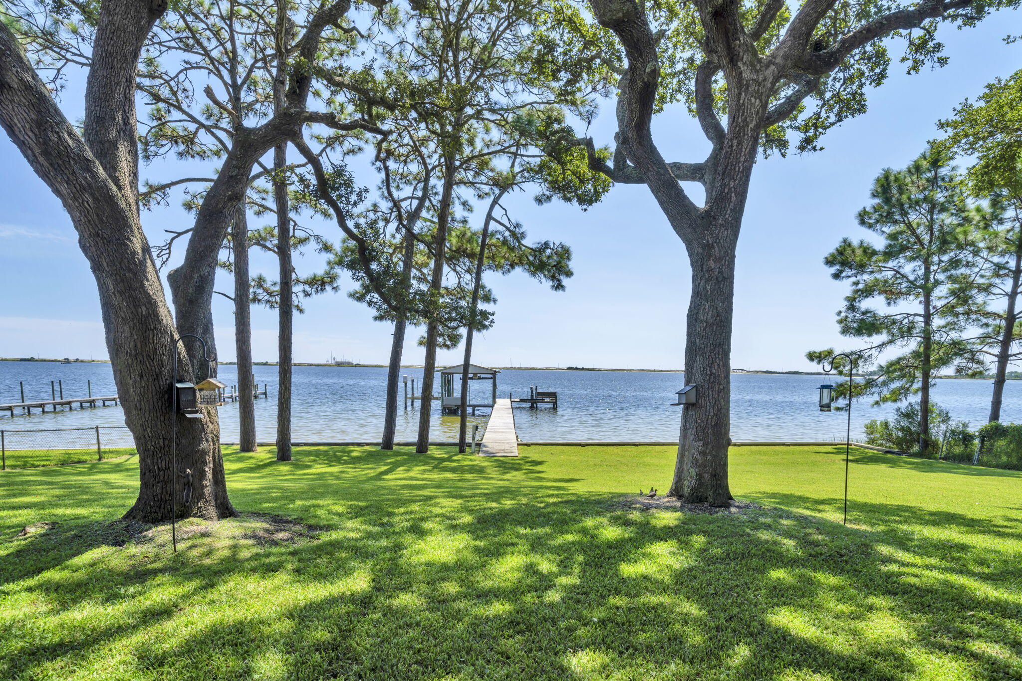 PARADISE FOUND! From the moment entry is made through this gated estate, a sense of peacefulness and tranquility transcends. One is greeted by Majestic Oaks, Magnolias, Pines and Azaleas as the circular drive leads to the handsome, quality built waterfront home where quality meets comfort in perfect style. Every detail from crown molding to garage storage has been lovingly updated and maintained. Magnificent views abound from oversized brand new storm rated windows extending across the entire Intercoastal Waterway/Sound side of the home; and the veranda offers outdoor living to include gas grill, Blackstone griddle & Oni pizza oven, plus panoramic views of the Sound and a stretch of the undeveloped pristine Santa Rosa Islands ( peeks of the Gulf). The waterfront features ALL NEW SEAWALL, dock decking, metal boathouse roof, boat lift motors and water & electric to the dock. The dock includes a covered boat lift, jet ski lifts and entry ladders for easy access to the water. The interior of the home is equally updated and pristine. Every window was replaced this year with Impact Low E Glass. Rooms are spacious, lighting and fixtures modern, closets customized, Jack and Jill style bathrooms for guest, fantastic Mbath, plus two half baths (one accessible from garage) and too much more to list. Please see a more complete list under Documents. You will be impressed. BIG PLUS, located in Flood Zone X