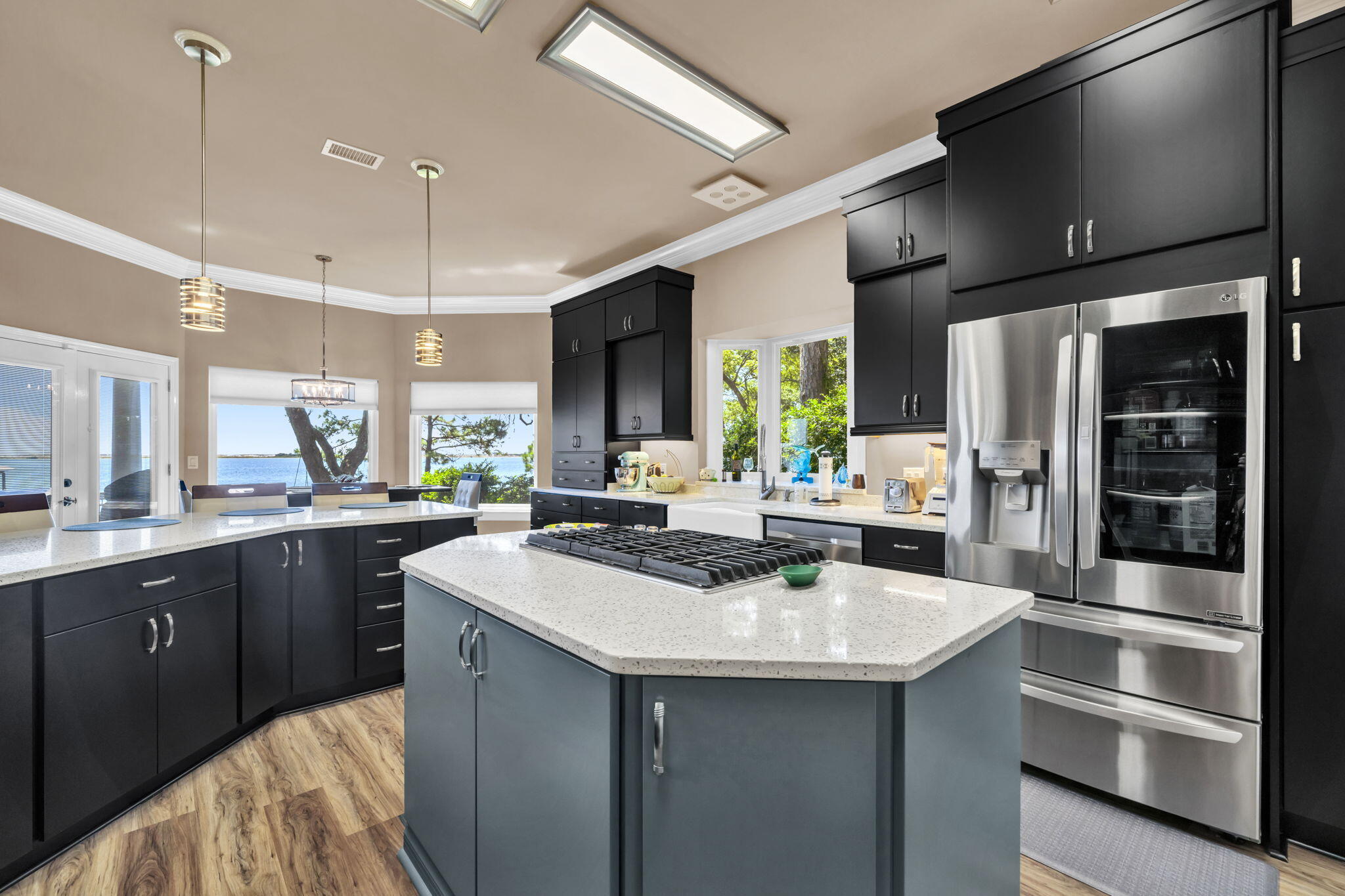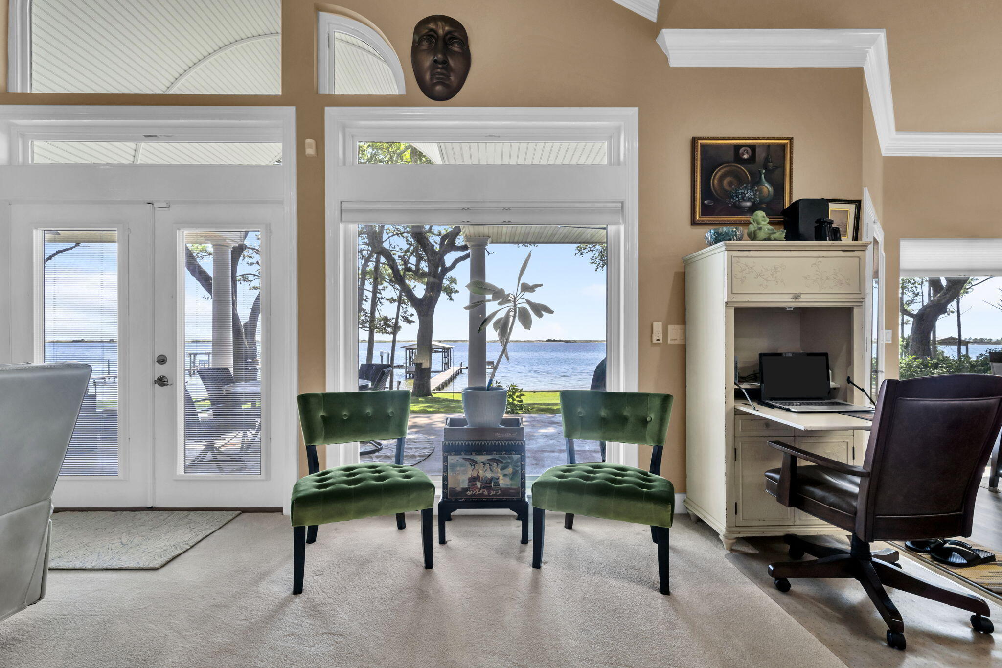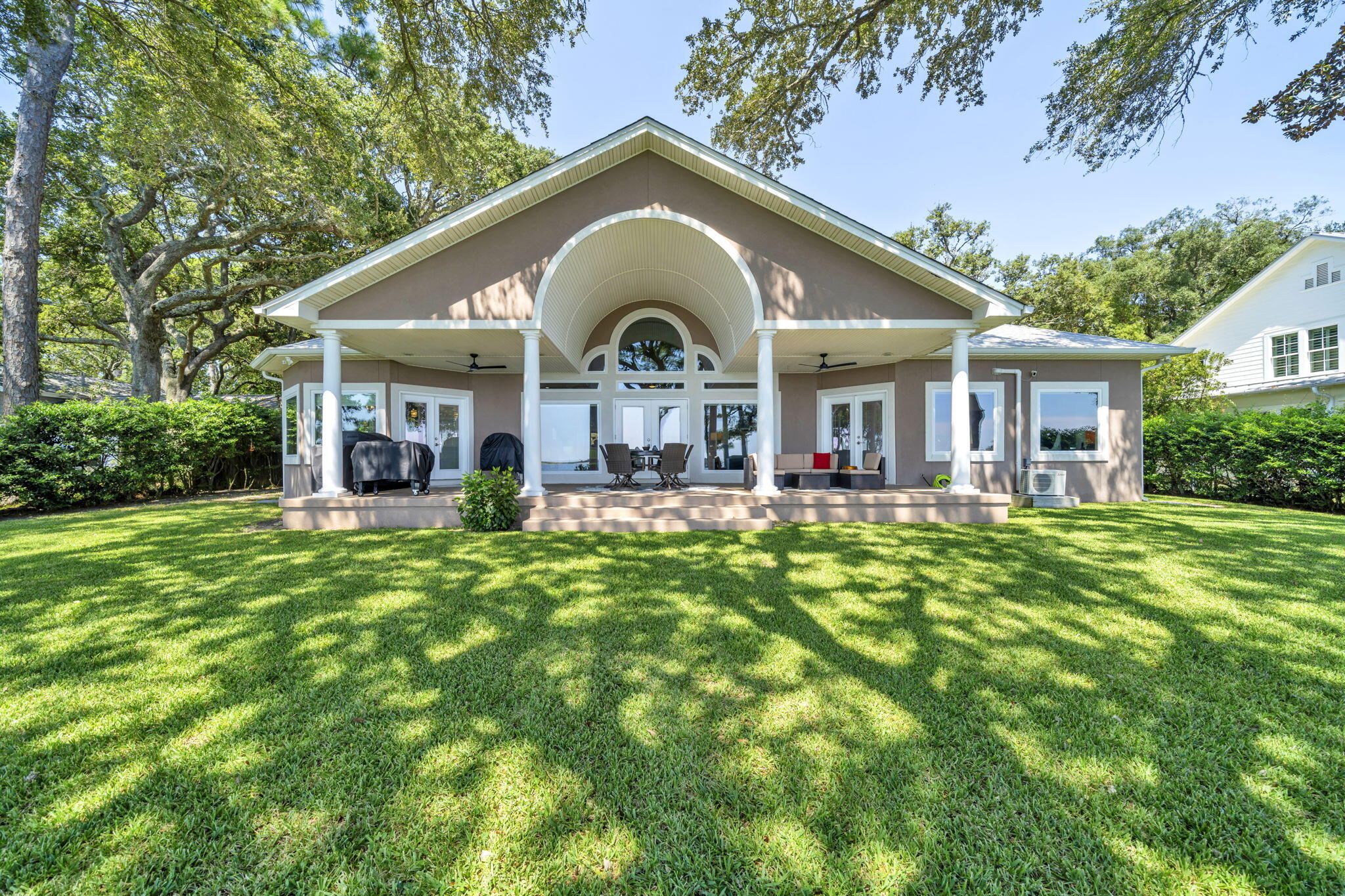 PARADISE FOUND! From the moment entry is made through this gated estate, a sense of peacefulness and tranquility transcends. One is greeted by Majestic Oaks, Magnolias, Pines and Azaleas as the circular drive leads to the handsome, quality built waterfront home where quality meets comfort in perfect style. Every detail from crown molding to garage storage has been lovingly updated and maintained. Magnificent views abound from oversized brand new storm rated windows extending across the entire Intercoastal Waterway/Sound side of the home; and the veranda offers outdoor living to include gas grill, Blackstone griddle & Oni pizza oven, plus panoramic views of the Sound and a stretch of the undeveloped pristine Santa Rosa Islands ( peeks of the Gulf). The waterfront features ALL NEW SEAWALL, dock decking, metal boathouse roof, boat lift motors and water & electric to the dock. The dock includes a covered boat lift, jet ski lifts and entry ladders for easy access to the water. The interior of the home is equally updated and pristine. Every window was replaced this year with Impact Low E Glass. Rooms are spacious, lighting and fixtures modern, closets customized, Jack and Jill style bathrooms for guest, fantastic Mbath, plus two half baths (one accessible from garage) and too much more to list. Please see a more complete list under Documents. You will be impressed. BIG PLUS, located in Flood Zone X