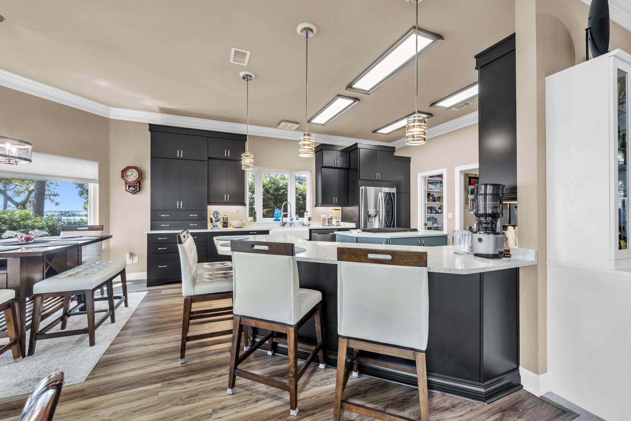 PARADISE FOUND! From the moment entry is made through this gated estate, a sense of peacefulness and tranquility transcends. One is greeted by Majestic Oaks, Magnolias, Pines and Azaleas as the circular drive leads to the handsome, quality built waterfront home where quality meets comfort in perfect style. Every detail from crown molding to garage storage has been lovingly updated and maintained.