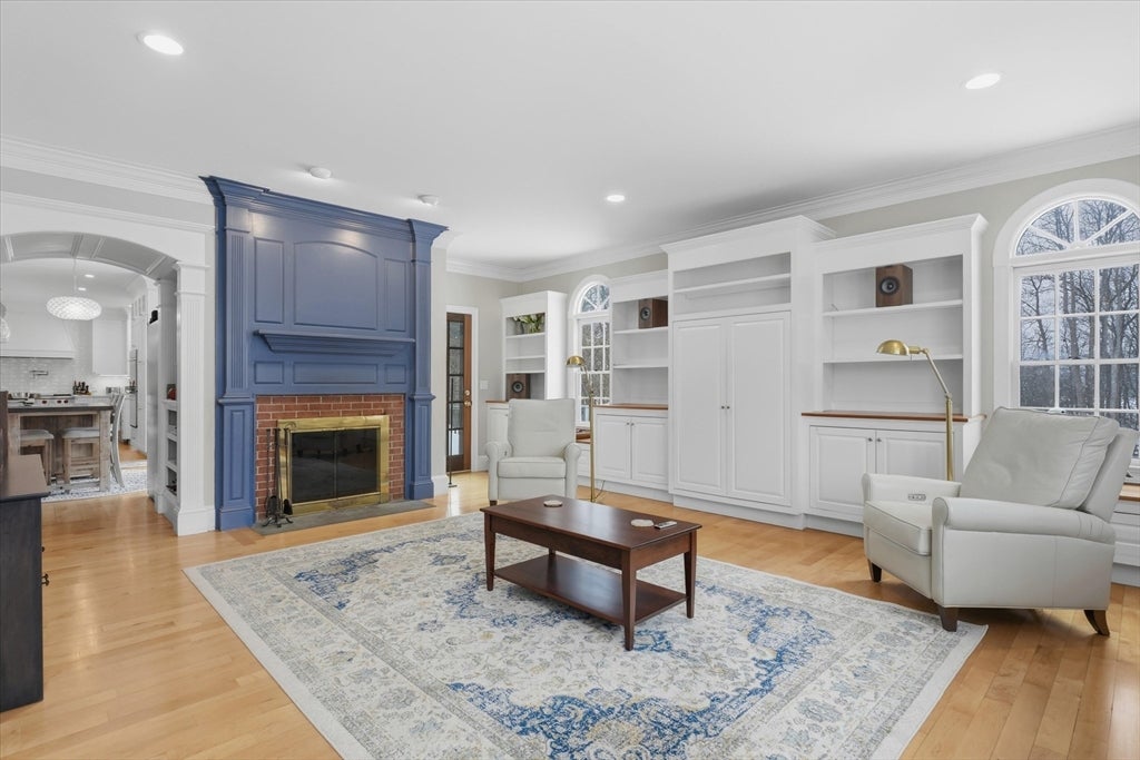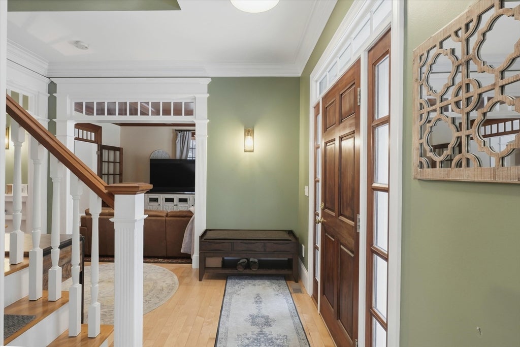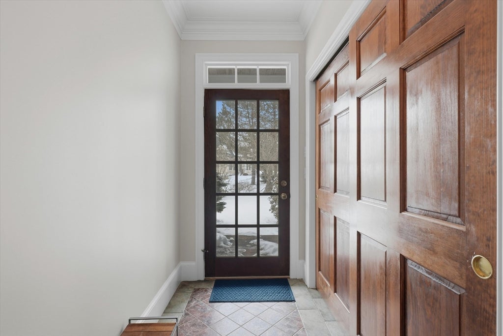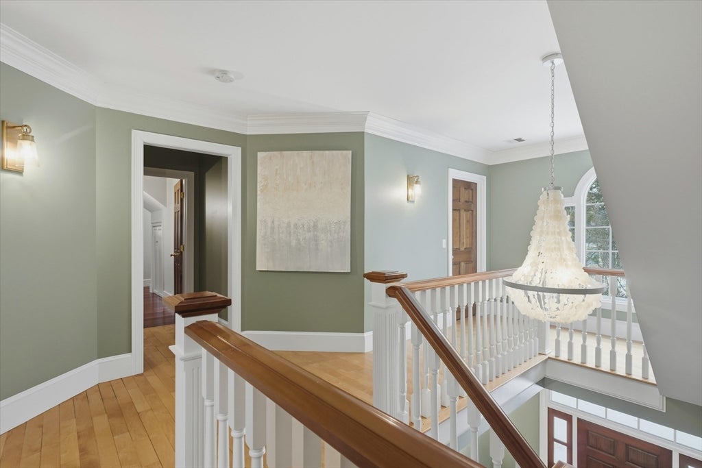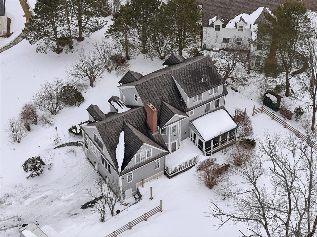 Ideally located on a cul-de-sac, just minutes from Newburyports shops, restaurants, & waterfront. Circa 1998 custom-built home offers exceptional quality & thoughtfully designed layout ideal for entertaining & working from home. Architectural highlights include extensive built-ins, coffered ceilings, maple floors w inlaid cherry border, & bay windows, 11-foot ceilings, & fine millwork throughout. The home provides a rare balance of privacy & convenience, combining a country-like setting with close proximity to the beach & 2.5 miles to downtown Newburyport. Designed for seamless indoor-outdoor living, the layout flows naturally, featuring a new gourmet kitchen, screened porch, & elegant dining room w/ a wet bar. A dedicated home office. The primary suite offers a spacious bath with dual vanities, new tile shower, 6 soaking Jacuzzi style MTI tub, & 2 walk-in closets. Additional potential includes a walk-up third floor ready for expansion & a finished lower level for an exercise room.
