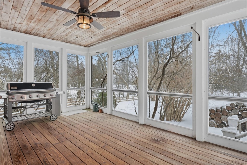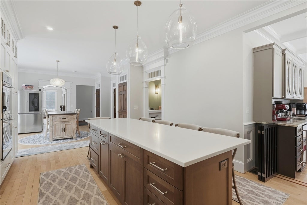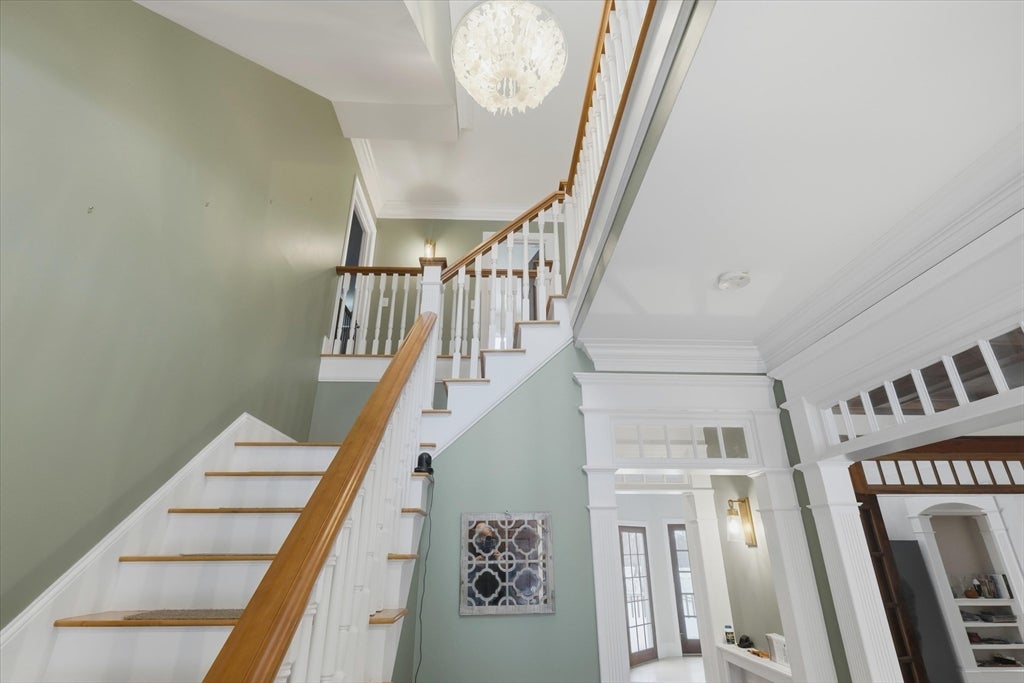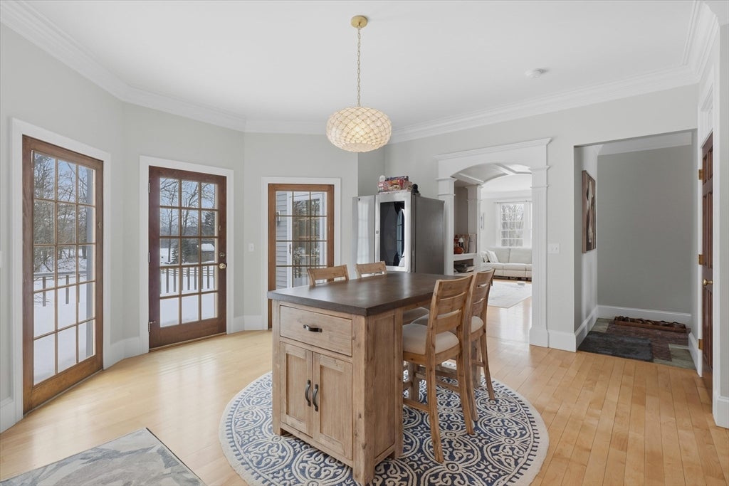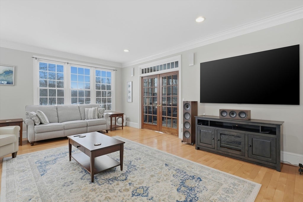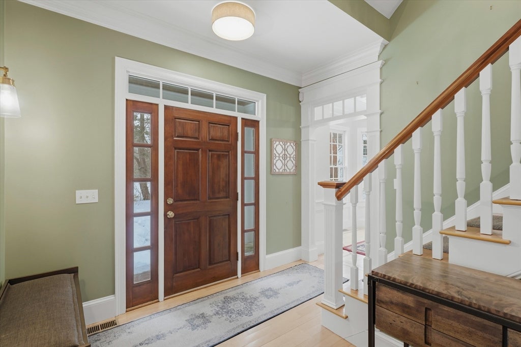 Ideally located on a cul-de-sac, just minutes from Newburyports shops, restaurants, & waterfront. Circa 1998 custom-built home offers exceptional quality & thoughtfully designed layout ideal for entertaining & working from home. Architectural highlights include extensive built-ins, coffered ceilings, maple floors w inlaid cherry border, & bay windows, 11-foot ceilings, & fine millwork throughout. The home provides a rare balance of privacy & convenience, combining a country-like setting with close proximity to the beach & 2.5 miles to downtown Newburyport. Designed for seamless indoor-outdoor living, the layout flows naturally, featuring a new gourmet kitchen, screened porch, & elegant dining room w/ a wet bar. A dedicated home office. The primary suite offers a spacious bath with dual vanities, new tile shower, 6 soaking Jacuzzi style MTI tub, & 2 walk-in closets. Additional potential includes a walk-up third floor ready for expansion & a finished lower level for an exercise room.