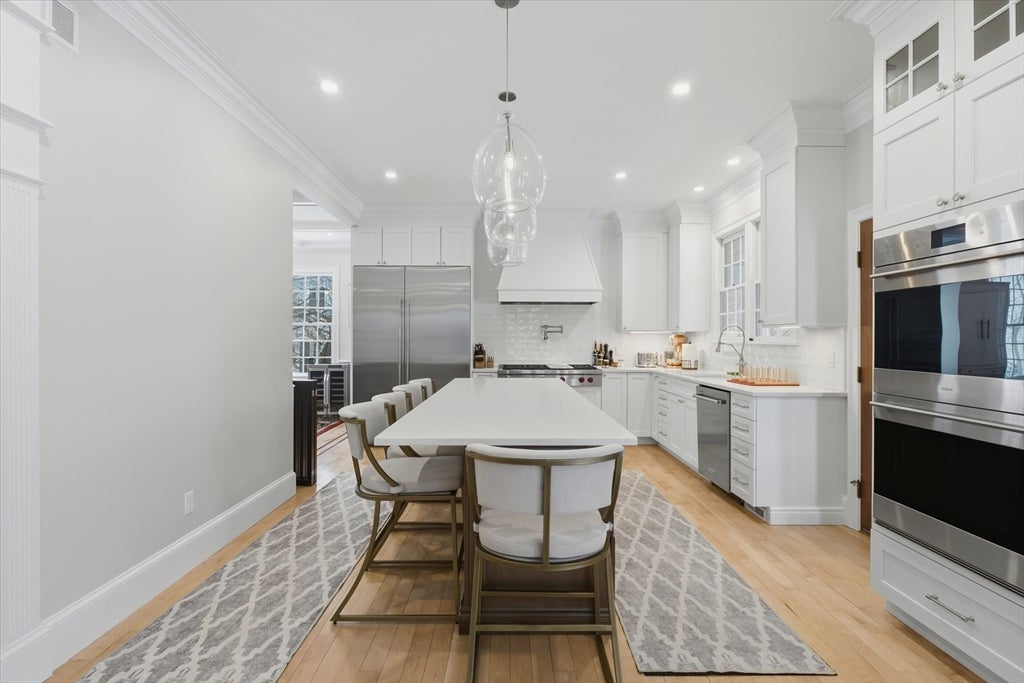 Ideally located on a cul-de-sac, just minutes from Newburyports shops, restaurants, & waterfront. Circa 1998 custom-built home offers exceptional quality & thoughtfully designed layout ideal for entertaining & working from home. Architectural highlights include extensive built-ins, coffered ceilings, maple floors w inlaid cherry border, & bay windows, 11-foot ceilings, & fine millwork throughout.