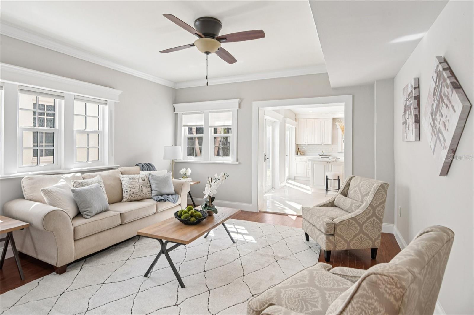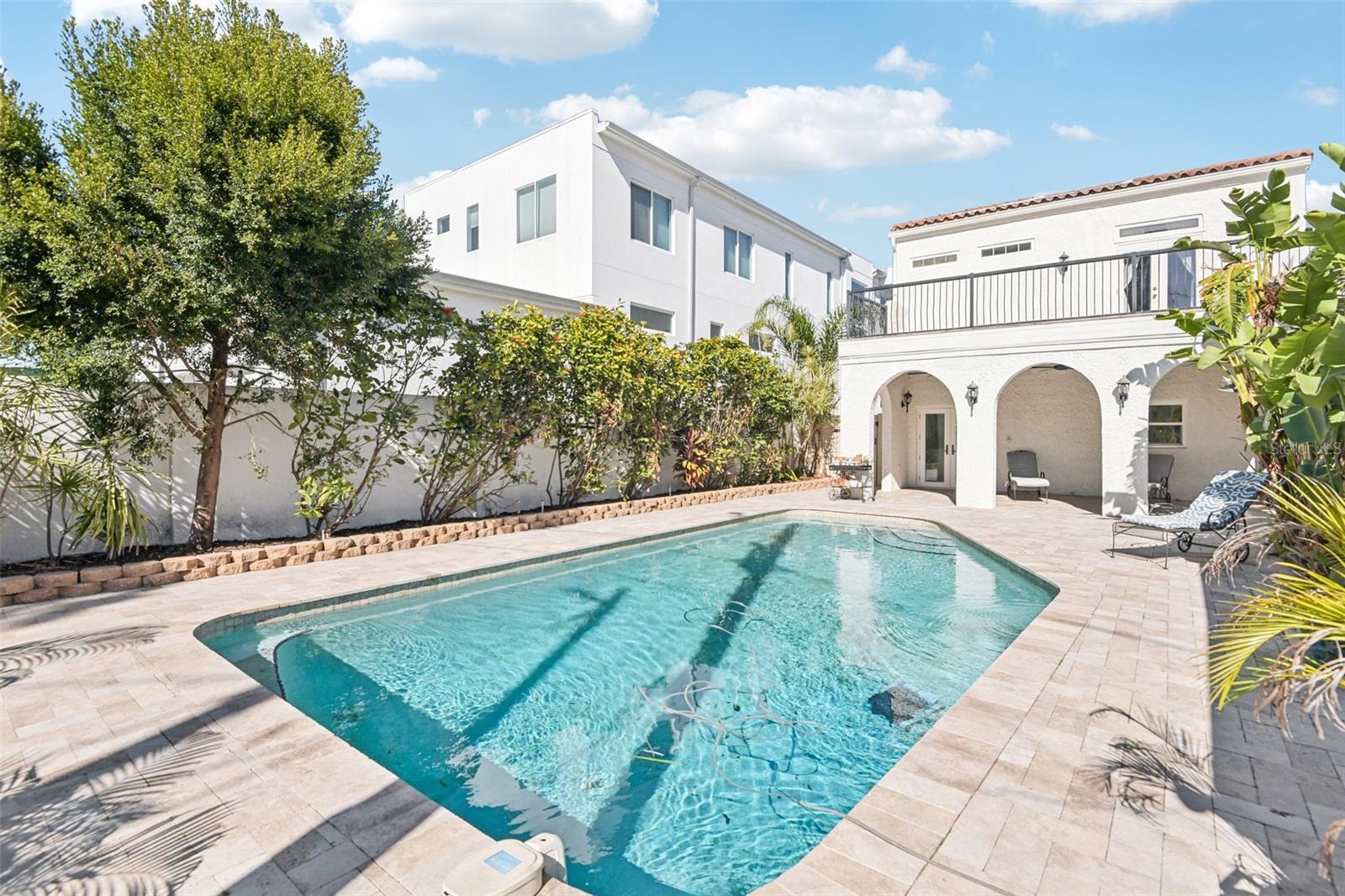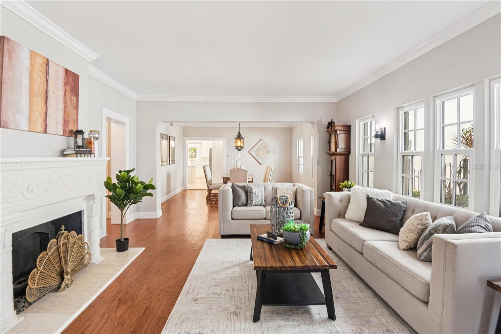 Built in 1926, 104 Palmera is the original and most distinguished estate on coveted Snell Isle, offering a rare opportunity to own a true piece of St. Petersburg history directly across from the signature 9th fairway of the Renaissance Vinoy Golf Course. Lovingly restored over the past decade, this 5- or 6-bedroom, 4.5-bath residence blends timeless architectural character with thoughtful modern updates, including a beautifully renovated kitchen featuring stainless steel appliances and hardwood flooring that adds warmth and continuity throughout the home. The property has also been updated with impact-rated windows and doors, providing peace of mind while helping to reduce insurance premiums and improve energy efficiency. An inviting open-air front porch sets the tone, leading into a formal living room anchored by a stunning carved stone fireplace dating back to 1926. Crown molding, spacious hallways, and original hardwood floors upstairs preserve the homes historic charm, while the flexible floor plan offers functionality for todays lifestyle. The main level also includes a large family room with office area, a separate laundry room, and a convenient half bath. Upstairs, the expansive primary suite serves as a private retreat, complete with French doors opening to a balcony overlooking the pool and lush landscaping, along with a spa-inspired bath featuring a jacuzzi tub, separate shower, dual vanities, and generous walk-in closets. Four additional bedrooms provide ample space for family, guests, or work-from-home needs while maintaining privacy and comfort. Outdoors, the brick-paver pool and entertaining area create a true backyard sanctuary with a covered patio, astroturf lawn, basketball court, and mature landscaping. A separate 600-square-foot pool house or apartment with full bath and kitchen hookup offers ideal accommodations for guests, extended family, or potential rental income. Additional highlights include a new two-car garage, abundant storage, and classic brick pavers enhancing the driveway, entry, and patio areas. As the original Perry Snell family estate, this remarkable property places you within one of St. Petersburgs most prestigious communities, with access to the Vinoy Golf Course and Country Club, the St. Petersburg Yacht Club Snell Isle Marina, and the St. Petersburg Womens Club just moments away. Downtown St. Petersburg is less than a mile away, offering world-class dining, shopping, and cultural attractions, with convenient access to 4th Street and Tampa International Airport within 30 minutes. 104 Palmera is more than a homeit is a legacy property offering historic significance, modern comfort, and an unmatched Snell Isle lifestyle.