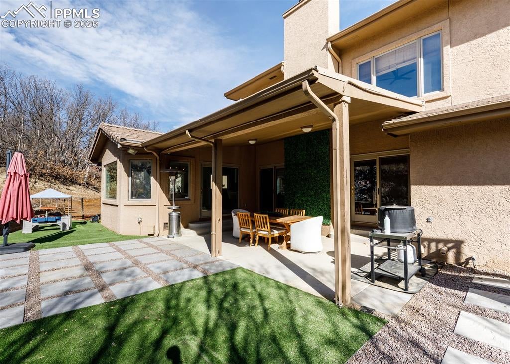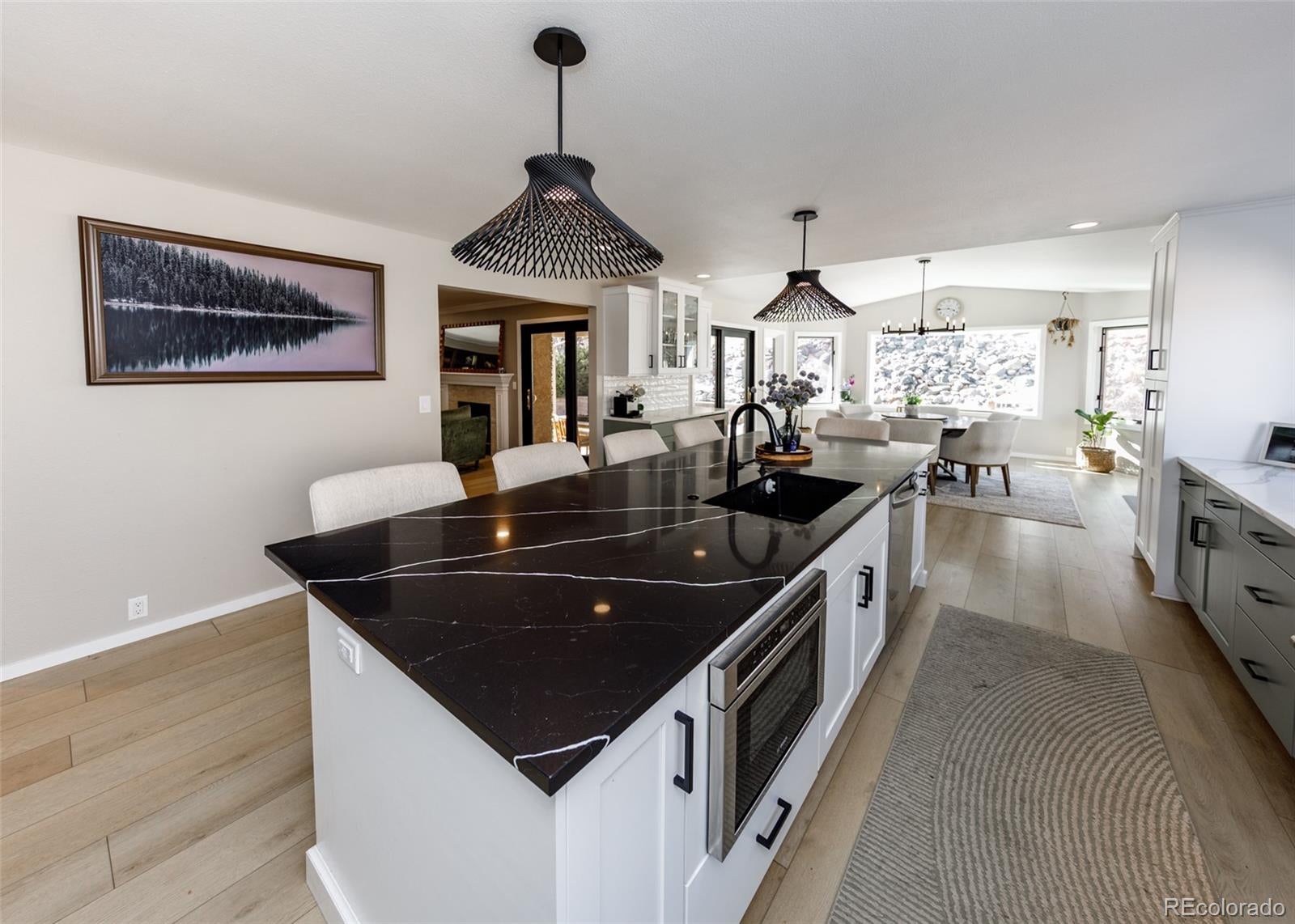 1713 Solitude Ct Flagstaff Arizona 86005-Cozy cabin located within the Creekside neighborhood of Pine Canyon. Private guard gated golf course community in Flagstaff offers four season living, golf, ski and endless recreation! The exceptional luxury residence provides main level living with primary suite and all living space on the main level, wrap around patio, tall pines surrounding the home and built in entertaining area including bbq. The open kitchen overlooks the great room for all season enjoyment, soaring ceilings, gas log fireplace, stone surround accented by ample natural light. Hardwood floors, alder cabinets and doors, exceptional quality and finishes throughout. Upstairs additional primary with two additional bedrooms. Well cared for and truly a great value in PC **4th bedroom is currently a den/tv room and doesnt have a closet**