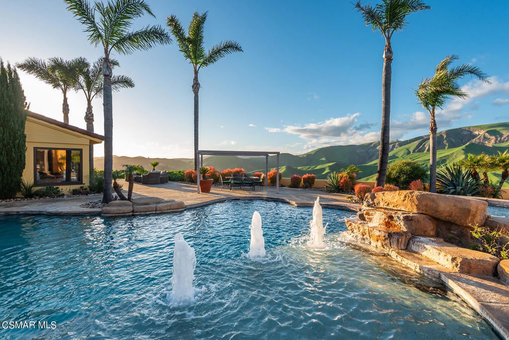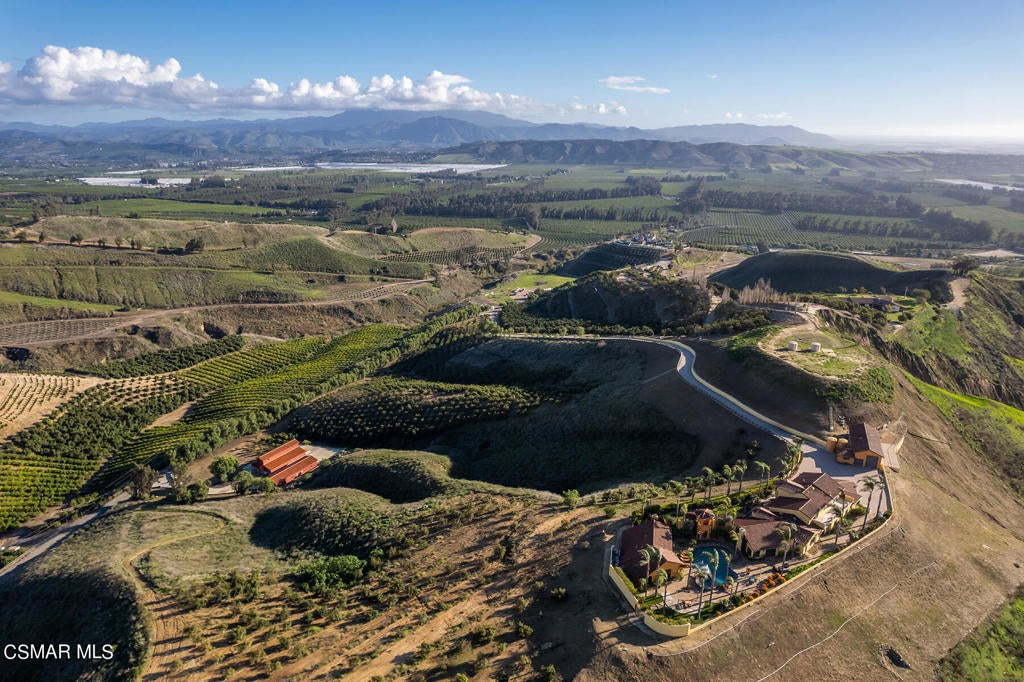 An absolutely awe inspiring masterpiece estate sitting atop over 46 private acres in the highly desirable small gated community of La Loma Ranch. Ideally set behind a private gate and up a long driveway sits this remarkable one of a kind Mediterranean villa boasting the most incredible 360 degree jet liner views in Ventura county. The unobstructed panoramic views of the ocean, mountains and valley below are truly second to none! The primary residence spans 5448 square feet and there is also a 1000 square foot detached guest house, ranchers quarters with kitchen and bathroom, barn and garages for approximately 26 cars. The primary home is graced with an impressive two story entry with curved wrought iron staircase. There is also a theater, office, beautiful center island kitchen and a tremendous primary suite with two balconies, vaulted ceilings, hardwood floors, fireplace and a spa like bathroom with jetted tub, steam shower and fireplace. There are also 3 additional bedrooms in the main home. The detached guest house has one bedroom, living room, kitchen, fireplace, eating area and beautiful bathroom. The resort quality yard provides a pebble tech pool and spa with water features, lush mature landscape and explosive views from everywhere! This true compound villa is a one of one! There is a new approximately 1/2 acre graded pad plus prime lower level grounds ideal for tennis court or go kart tracks, epic massive garages including one with a second story expansive office space and so much more! This is absolutely the premier view ranch estate in highly desirable Somis! A very special offering!