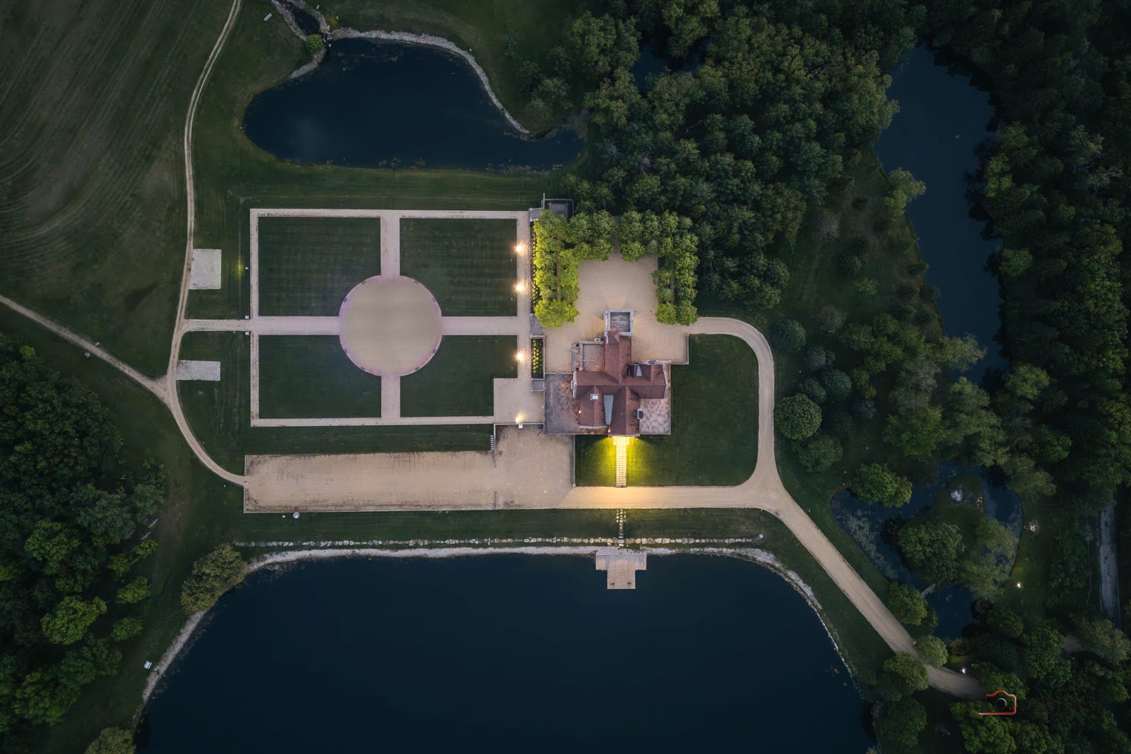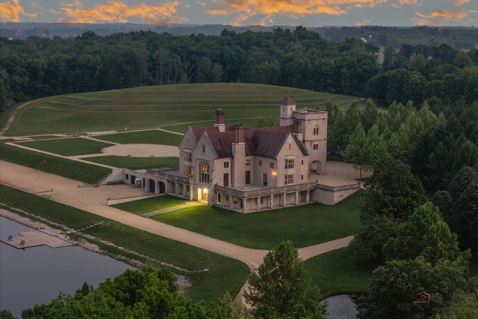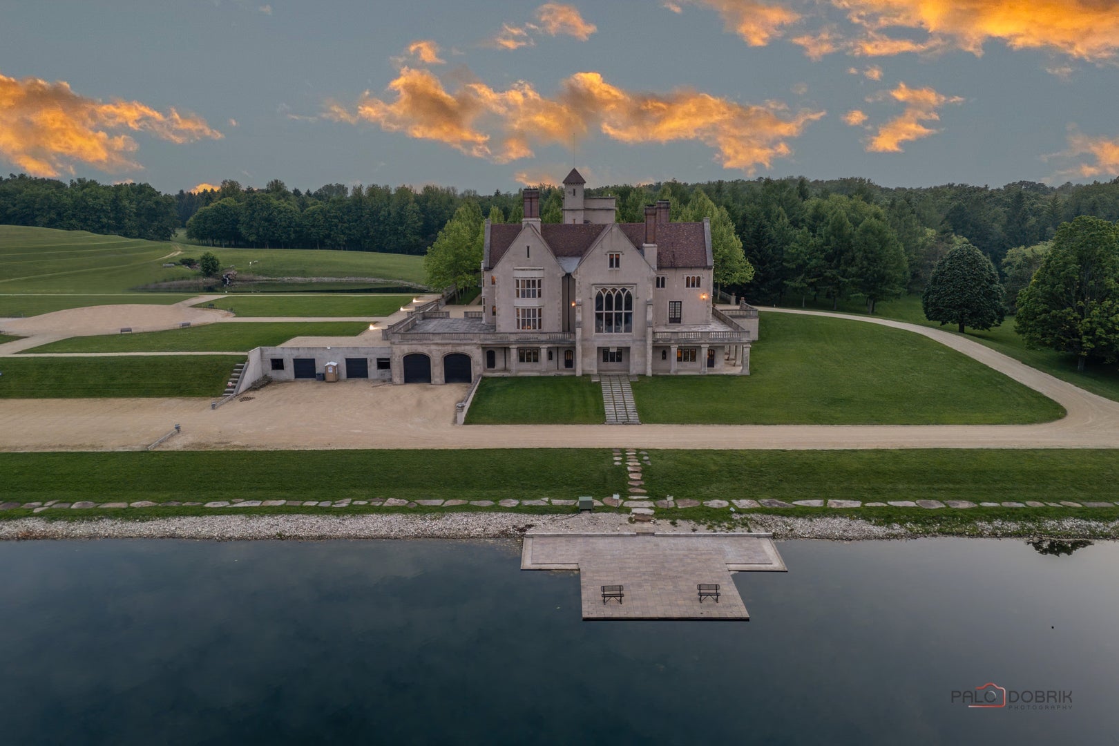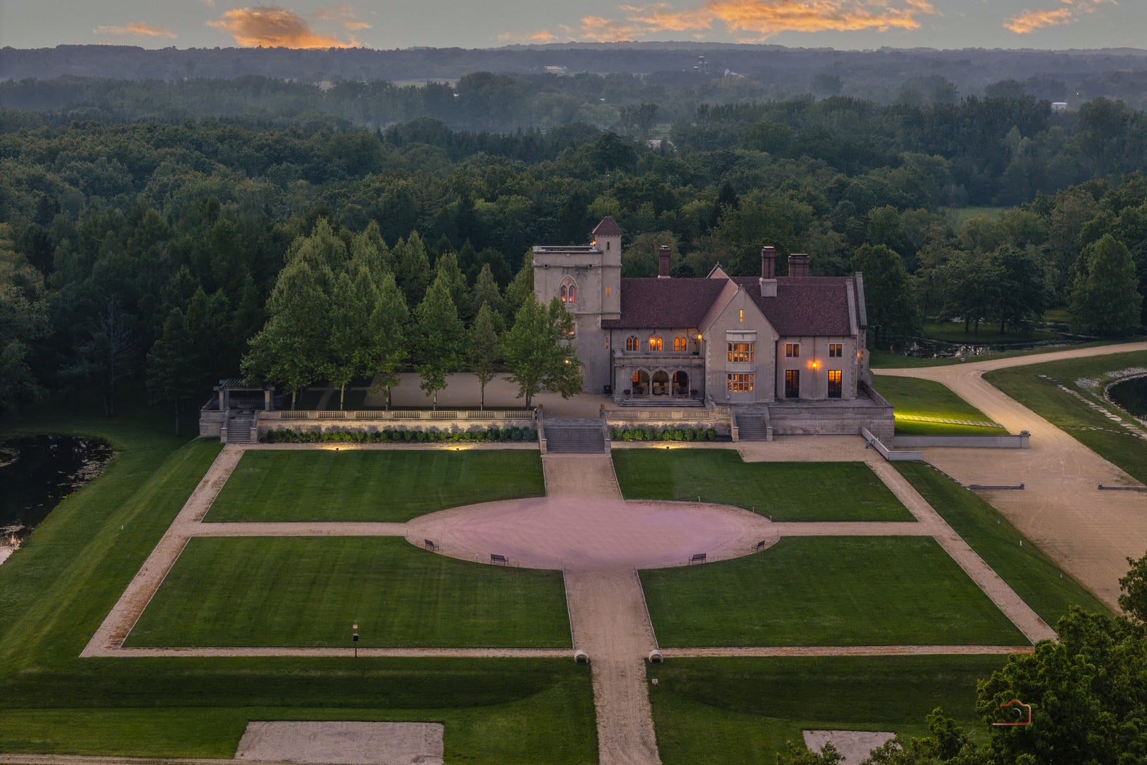 Experience the distinctive charm of this English Manor-an extraordinary architectural gem that flawlessly unites classic sophistication with exquisite attention to detail. Set on 52 breathtaking acres, this one-of-a-kind estate offers a harmonious balance of sophistication and serenity in a setting that simply cannot be replicated at this price. Nestled in a secluded, park-like environment just an hour and a half north of Chicago, the property feels like a European escape without ever leaving the Midwest. From the moment you enter, the attention to detail is apparent. The interior boasts eight exquisite French limestone fireplaces, each a replica of those found in historic French chateaux and installed by master stone carvers from France and England. Beamed ceilings imported from England and hand-laid limestone and wood floors from France infuse the home with warmth and Old World charm. A team of dedicated European artisans ensured that every finish reflects a commitment to quality and authenticity. The homes structural integrity matches its aesthetic beauty. Built with 12-inch reinforced concrete blocks and 6-inch insulated interior walls, the estate offers exceptional durability and energy efficiency. Radiant heated floors span the entire home, laid over both poured and precast concrete for long-lasting comfort. The exterior and select interiors feature stunning Indiana limestone, while a roof of imported French clay tiles adds to the manors timeless character. A partially finished walkout basement spans over 7,800 square feet and includes three potential bedrooms, multiple bathrooms (including one finished half-bath), a kitchen, living room, garage, laundry room, and a wine cellar-offering incredible potential for customization. On the garden level, a striking 60-foot domed space awaits, fully furnished and ideal for elegant private gatherings or memorable events. Beyond the manor itself, the estate is a natural paradise. Meandering streams connect multiple pristine ponds teeming with fish, and a terraced hill awaits transformation into a vineyard or orchard. With acres of space for picturesque horseback riding trails, this is a dream setting for equestrian enthusiasts and nature lovers alike. Whether you envision a private family retreat, an exclusive corporate getaway, an event venue of unparalleled distinction, or a unique business opportunity such as a private timeshare or second home, this property offers endless possibilities. More than a residence, this is a legacy-an invitation to build something enduring in a setting of rare beauty and tranquility. Embrace the opportunity to own a sanctuary where elegance, nature, and adventure converge-a true piece of paradise to be treasured for generations. Additional home can be built on the 52 acres. Home sold as-is.