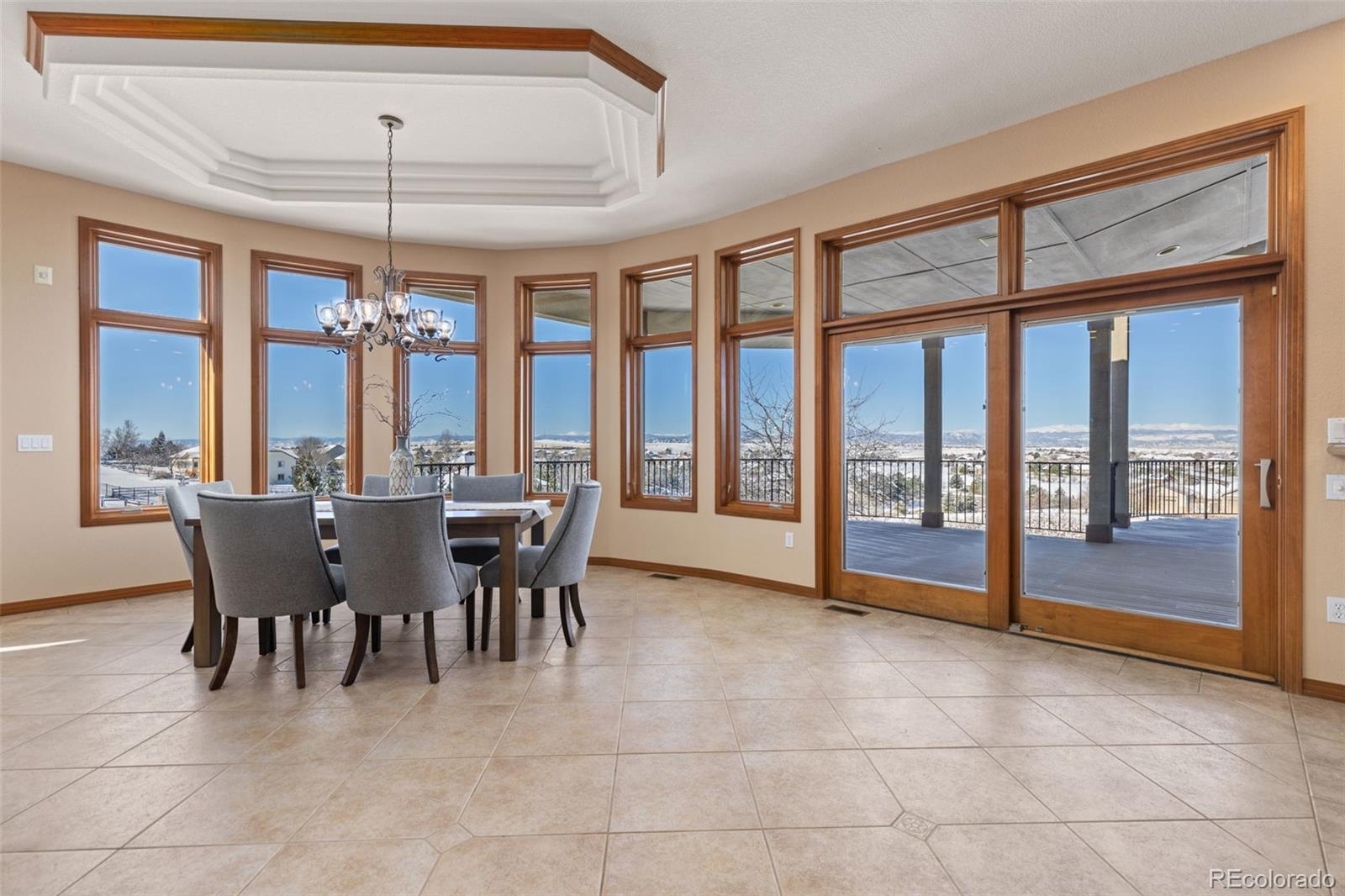 A spectacular 3,800 sq ft ranch completely oriented to panoramic, 270-degree views, this custom residence turns the Colorado horizon into your everyday backdrop from sunrise to star-filled nights. Expansive windows and effortless indooroutdoor connections draw your eye outward the moment you step inside, leading to a huge deck that stretches along the back of the home and feels like a luxury sky terrace. Crafted with 2x6 construction, stucco and stone exterior, and a concrete tile roof, the property is as solid as it is sophisticated, with elevated finishes and thoughtful details at every turn. The gourmet kitchen anchors the home with abundant counter space, premium appliances, and an entertainer-friendly layout that flows into the view-filled great room. The luxurious primary suite captures those same sweeping vistas and is complemented by a spa-style bath and generous wardrobe storage. Set on a 1.5-acre lot, the estate offers rare space and flexibility, including outstanding potential to add an outbuilding, ADU, guest house, multigenerational living, or a private creative retreat. For buyers seeking a true Colorado estate where design, quality, and jaw-dropping views take center stage, this home stands in a class of its own.