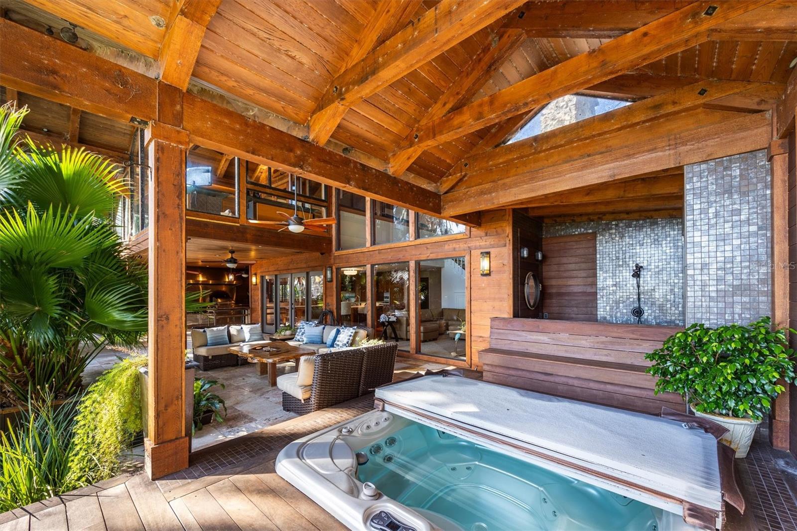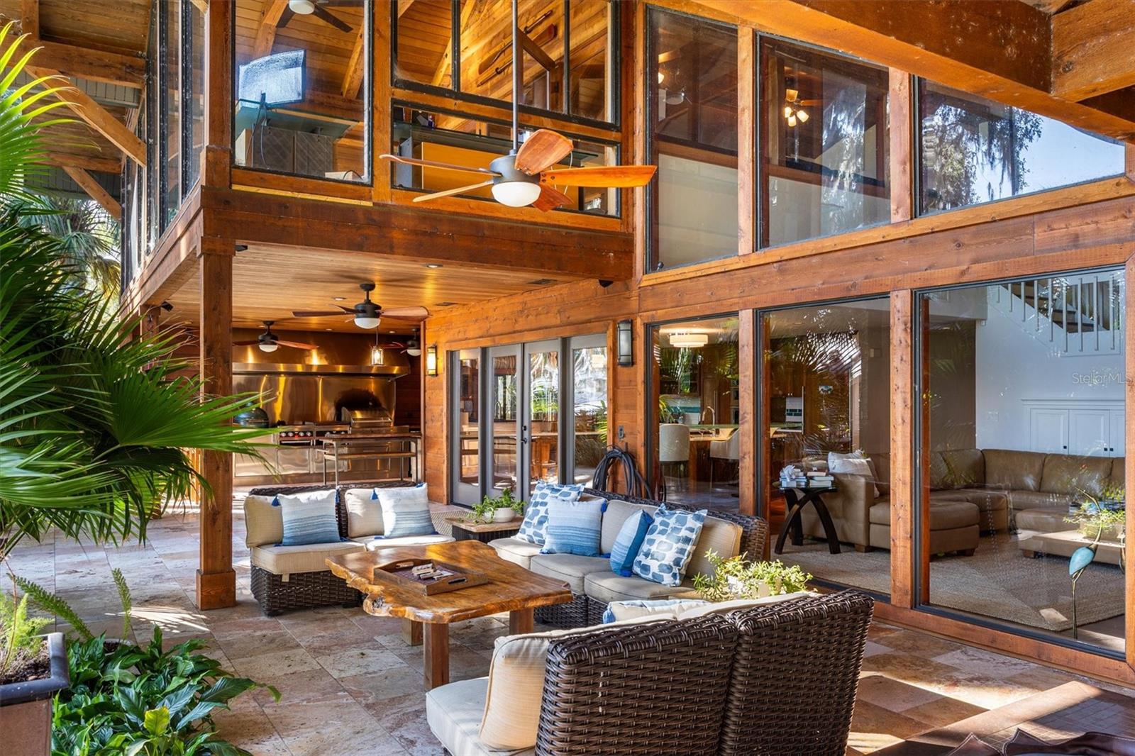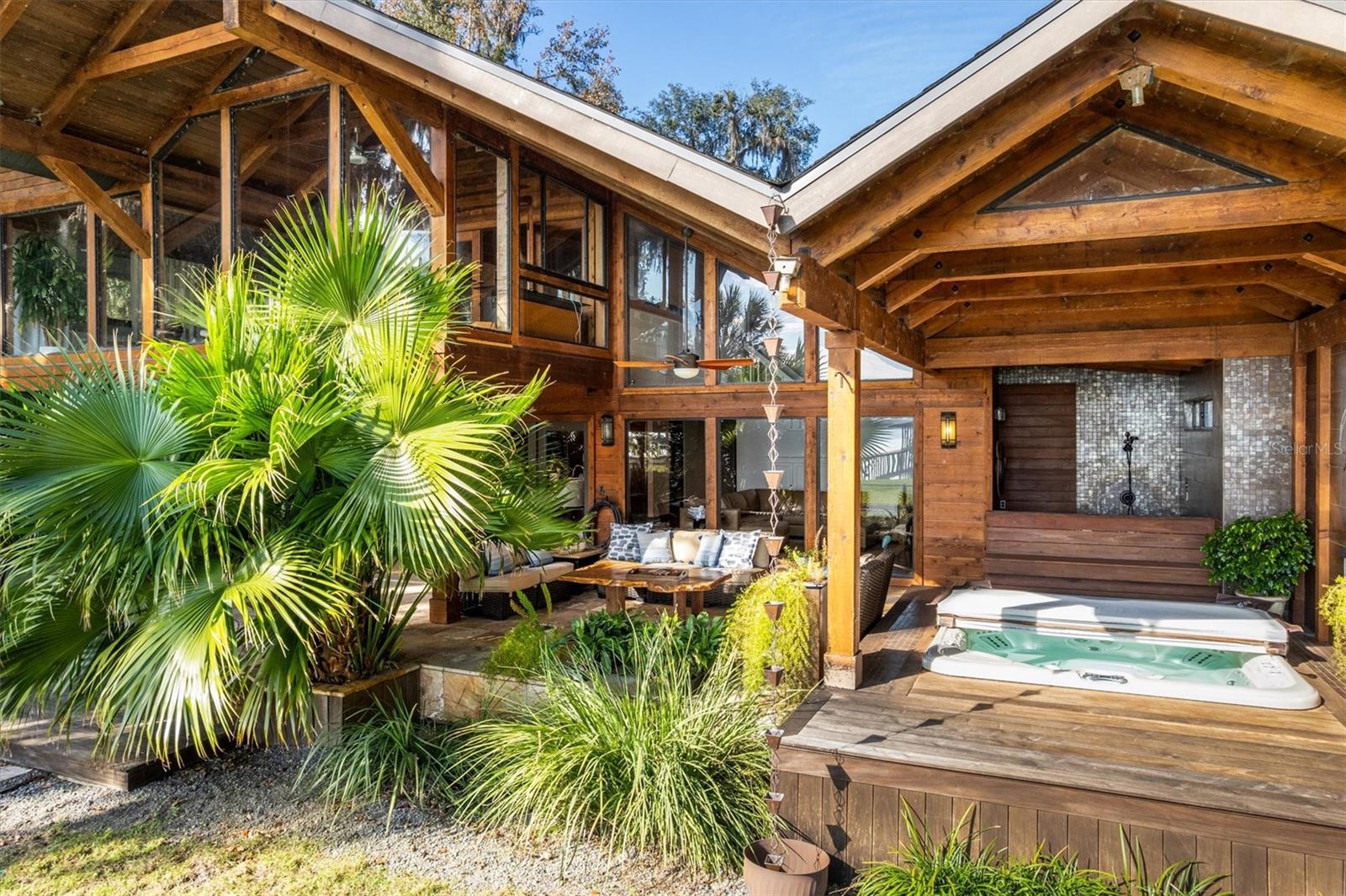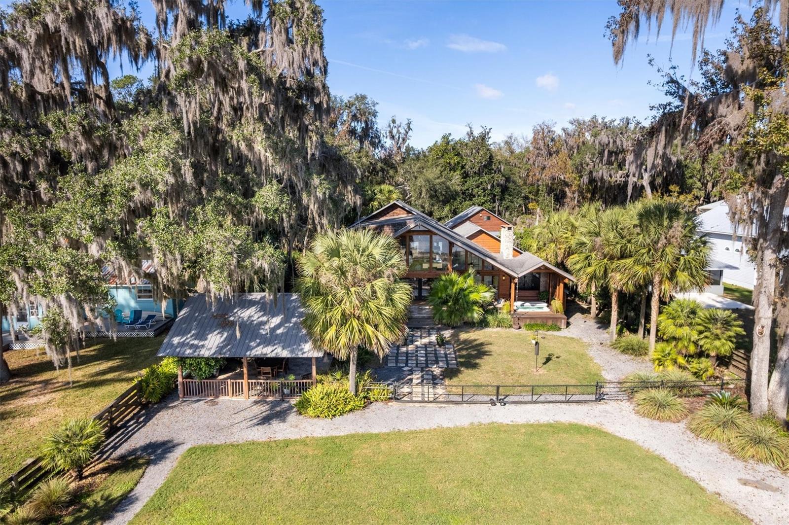 Welcome to this Extraordinary Lake Santa Fe retreata waterfront estate perfectly designed for luxury living, multigenerational comfort, and effortless entertaining! This private oasis blends refined craftsmanship, resort-style amenities, and custom enhancements to create a legacy property designed to be enjoyed year-round. The property features both a primary residence AND a 2/1 apartment over the workshop EACH WITH MORE than additional 800 sq ft! The main residence showcases recent custom features including a gas fireplace in the Great Room as well as fresh kitchen updates including custom quartz and glass kitchen counters, new exhaust hood, and a 2025 KitchenAid appliance suite. The Outdoor living is TRULY exceptional. The grounds are professionally designed by Entropics, and accented by architectural lighting. The lakeside, indoor/outdoor experience continues with a stunning cabana that features heated travertine tile, a sunken saltwater hot tub, an oversized outdoor shower, a second gas fireplace, and a commercial-grade outdoor kitchen, all anchored by a lakeside pavilion ideal for gatherings and sunset views! A full concrete seawall, private boat ramp, and covered dock with TWO liftsthe dock was refinished in 2024offer seamless access to the lake. Additional spaces elevate both lifestyle and functionality. Above the barn/workshop, is a beautifully finished 2-bedroom, 1-bath apartment complete with kitchen, private entrance, washer/dryer, dedicated parking, and lake views provides ideal guest OR income potential! The 870 square foot barn and garage are climate-controlled with standing AC/heat units. Extensive upgrades include built-in cabinetry and workbench, while the epoxy floors are perfect for hobbies or for professional use! An additional garden cabin and potting space add charm and utility for outdoor enthusiasts. Notable infrastructure upgrades include dual 500-gallon propane tanks, a whole-property water treatment system, a converted saltwater hot tub, a mini-split AC in the upstairs yoga studio, and a Bosch dishwasher added in 2023. Throughout the property, peace of mind is ensured with a 30kW Generac whole-home generator, Google Home security cameras, and a SimpliSafe security system. This Lake Santa Fe retreat is more than a homeit is a private resort, a family compound, and a timeless investment, offering unmatched waterfront living with modern reliability and refined elegance. Lake Santa Fe is celebrated for its pristine water quality, excellent fishing, kayaking, paddle boarding, and swimming! Enjoy the conveniences and activities of the eclectic Melrose community AND the serenity of this home and property. Melrose is just 30 minutes from Gainesville, 20 minutes to Gainesville Regional Airport, and 90 minutes to Jacksonville! Experience the perfect harmony of architectural elegance, lakeside tranquility, and classic Florida charm in this one-of-a-kind waterfront home!
