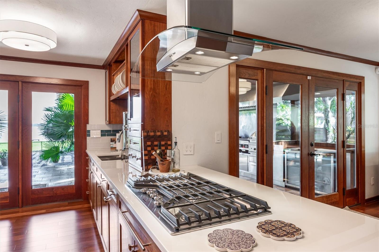 This extraordinary estate blends luxury, privacy, and thoughtful design. Enter through grand 8-foot French doors into an open-concept layout with soaring 22-foot ceilings and oversized windows that flood the home with natural light. Nearly 5,000 sq ft of living space includes a gourmet kitchen and ensuite baths for every bedroom.