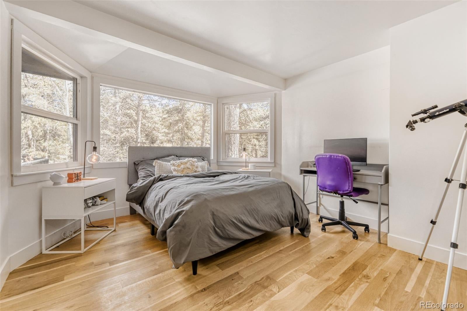 Exceptional Condition & Prime Location!!!Experience the perfect blend of upscale mountain living, privacy, and modern convenience in this recently remodeled 3-acre gated estate. Surrounded by towering pines, dramatic rock outcroppings, and scenic mountain views, this exclusive property offers a peaceful retreat youll love coming home to.Thoughtfully designed and beautifully updated, the home showcases exceptional craftsmanship throughout, featuring rich hardwood flooring, impressive vaulted ceilings and stunning exposed wood beams. Floor-to-ceiling windows bring in an abundance of natural light and highlight the surrounding views.The chefs kitchen is both elegant and functional, appointed with custom cabinetry, granite slab countertops, gas cooktop, and top-of-the-line appliances. It opens seamlessly to the dining area and expansive great room, ideal for entertaining or everyday living. Cozy up by the wood-burning fireplace and enjoy the warmth and character that define this home.The primary suite offers a true retreat, complete with a beautifully remodeled bathroom featuring a spacious walk-in shower and a large walk-in closet.Step outside to the expansive wraparound deck, delivering a true mountain living experience, perfect for entertaining, relaxing, or taking in the peaceful surroundings. The fully fenced and gated property includes multiple outbuildings and an impressive 4-car garage/workshop, offering ample space for all your recreational vehicles.This property offers convenient access to nearby amenities, grocery stores, and major routes. Enjoy an easy commute to Red Rocks Amphitheatre, Downtown Denver, and DIA, truly the best of both worlds. (((Call the Listing Broker today to schedule your private showing))).