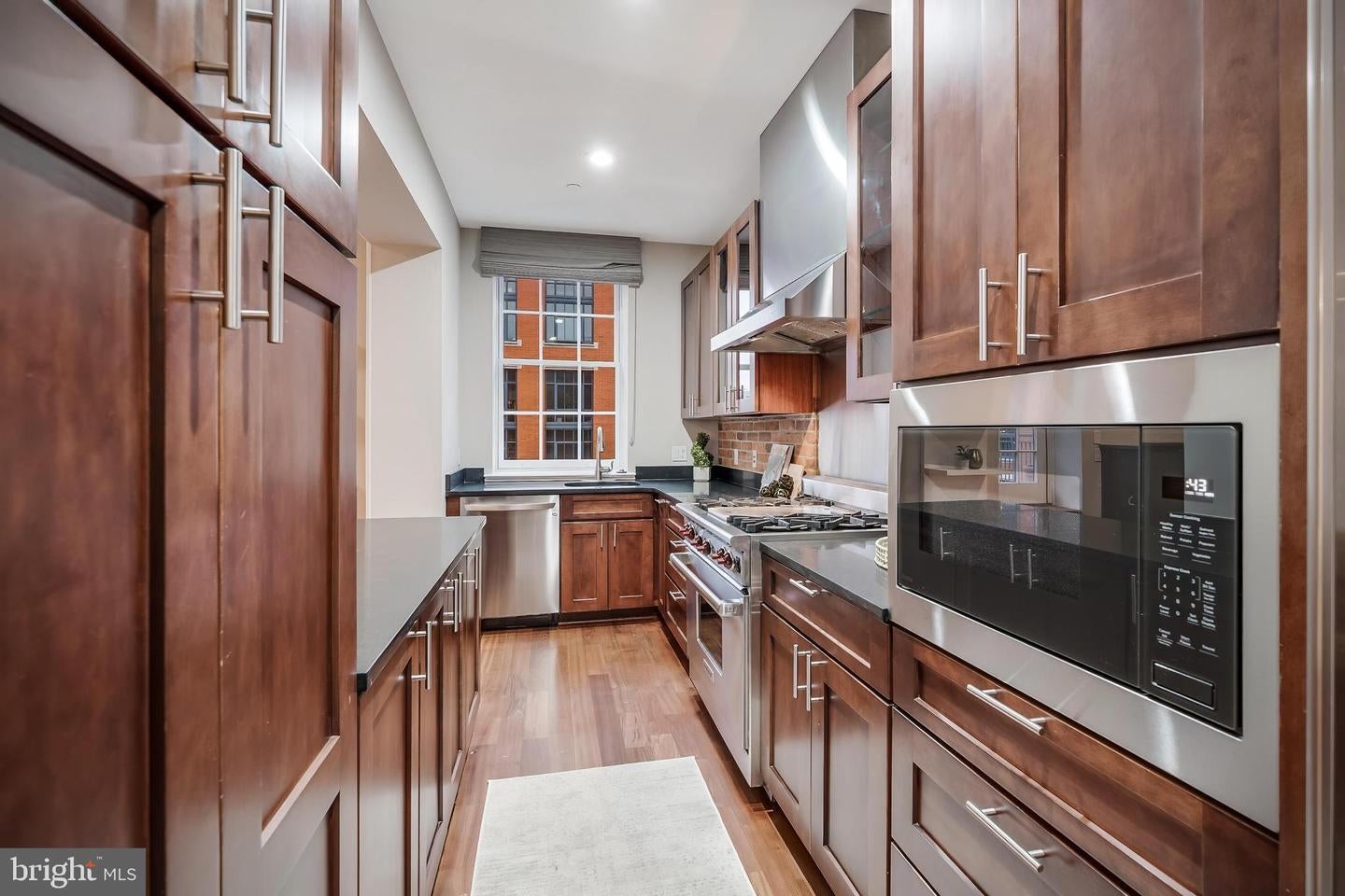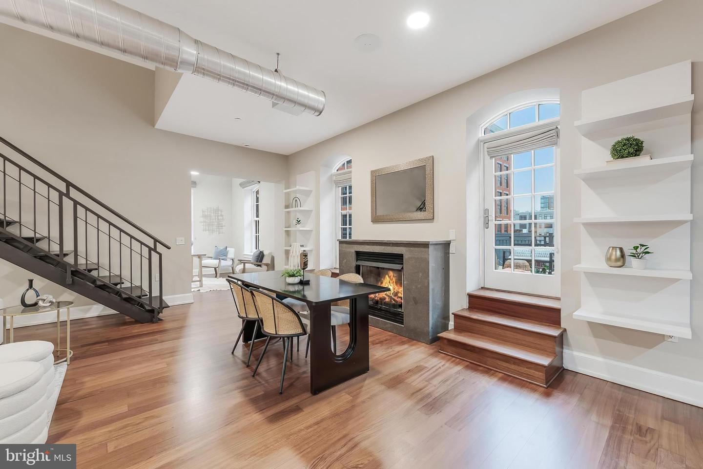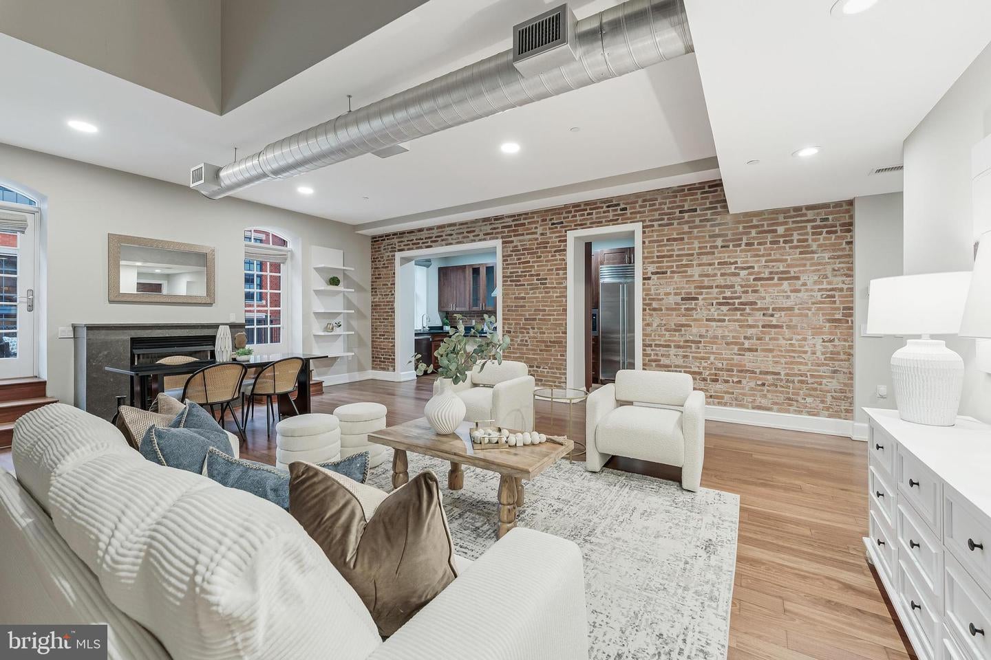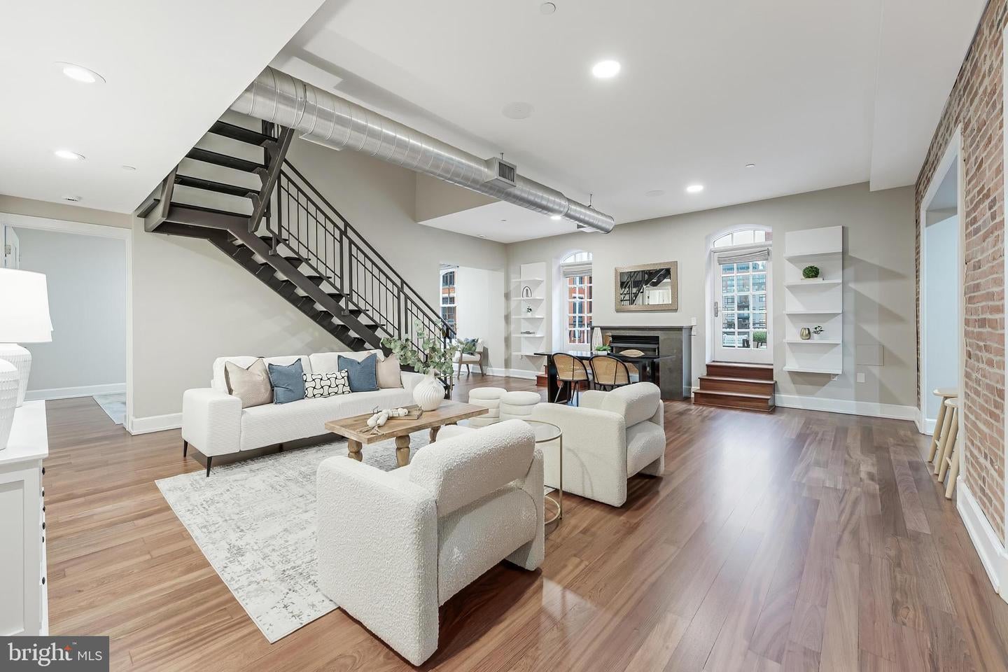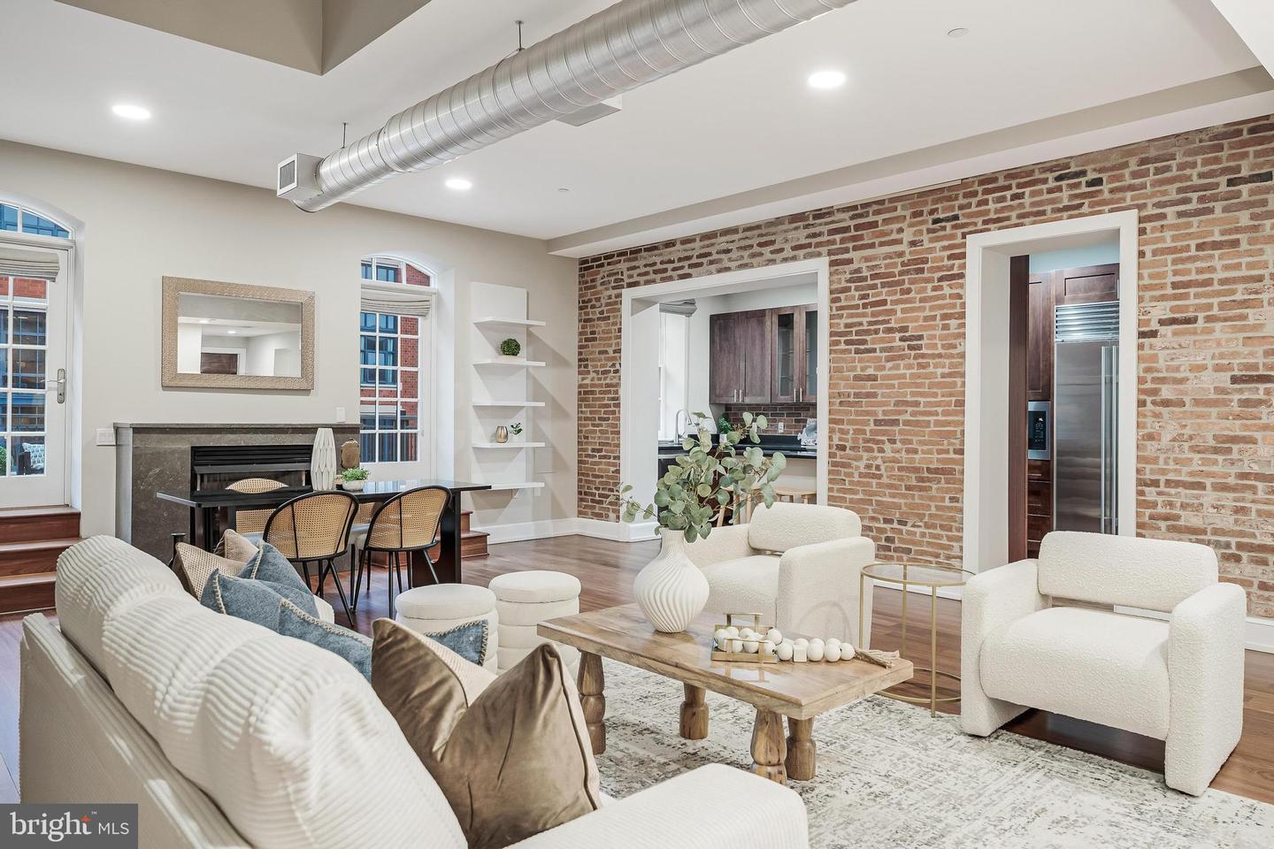 Rarely Available Landmark Lofts Penthouse Unit 401 With Personal Terrace. This fully renovated two-level residence at historic Landmark Lofts delivers 2,245 sq ft of interior living space plus an approximately 600 sq ft private terrace one of the largest in the building with 2 bedrooms, 2.5 baths, and 2 assigned garage parking spaces, steps from Union Station and the Capitol.The main level opens to a sweeping living and dining space defined by exposed brick walls, freshly refinished hardwood floors, original industrial ductwork, a fireplace with stone surround, arched windows, built-in shelving, and a dramatic steel staircase. The kitchen features dark walnut cabinetry with glass uppers, black granite counters, brick backsplash, professional range, stainless hood, Sub-Zero refrigerator, and a breakfast bar open to the living area. A private office with full built-ins, a second bedroom, and two fully renovated baths all new as of January 2026 plus a powder room with floating vanity complete the main level.Upstairs, the primary suite features original exposed timber beams spanning a vaulted ceiling above Brazilian cherry hardwood floors, an arched window, and a loft sitting area. The primary bath was fully gut-renovated with large-format marble tile floor and surround, soaking tub, frameless glass rain shower with rain head, floating double vanity, and dual LED-backlit mirrors.The private terrace wraps the exterior of the penthouse level with direct French door access, multiple seating zones, and city views. At approximately 600 sq ft, it accommodates both a full dining setup and a separate lounge area a rare find.Major systems and finishes are all recently updated: new HVAC (2024), all new lighting and switches (2025), all bathrooms new (2026), floors recently refinished, fresh paint throughout, plus new washer/dryer and dishwasher (2022).Landmark Lofts offers 24-hour concierge, rooftop pool, fitness center, theatre room, club room, and dry cleaning pickup. Whole Foods, Harris Teeter, Trader Joes, Union Market, and the Red Line all within blocks.