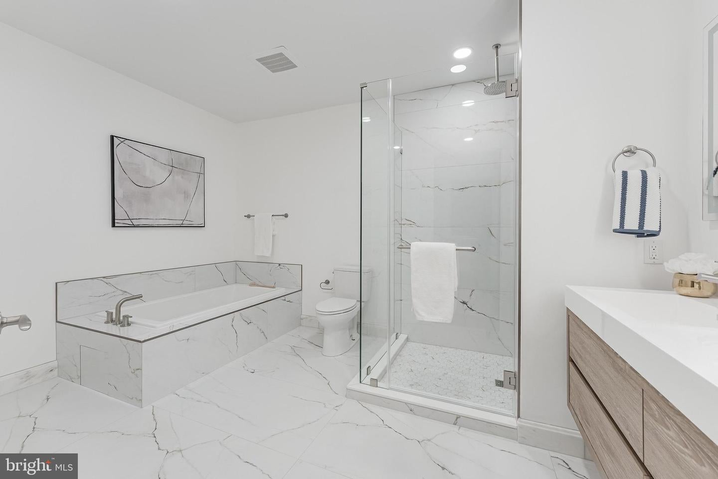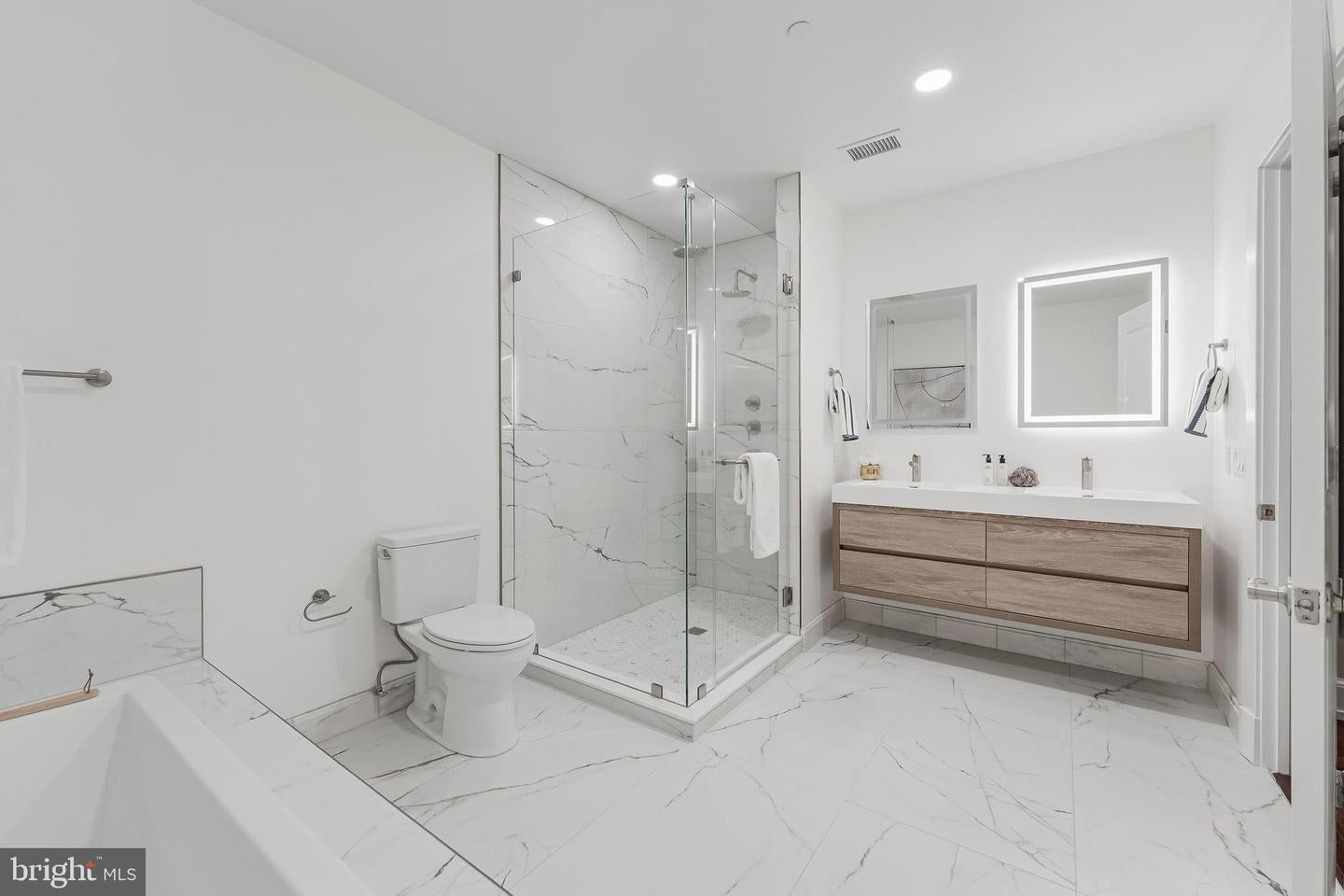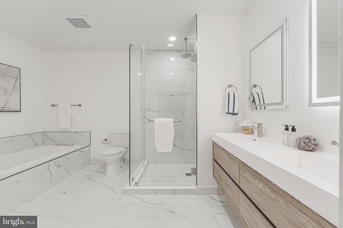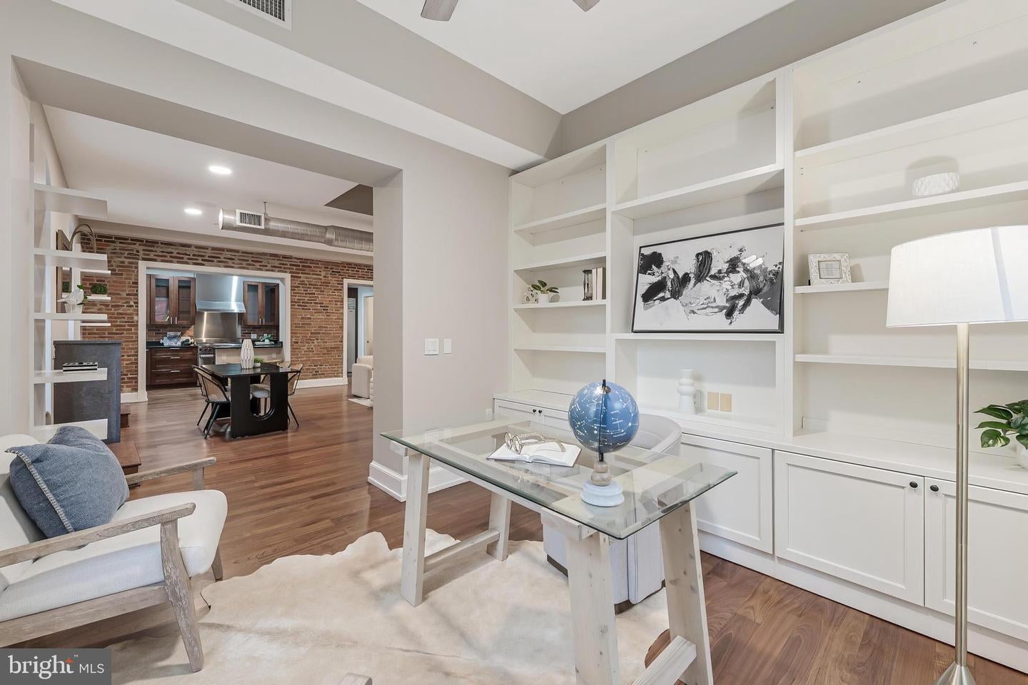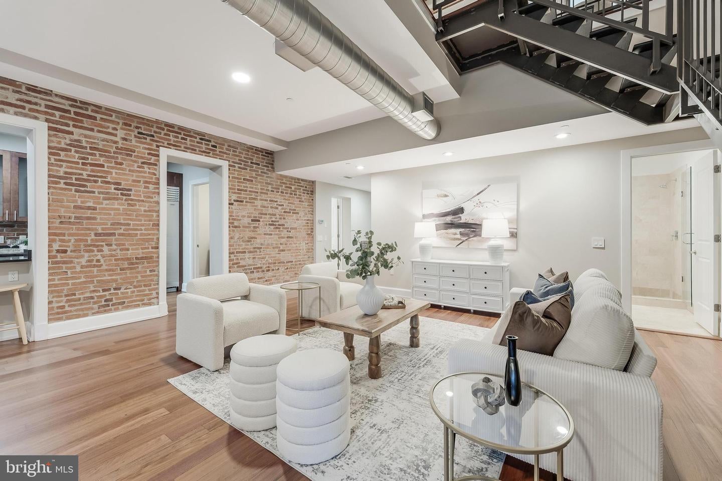 Rarely Available Landmark Lofts Penthouse Unit 401 With Personal Terrace. This fully renovated two-level residence at historic Landmark Lofts delivers 2,245 sq ft of interior living space plus an approximately 600 sq ft private terrace one of the largest in the building with 2 bedrooms, 2.5 baths, and 2 assigned garage parking spaces, steps from Union Station and the Capitol.The main level opens to a sweeping living and dining space defined by exposed brick walls, freshly refinished hardwood floors, original industrial ductwork, a fireplace with stone surround, arched windows, built-in shelving, and a dramatic steel staircase. The kitchen features dark walnut cabinetry with glass uppers, black granite counters, brick backsplash, professional range, stainless hood, Sub-Zero refrigerator, and a breakfast bar open to the living area. A private office with full built-ins, a second bedroom, and two fully renovated baths all new as of January 2026 plus a powder room with floating vanity complete the main level.Upstairs, the primary suite features original exposed timber beams spanning a vaulted ceiling above Brazilian cherry hardwood floors, an arched window, and a loft sitting area. The primary bath was fully gut-renovated with large-format marble tile floor and surround, soaking tub, frameless glass rain shower with rain head, floating double vanity, and dual LED-backlit mirrors.The private terrace wraps the exterior of the penthouse level with direct French door access, multiple seating zones, and city views. At approximately 600 sq ft, it accommodates both a full dining setup and a separate lounge area a rare find.Major systems and finishes are all recently updated: new HVAC (2024), all new lighting and switches (2025), all bathrooms new (2026), floors recently refinished, fresh paint throughout, plus new washer/dryer and dishwasher (2022).Landmark Lofts offers 24-hour concierge, rooftop pool, fitness center, theatre room, club room, and dry cleaning pickup. Whole Foods, Harris Teeter, Trader Joes, Union Market, and the Red Line all within blocks.