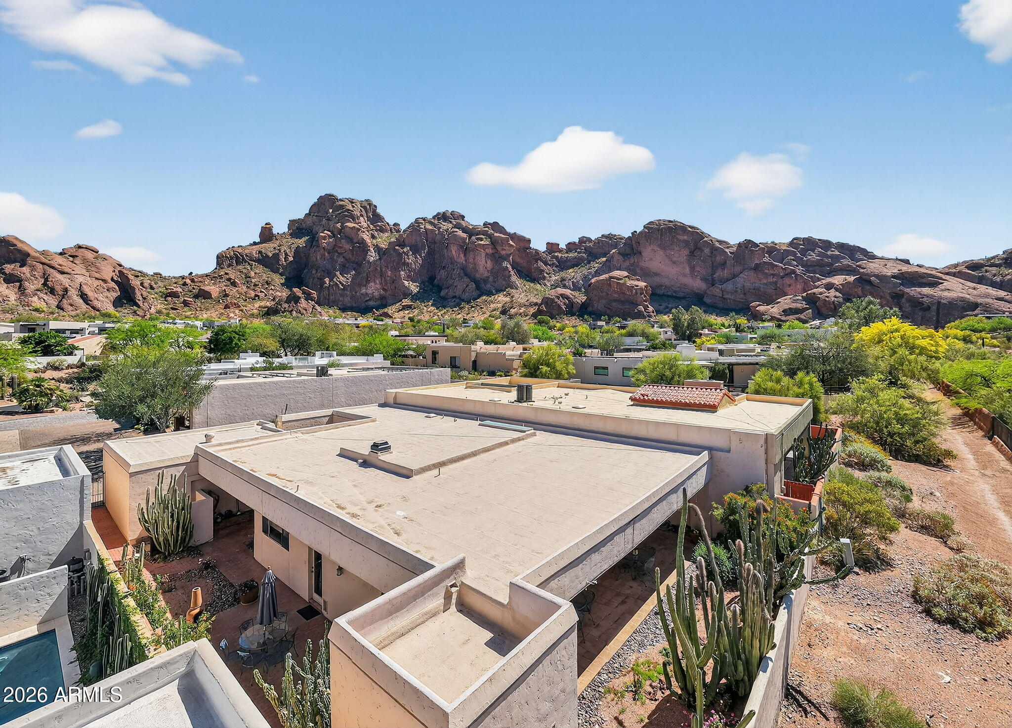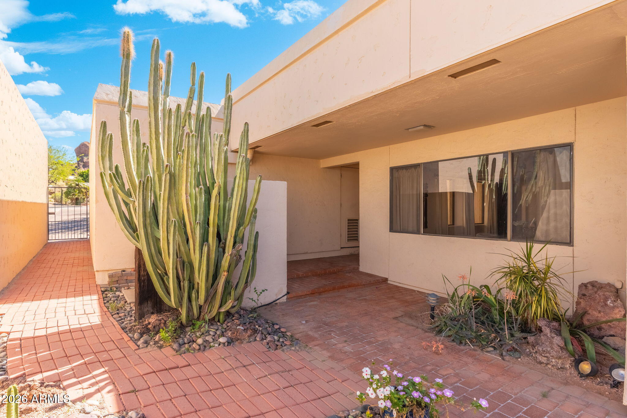 Welcome to Echo Canyon! One of the Valleys most coveted 24/7 guard-gated communities near the base of Camelback Mountain, where opportunity meets lifestyle. This single-level courtyard home offers the perfect canvas for those looking to create or remodel in a premier location. A gated courtyard entry leads into a charming home filled w/ authentic Southwestern character, including Saltillo tile floors, banco seating & a cozy fireplace that anchors the great room. Kitchen features tile countertops, Sub-Zero fridge & an adjoining breakfast room. Step outside to an expansive wrap around covered patio w/ built-in BBQ, surrounded by brick walkways, mature cacti & native desert landscaping. With no direct backyard neighbors, the setting offers privacy, tranquility & space to design your ideal outdoor retreat. This property presents a rare opportunity to renovate, modernize, or potentially add a second story to capture iconic Camelback Mountain views - a highly desirable feature in this location.Additional highlights include 9-foot ceilings, newer AC, and a flexible layout with 3 bedrooms plus a bonus room ideal for an office, studio, or flex space.Residents enjoy access to resort-style amenities, including a pool, spa, and new tennis courts coming soon.% Prime location. Endless potential. Create your dream in Echo Canyon.