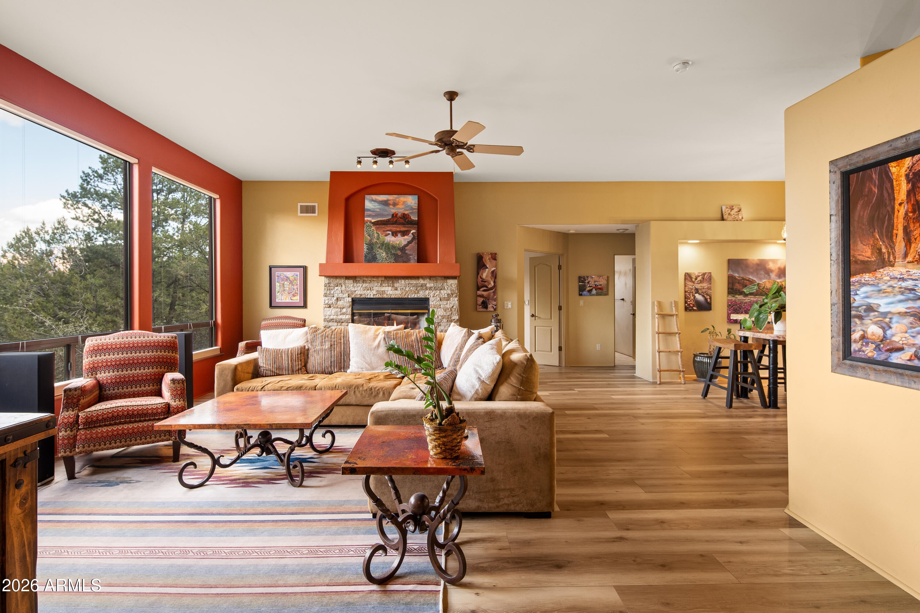 You pour your coffee and the red rocks are already there. Visible from inside, from the kitchen, the living room, the back door youll open every morning without planning to. Savor the panoramic sweep of red rocks and mountains from the backyard across nearly an acre of natural desert. An outdoor space where evenings go slowly and nobody minds. A morning hike becomes a decision you make after the coffee, not before the alarm. The trails are that close. The silence catches people off guard. They stand in the backyard for a minute and go quiet themselves. The town is nearby without crowding you, and the rhythm of daily life here has a quality thats hard to explain until youre inside it. The home opens completely to the landscape. Some places change how your day feels. This is one of them.