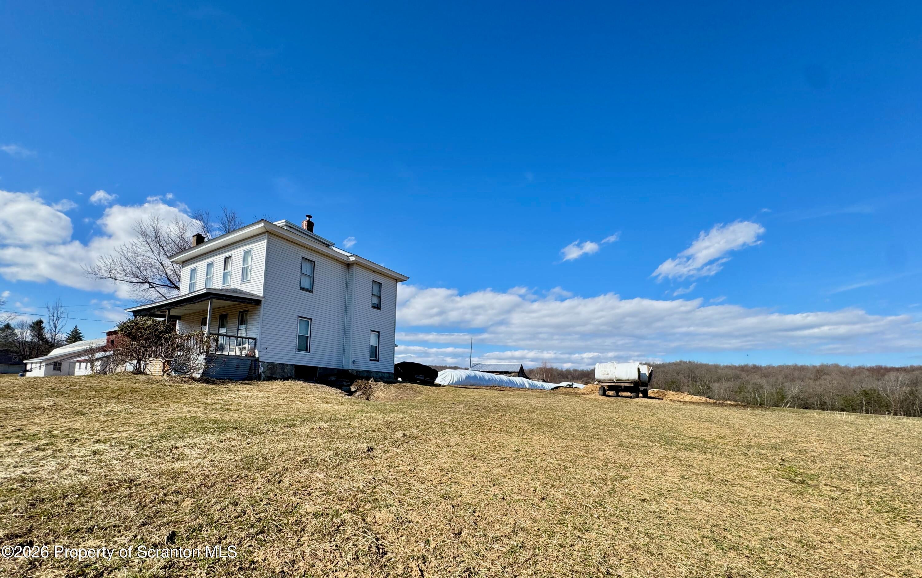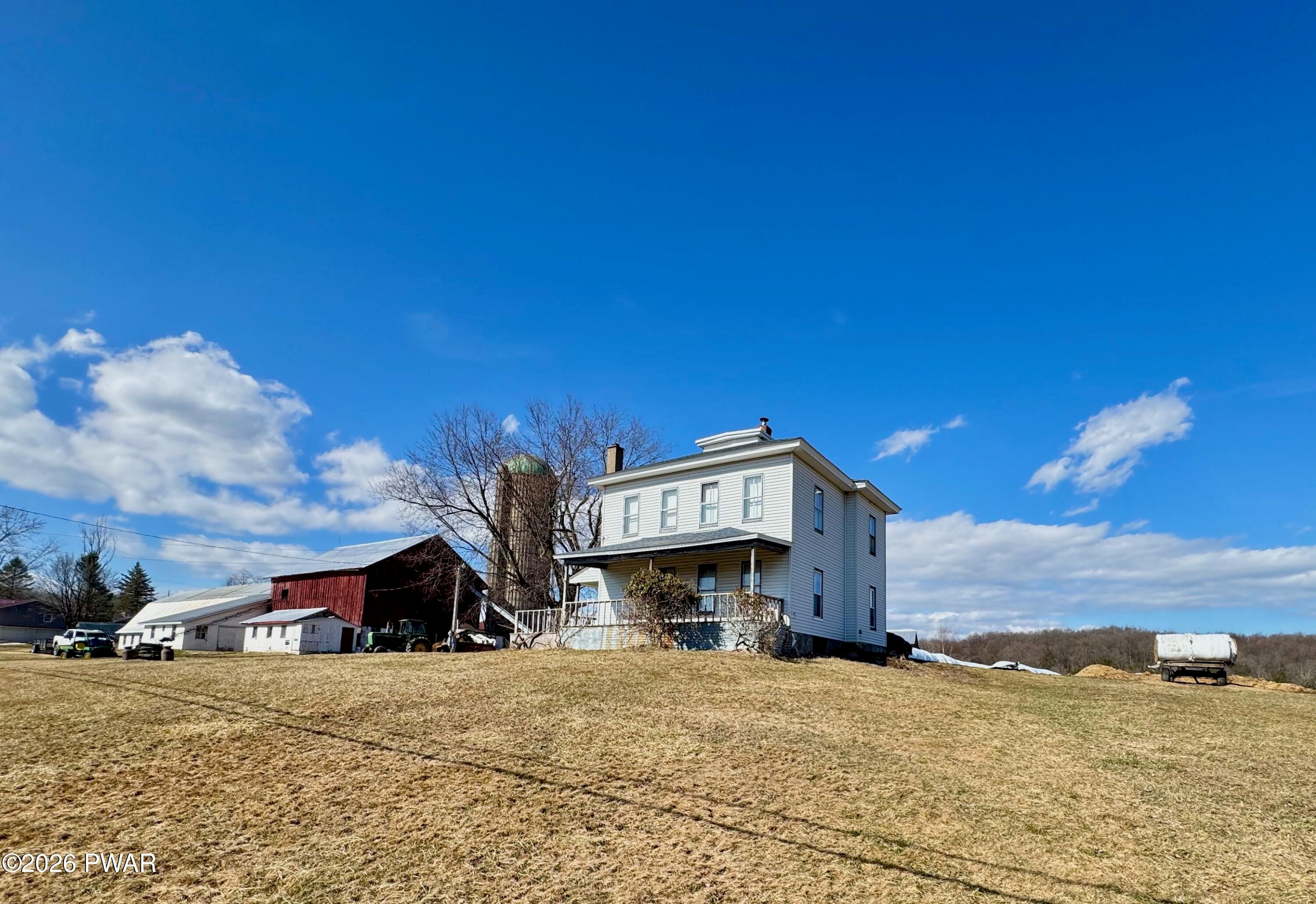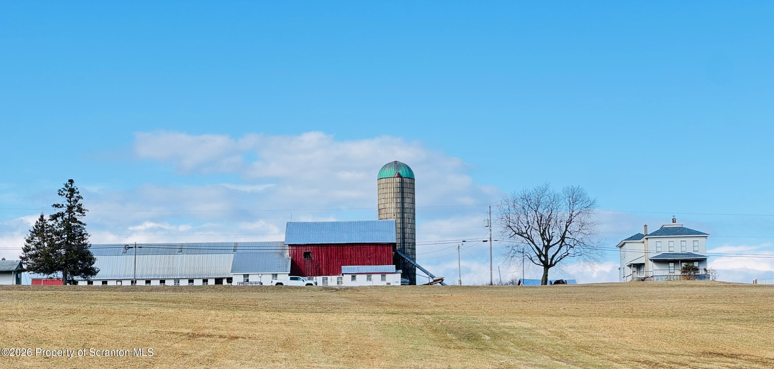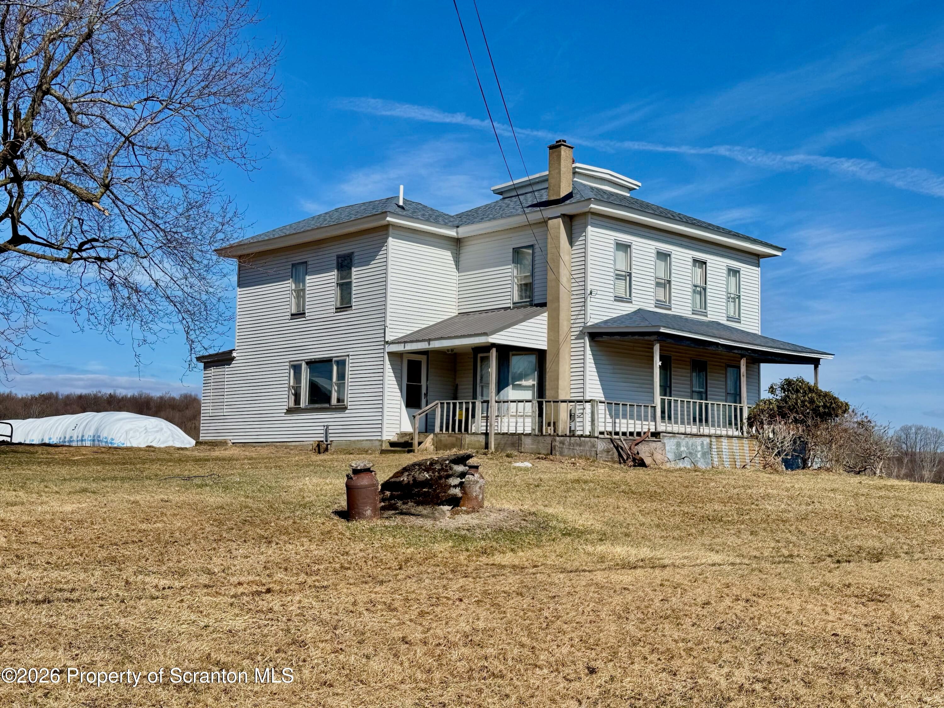 Spanning 180 acres in Wayne County, this farmstead offers gently rolling hayfields, mature woods, multiple barns, a classic farmhouse, and distant pastoral views. Paths wind throughout the property, and a small pond adds to the peaceful rural setting. At the heart of the property sits a classic early-1900s farmhouse featuring 4 bedrooms and 2 bathrooms along with a spacious eat-in kitchen, sprawling living room, and a convenient mudroom thats perfect for everyday life. Outbuildings include 38 x 154 dairy barn, a 4,200 sq ft pole barn used for heifers, a huge machinery shed, multiple other outbuildings, and fenced pastures, providing everything needed for an active agricultural operation. A second home (cottage) on the property offers additional possibilities with some restoration. The acreage also includes a perfect blend for the sportsman and nature lover with abundant wildlife, offering excellent hunting and recreational opportunities. With room for farm animals, gardening, homesteading, or continuing a working farm operation, the possibilities (and views) here are endless. A truly special farm property in Pleasant Mount.