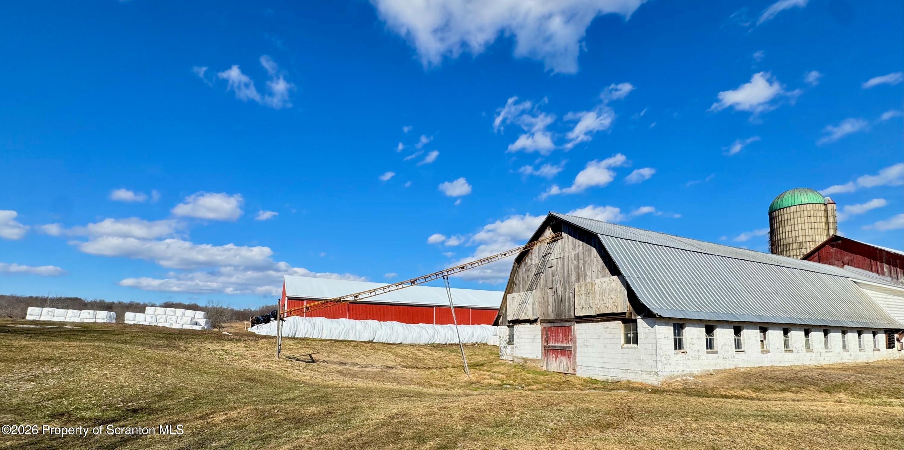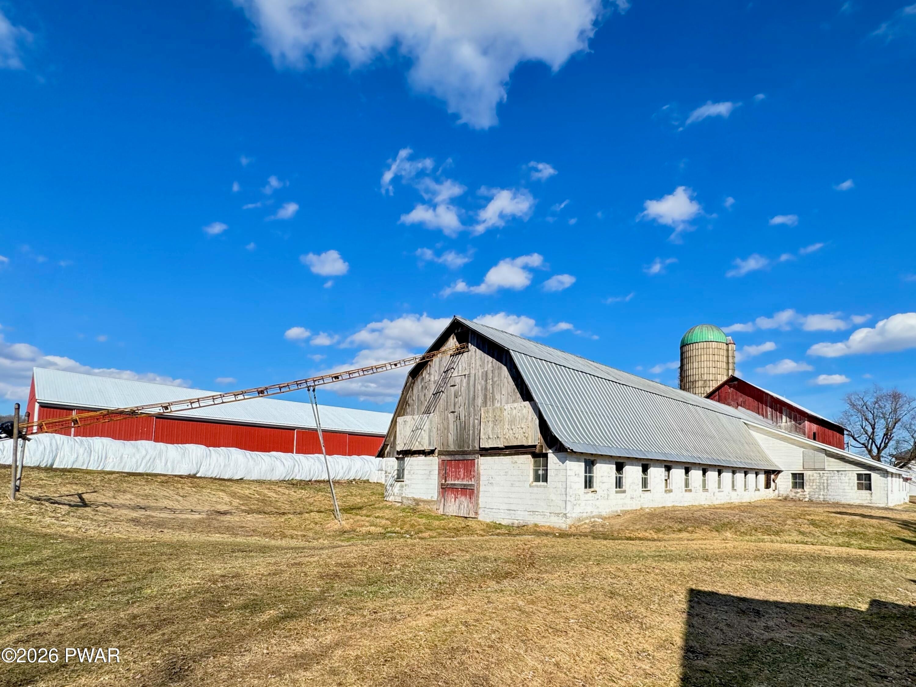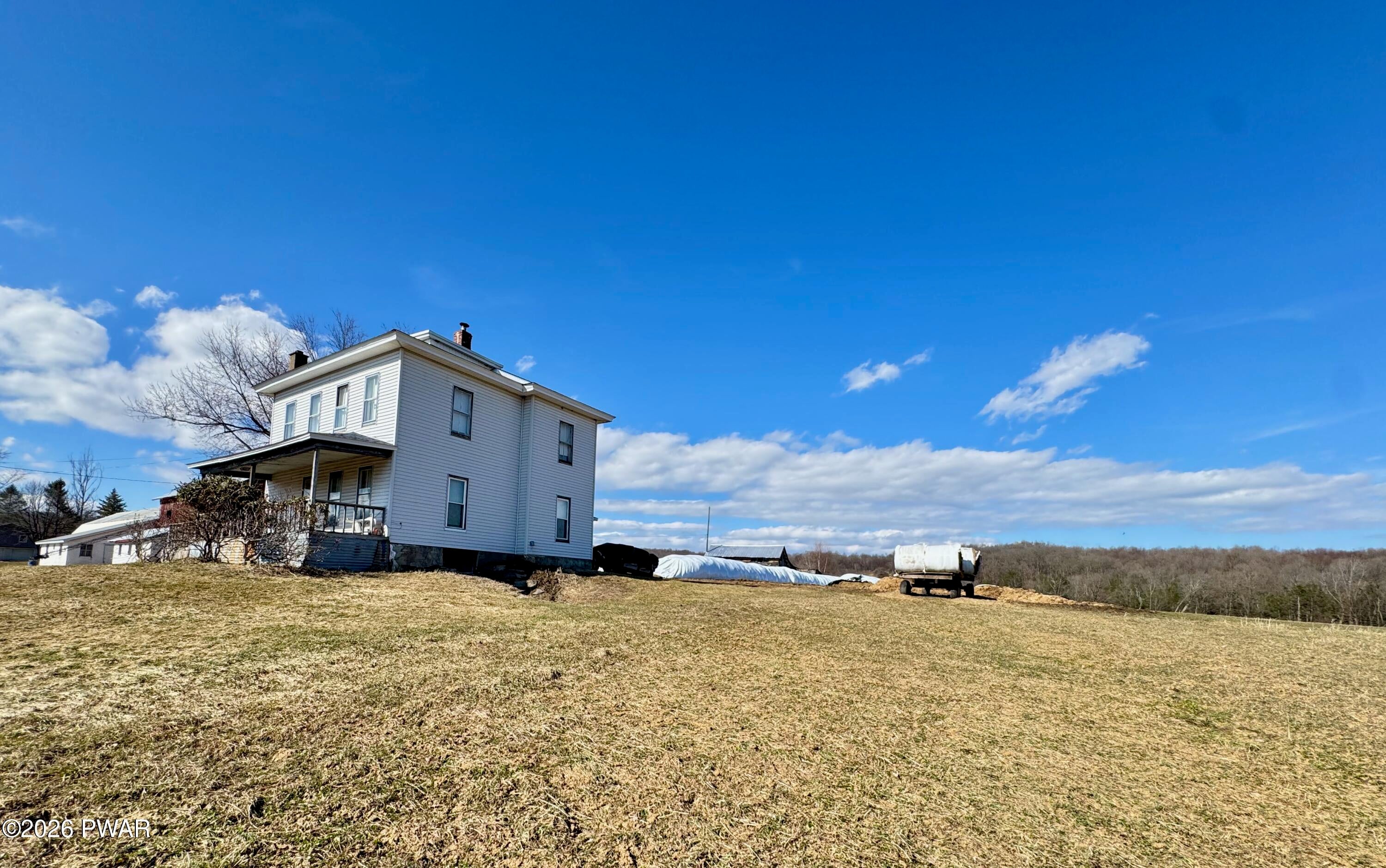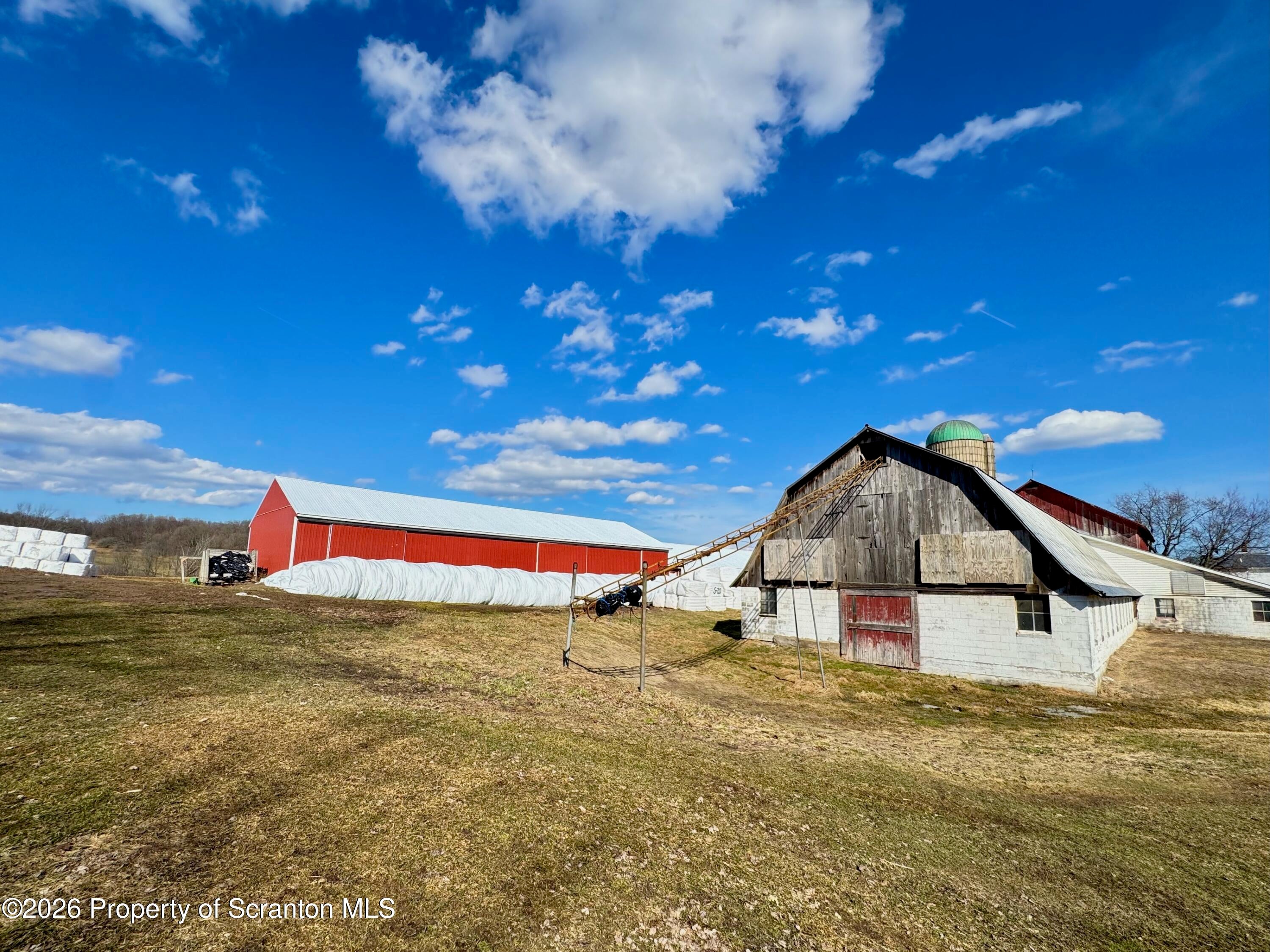 Spanning 180 acres in Wayne County, this farmstead offers gently rolling hayfields, mature woods, multiple barns, a classic farmhouse, and distant pastoral views. Paths wind throughout the property, and a small pond adds to the peaceful rural setting. At the heart of the property sits a classic early-1900s farmhouse featuring 4 bedrooms and 2 bathrooms along with a spacious eat-in kitchen, sprawling living room, and a convenient mudroom thats perfect for everyday life. Outbuildings include 38 x 154 dairy barn, a 4,200 sq ft pole barn used for heifers, a huge machinery shed, multiple other outbuildings, and fenced pastures, providing everything needed for an active agricultural operation. A second home (cottage) on the property offers additional possibilities with some restoration. The acreage also includes a perfect blend for the sportsman and nature lover with abundant wildlife, offering excellent hunting and recreational opportunities. With room for farm animals, gardening, homesteading, or continuing a working farm operation, the possibilities (and views) here are endless. A truly special farm property in Pleasant Mount.