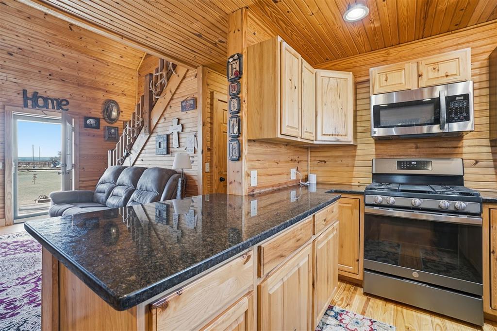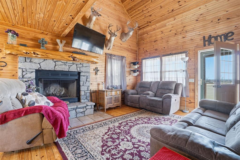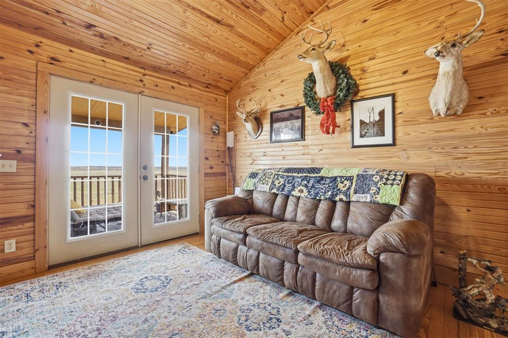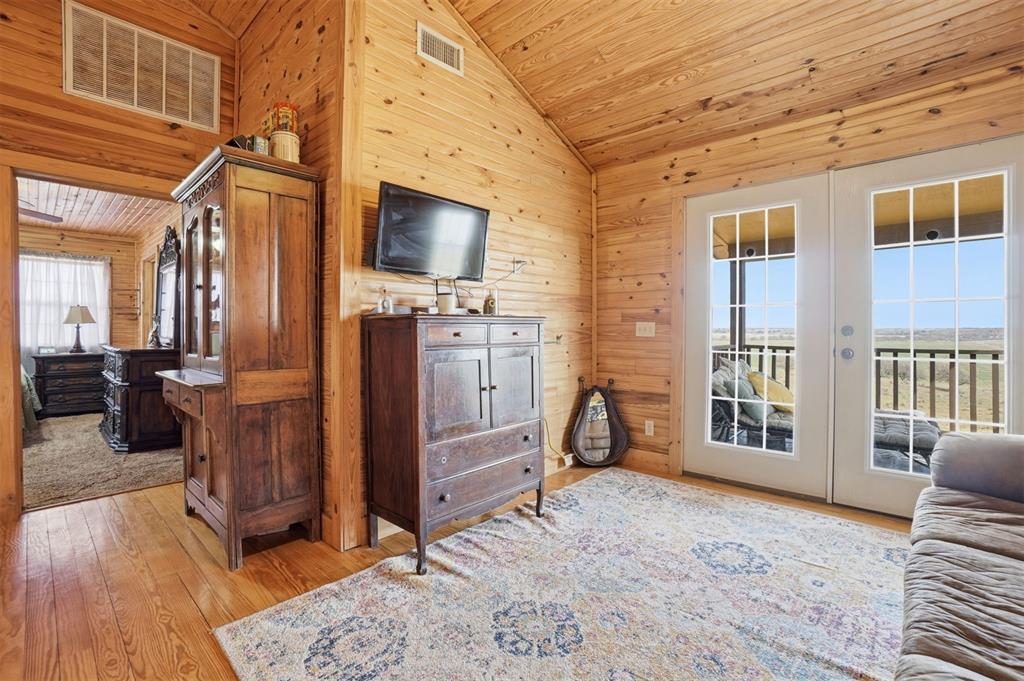 460 Acres MOL Hunting, Ranch & Recreational Property. 460 Acres MOL with productive farmland, Bluestem pasture, timber, and excellent hunting. Land includes approx. 240 acres cropland, 95 acres Bluestem pasture, and 125 acres woodlands. A river runs through the property with 3 seasonal ponds, creating outstanding habitat for deer, hogs, and birds. The 2 bed, 2 bath home built in 2012 offers approx. 1,400 sq ft and features knotty pine walls and ceilings throughout with no sheetrock. Open floor plan with living, dining, and kitchen. Living room has 16 ft ceiling and WB fireplace. Kitchen includes gas stove/oven, microwave, refrigerator and granite countertops. Downstairs: 1 bed, 1 bath, laundry. Upstairs: 1 bed, 1 bath, loft with French doors to wood deck overlooking the beautiful countryside. Additional improvements include whole-house generator, energy-efficient tilt-in windows, and 30 x 50 insulated detached 3-car garage/workshop with concrete floor. Property has electronic gate entry with pipe fencing from road to house and around house and corrals. Access is paved roads except the last 1/8 mile. Other improvements include 3 grain bins, 50 x 75 concrete slab ready for barn, water well for livestock (needs pump), and rural water to the home. A rare Southwest Oklahoma property combining farming, ranching, recreation, and exceptional hunting.