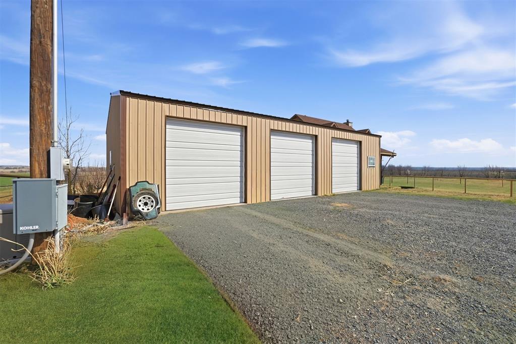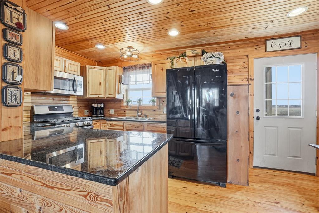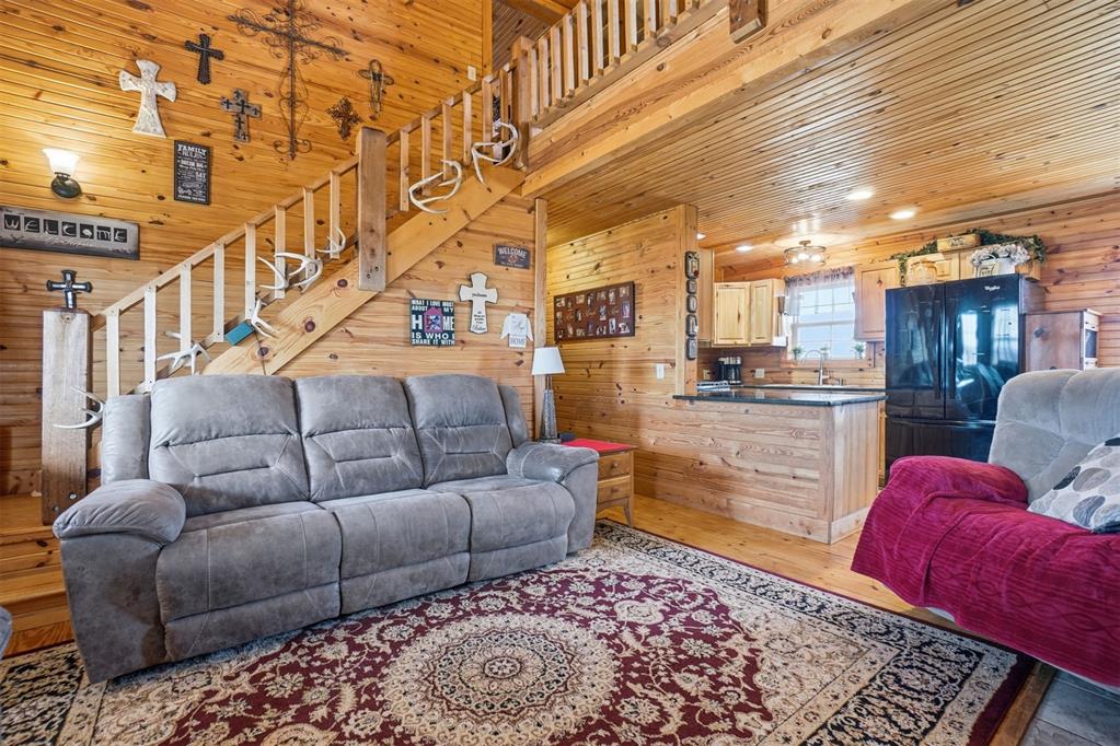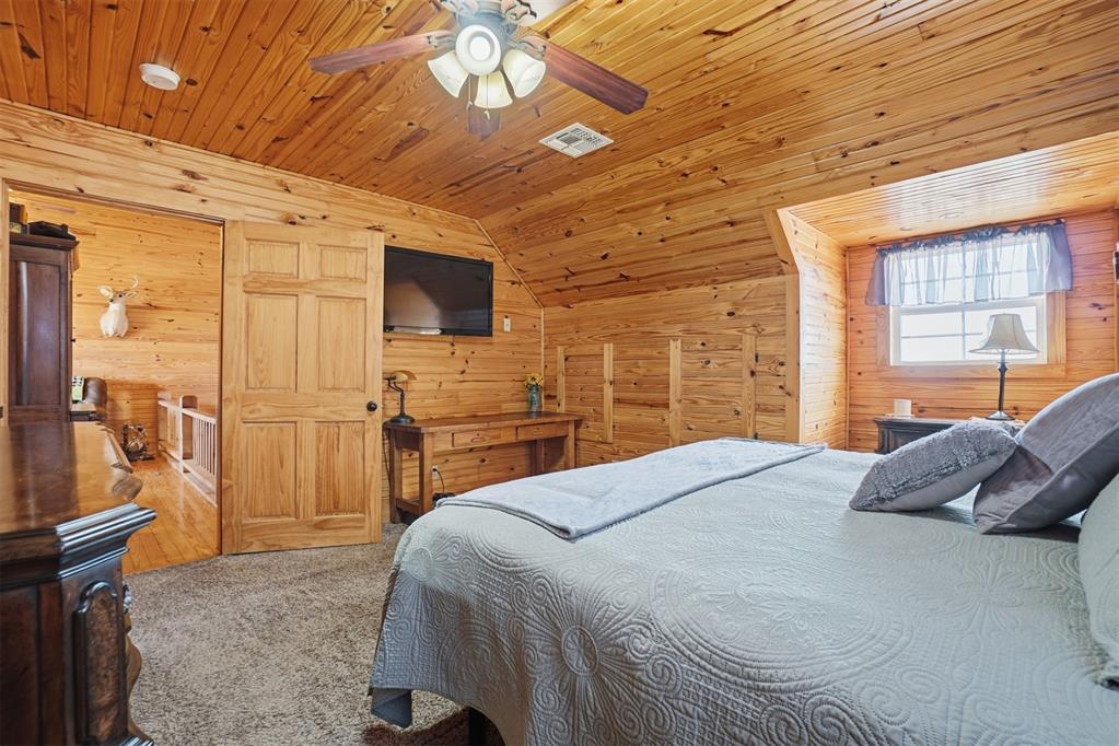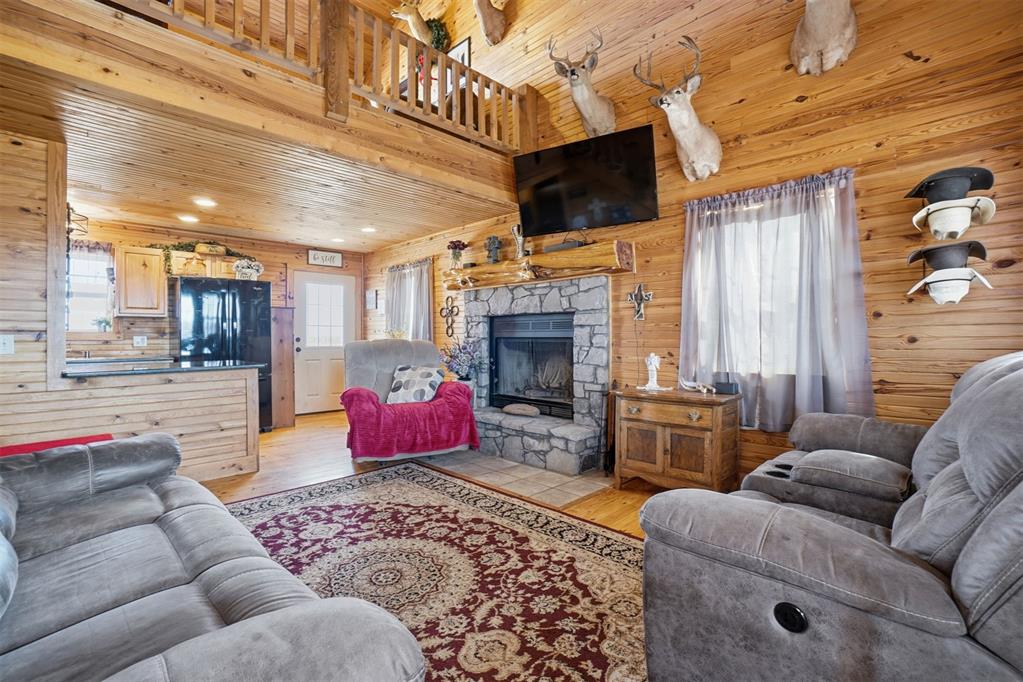 460 Acres MOL Hunting, Ranch & Recreational Property. 460 Acres MOL with productive farmland, Bluestem pasture, timber, and excellent hunting. Land includes approx. 240 acres cropland, 95 acres Bluestem pasture, and 125 acres woodlands. A river runs through the property with 3 seasonal ponds, creating outstanding habitat for deer, hogs, and birds. The 2 bed, 2 bath home built in 2012 offers approx. 1,400 sq ft and features knotty pine walls and ceilings throughout with no sheetrock. Open floor plan with living, dining, and kitchen. Living room has 16 ft ceiling and WB fireplace. Kitchen includes gas stove/oven, microwave, refrigerator and granite countertops. Downstairs: 1 bed, 1 bath, laundry. Upstairs: 1 bed, 1 bath, loft with French doors to wood deck overlooking the beautiful countryside. Additional improvements include whole-house generator, energy-efficient tilt-in windows, and 30 x 50 insulated detached 3-car garage/workshop with concrete floor. Property has electronic gate entry with pipe fencing from road to house and around house and corrals. Access is paved roads except the last 1/8 mile. Other improvements include 3 grain bins, 50 x 75 concrete slab ready for barn, water well for livestock (needs pump), and rural water to the home. A rare Southwest Oklahoma property combining farming, ranching, recreation, and exceptional hunting.