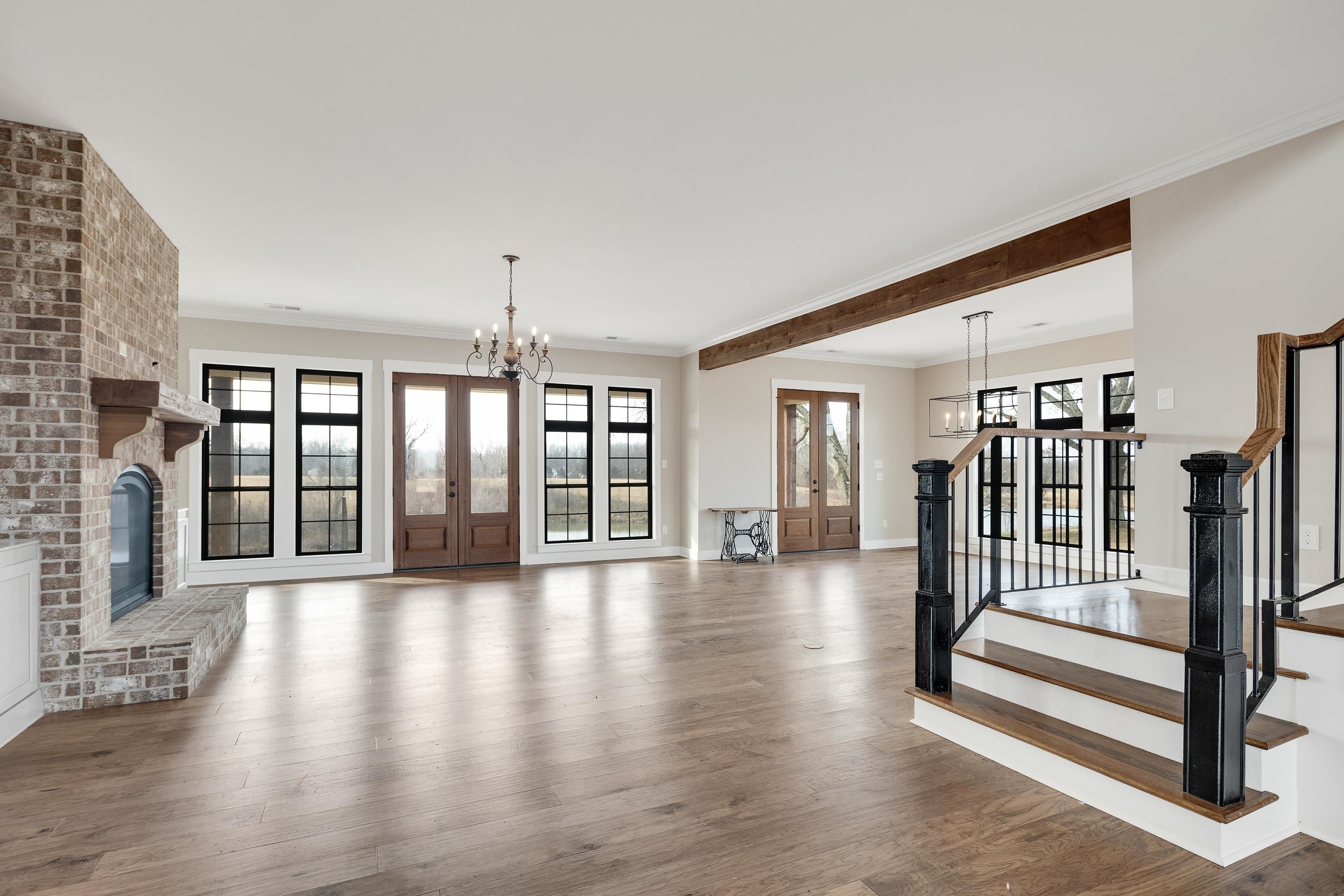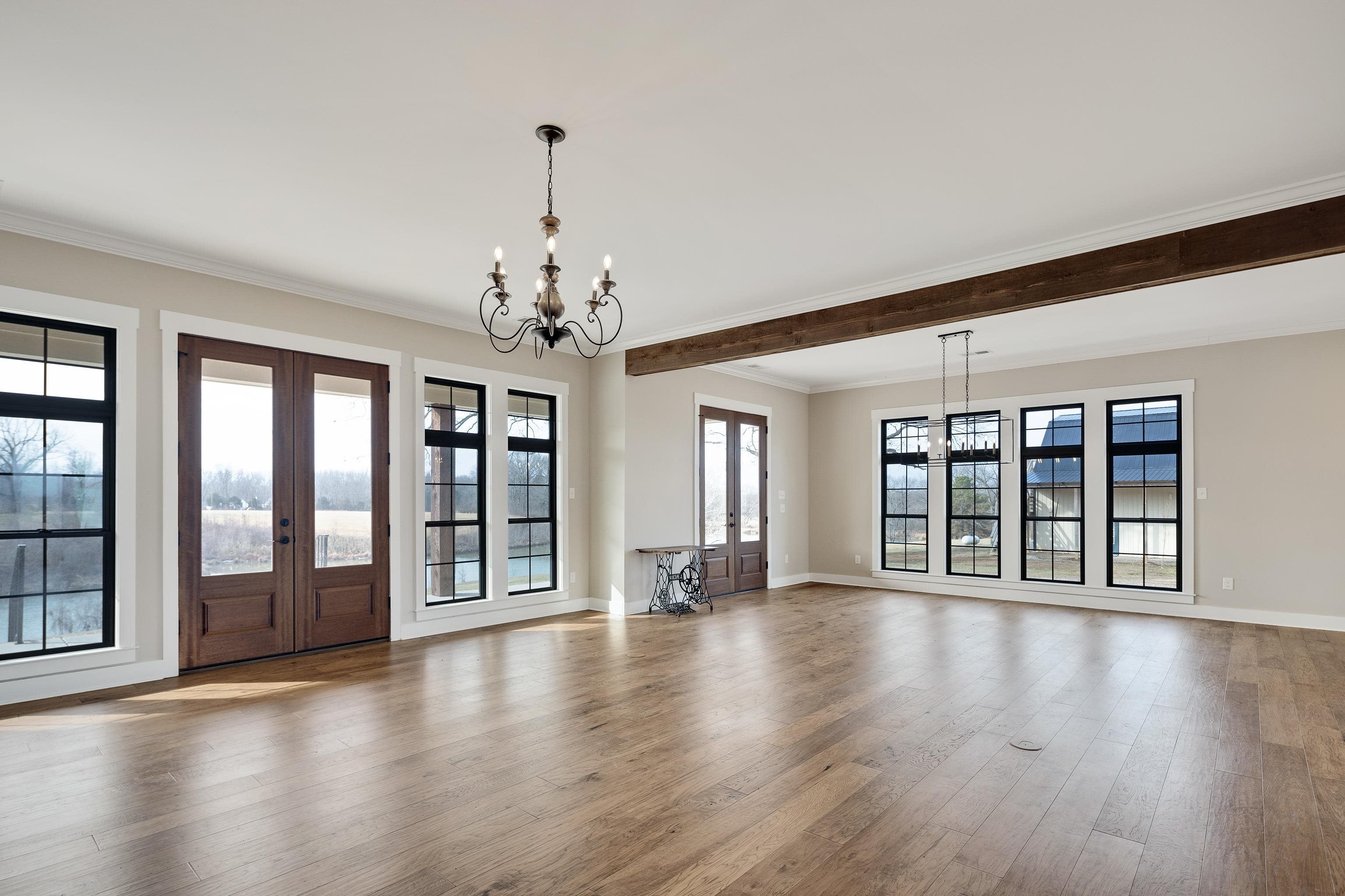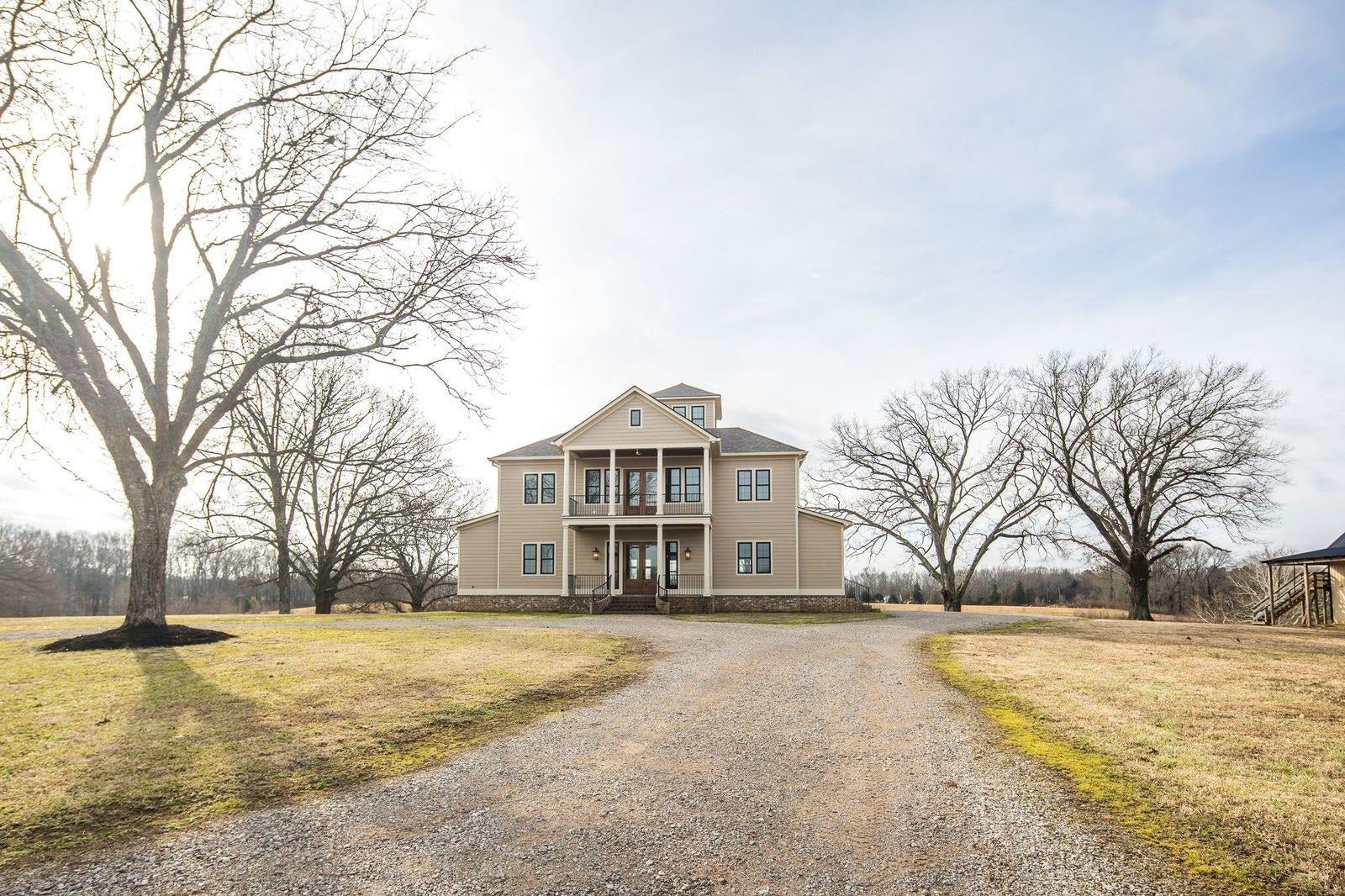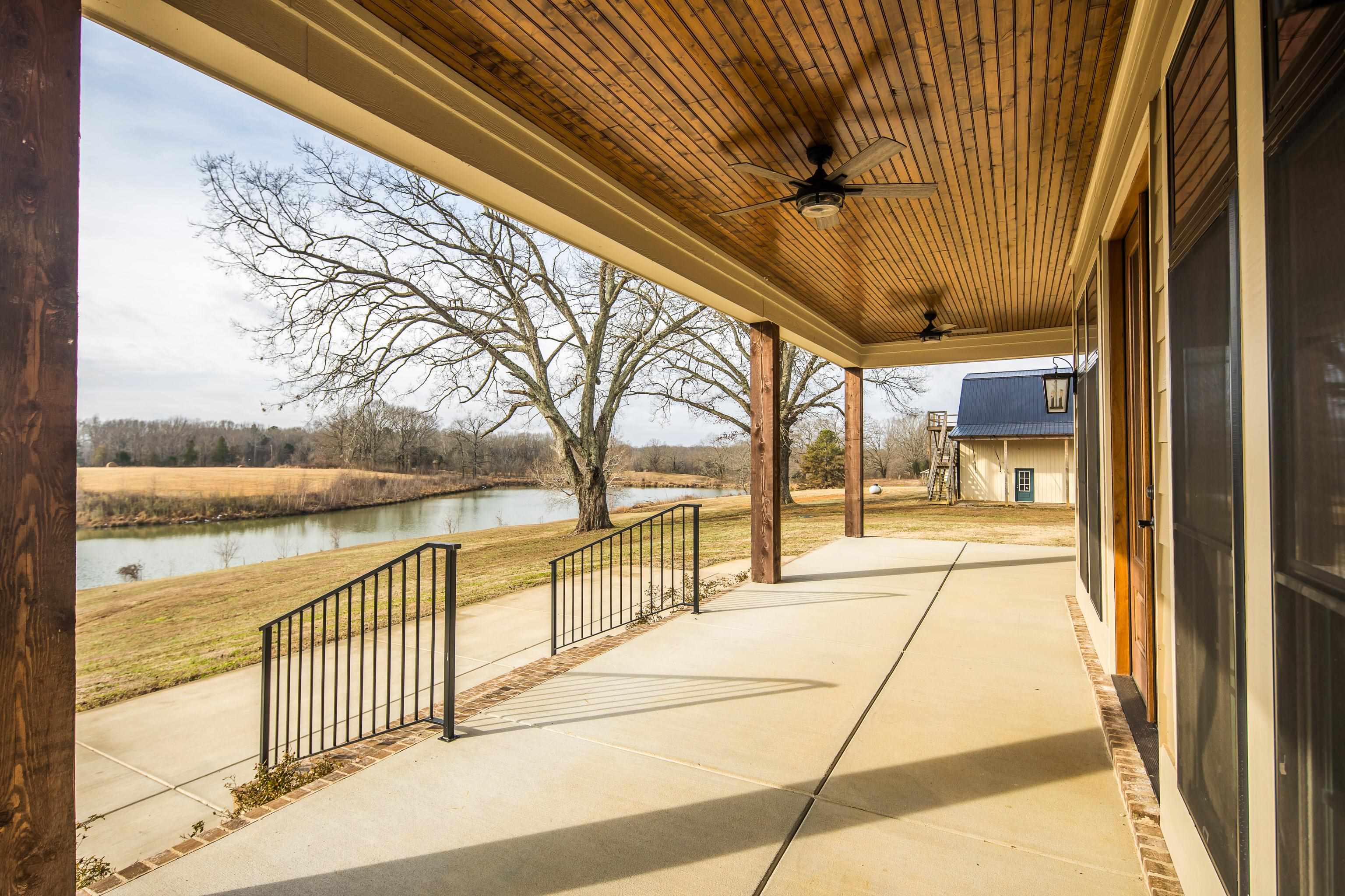 Luxurious 3-Story Modern Rustic Morris Construction Custom Build Strategically Situated Upon Gated & Fenced 23 Acres offering Breathtaking Views of Gently Rolling Pastures, Mature Oak Trees, Stocked Lake w/Fountain Pond and an Abundance of Wildlife. Matching front & back porches w/tongue-n-groove ceilings, solid cedar columns, & balconies.