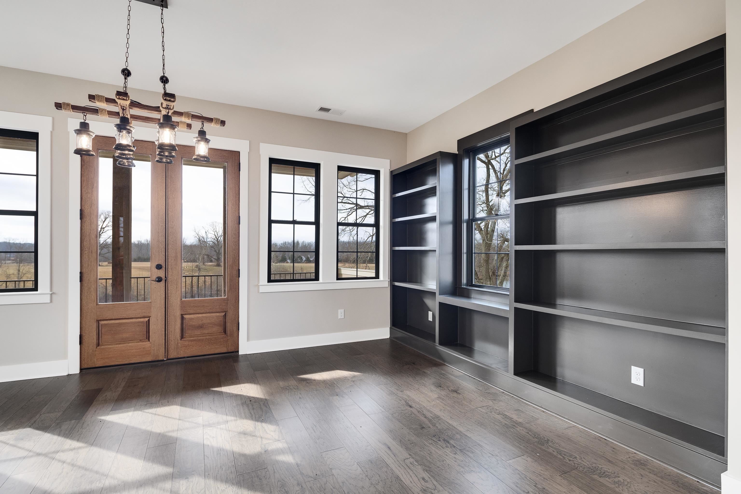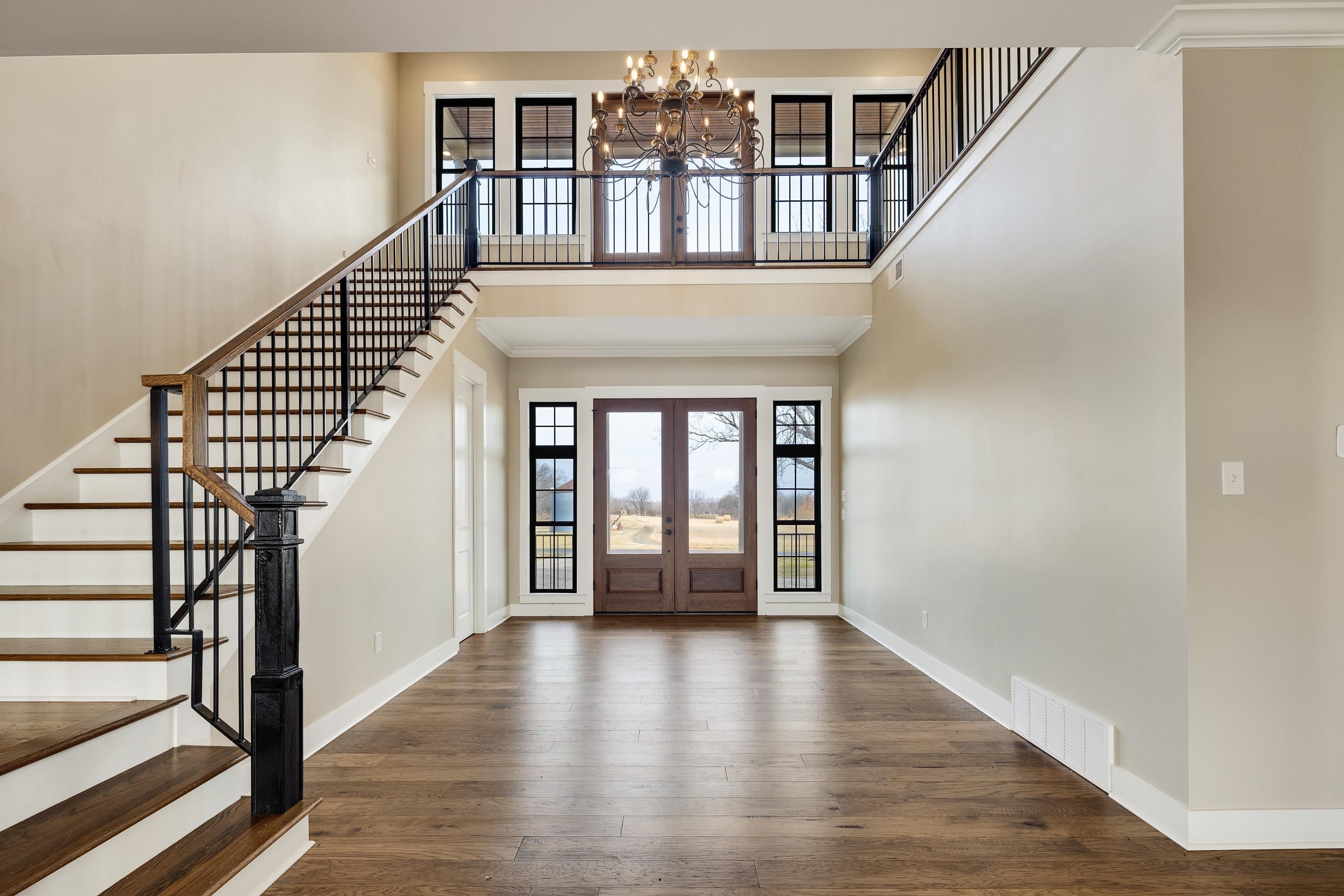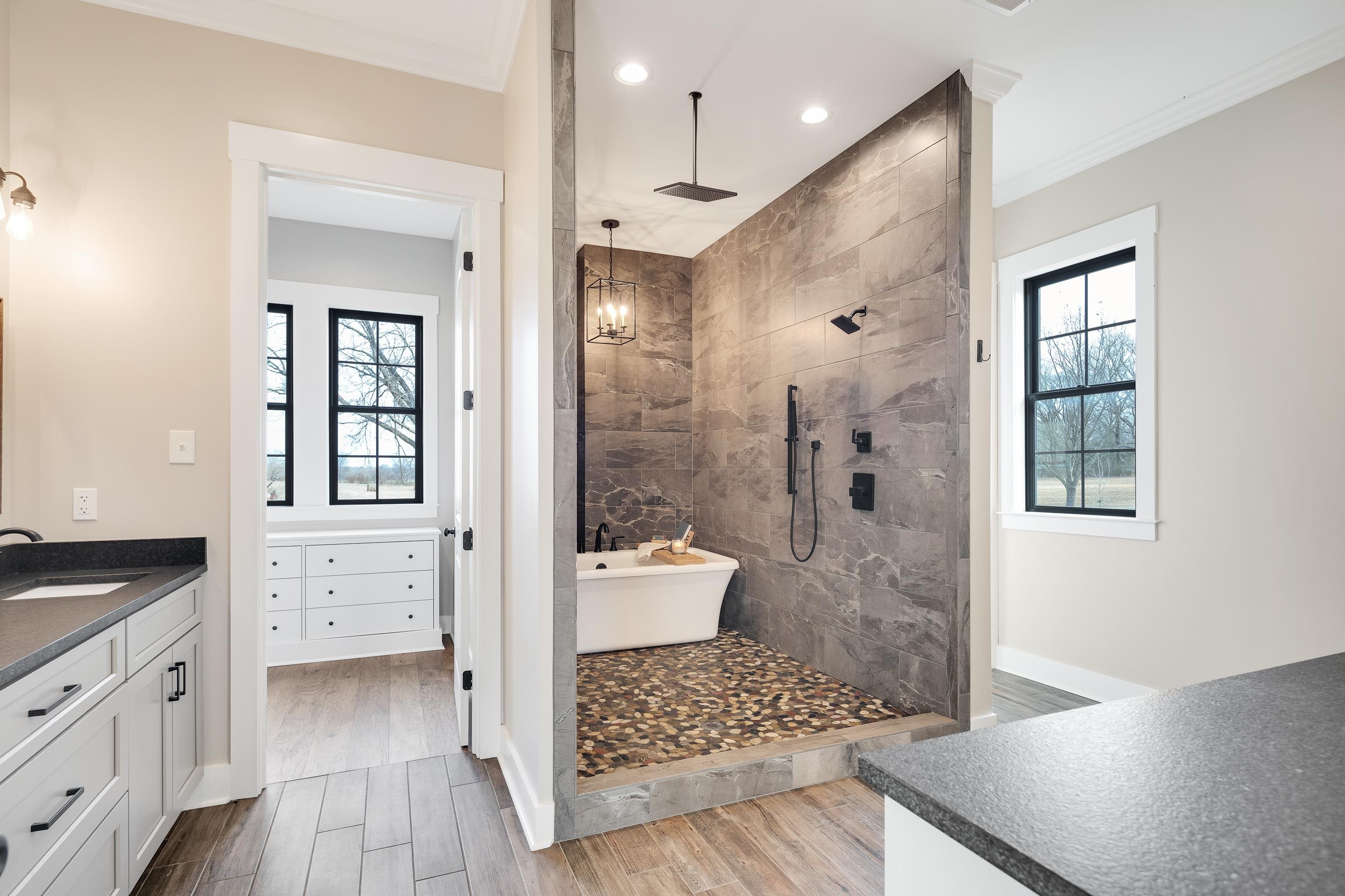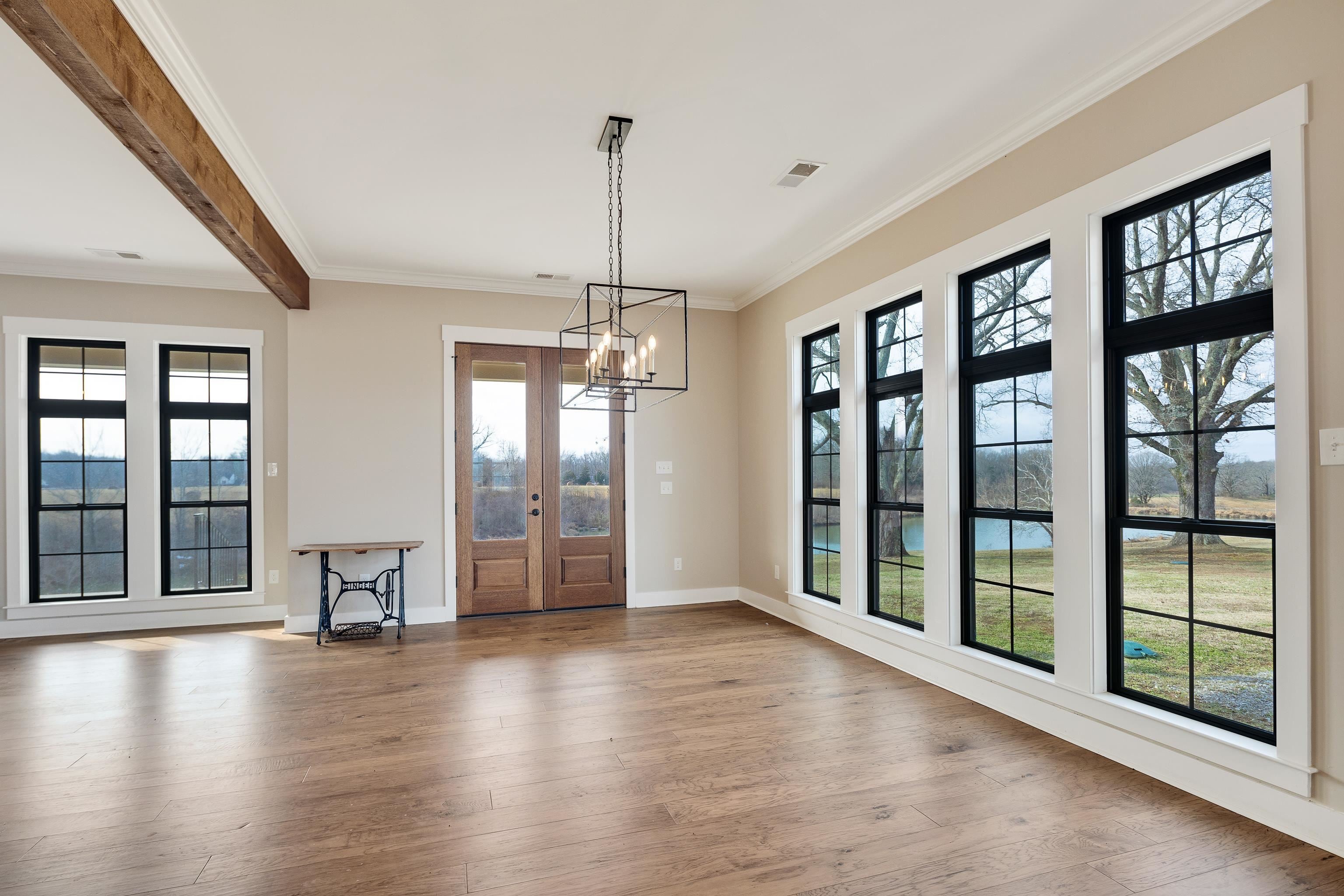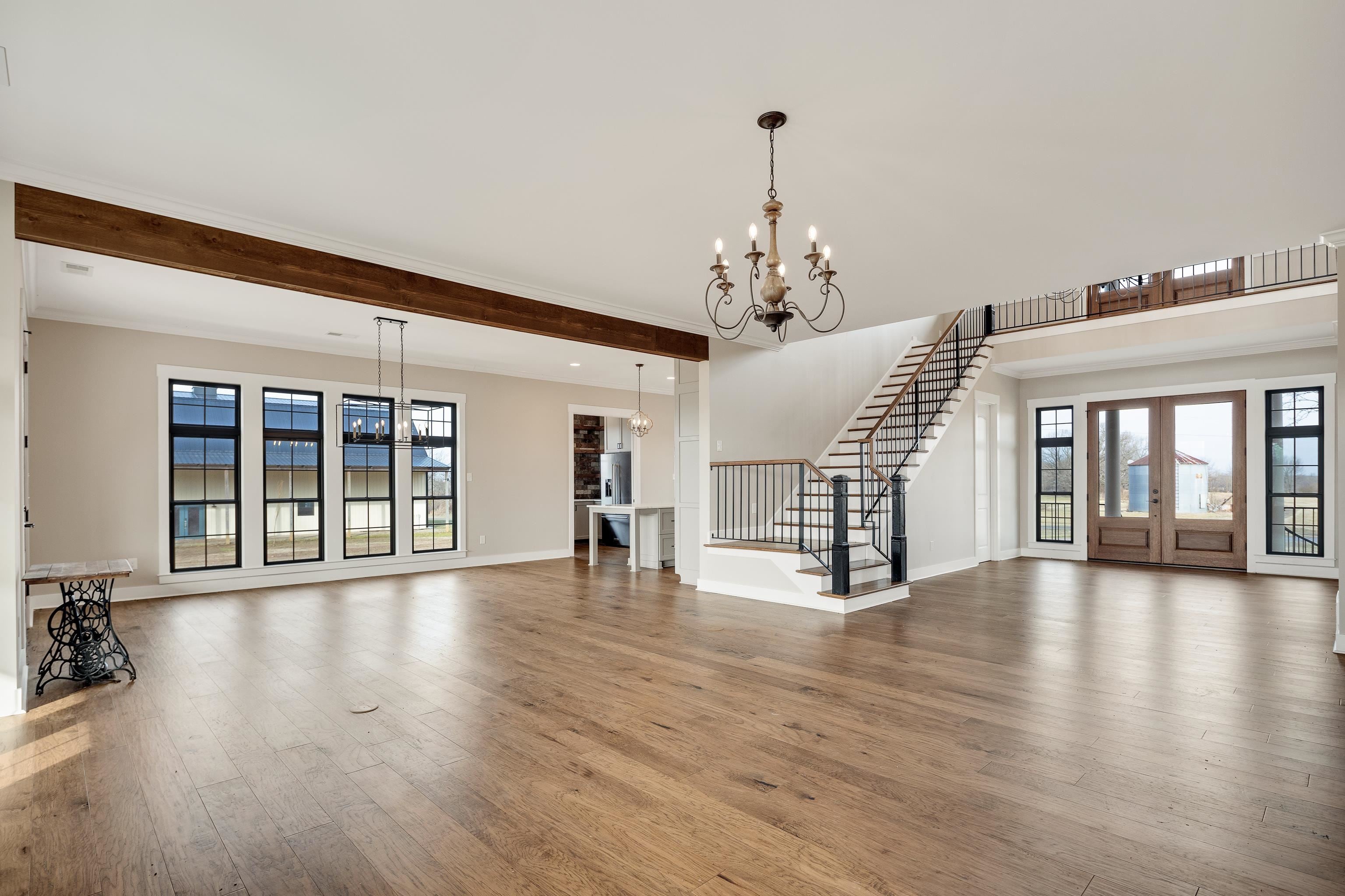 Luxurious 3-Story Modern Rustic Morris Construction Custom Build Strategically Situated Upon Gated & Fenced 23 Acres offering Breathtaking Views of Gently Rolling Pastures, Mature Oak Trees, Stocked Lake w/Fountain Pond and an Abundance of Wildlife. Matching front & back porches w/tongue-n-groove ceilings, solid cedar columns, & balconies.