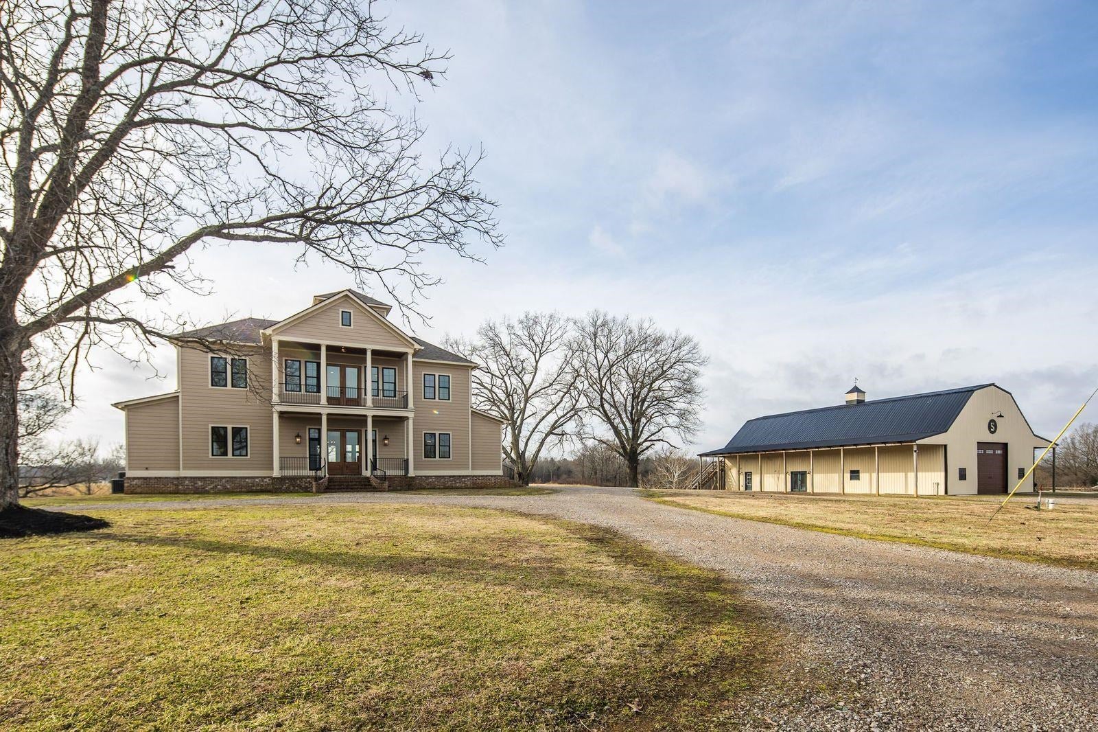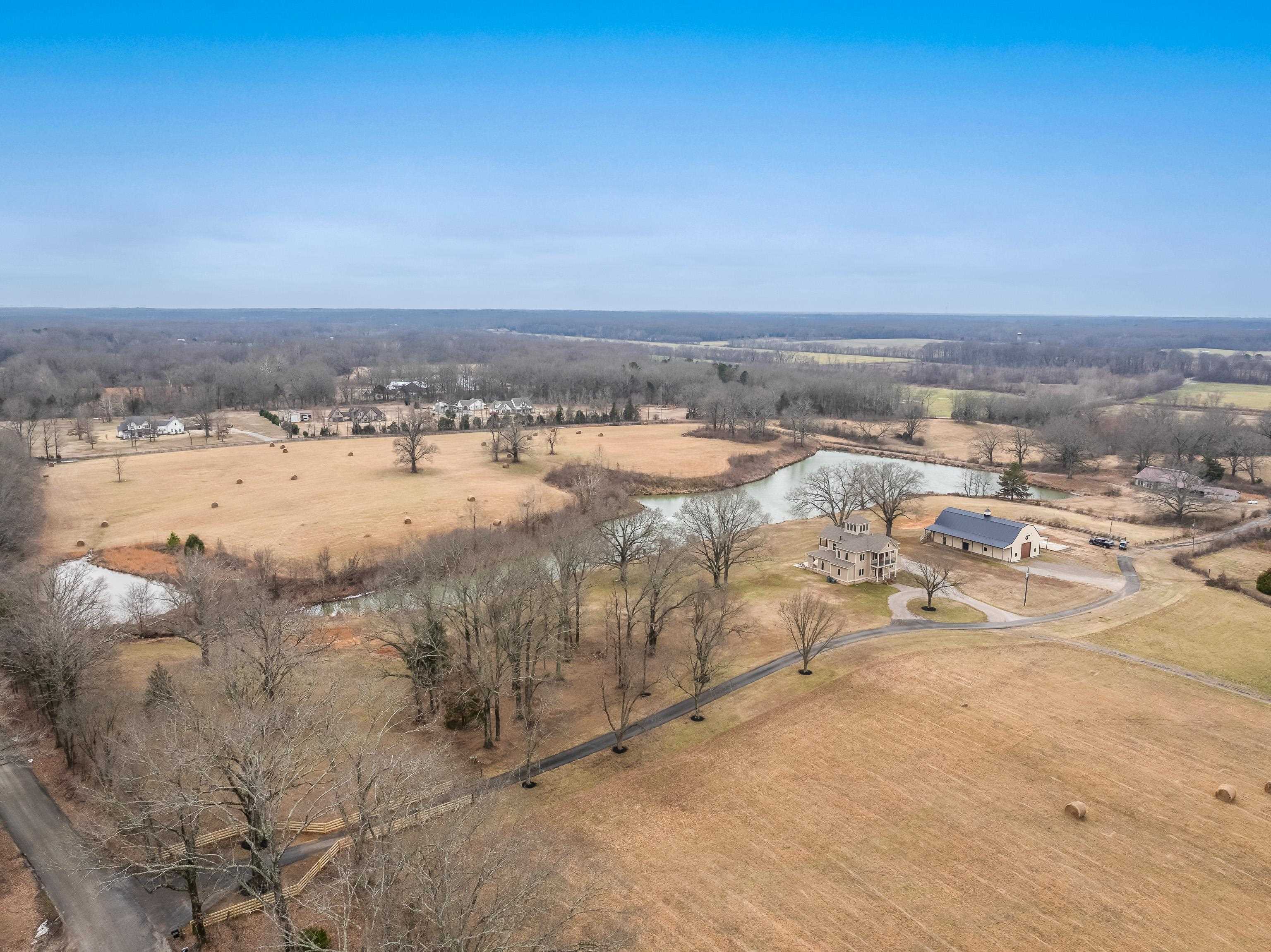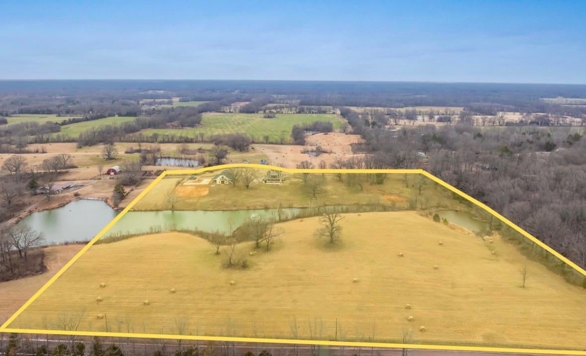Luxurious 3-Story Modern Rustic Morris Construction Custom Build Strategically Situated Upon Gated & Fenced 23 Acres offering Breathtaking Views of Gently Rolling Pastures, Mature Oak Trees, Stocked Lake w/Fountain Pond and an Abundance of Wildlife. Matching front & back porches w/tongue-n-groove ceilings, solid cedar columns, & balconies. Step inside to the Spectacular 2-story entry w/chandler, iron and wood railing staircase, and classic hardwood floors. Gorgeous Natural light throughout. Great RM w/built-ins & gas fireplace. Chefs kitchen w/island, gas cooktop, DBL ovens, butlers pantry w/beverage fridge, custom Byler Craft cabinets. Primary Suite/Ensuitepatio access, DBL vanity, wet roompebble floor, shower & stand alone tub, walk-in closet w/built-ins. Upstairs: 2BR/1BA, Office w/built-ins & balcony overlooking lake. Spiral staircase to Cupela. 40x80 Shopbay doors, lein-tos, 3-story living space w/3BR/1BA, laundry rm & dog wash station, and separate septic & propane gas.