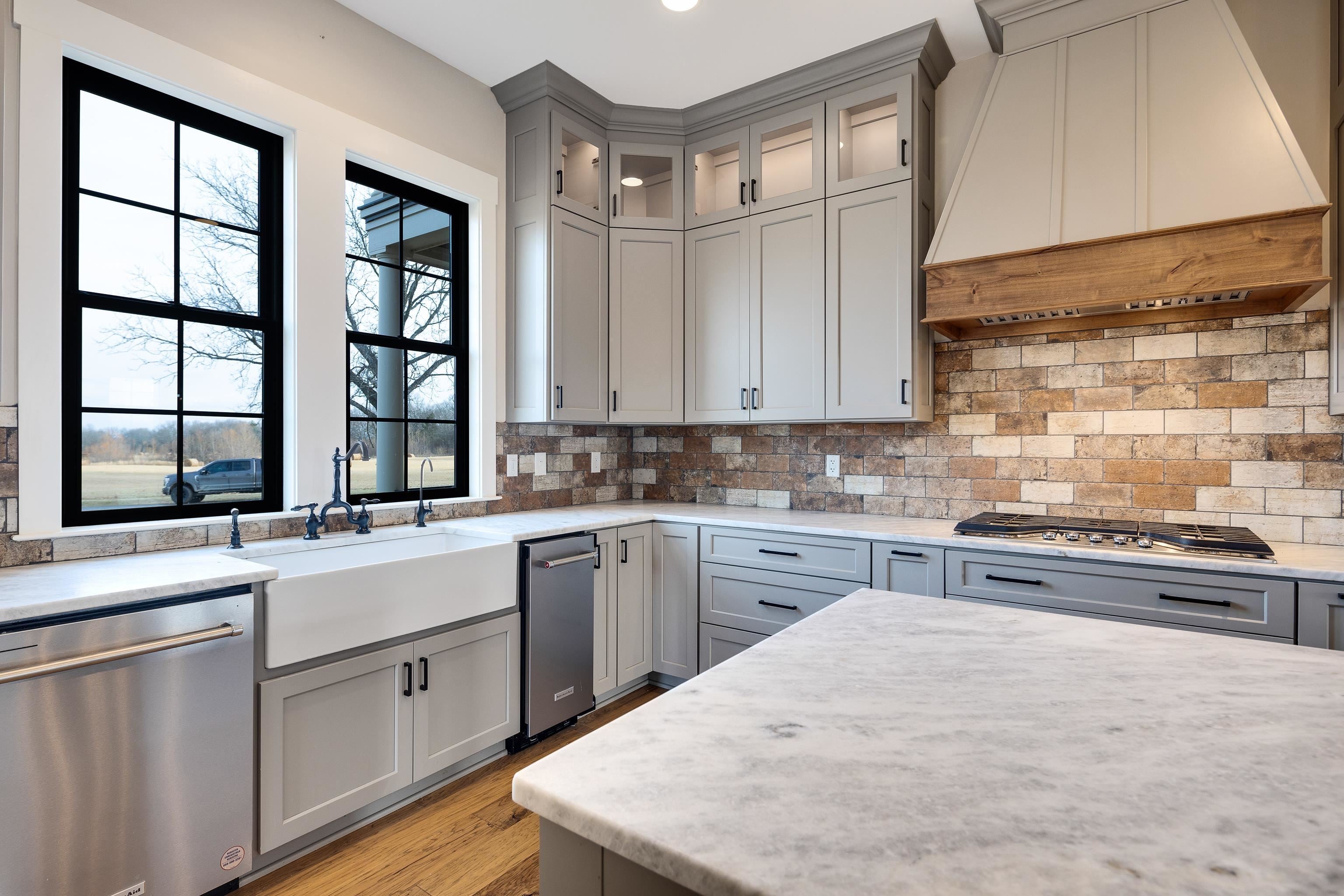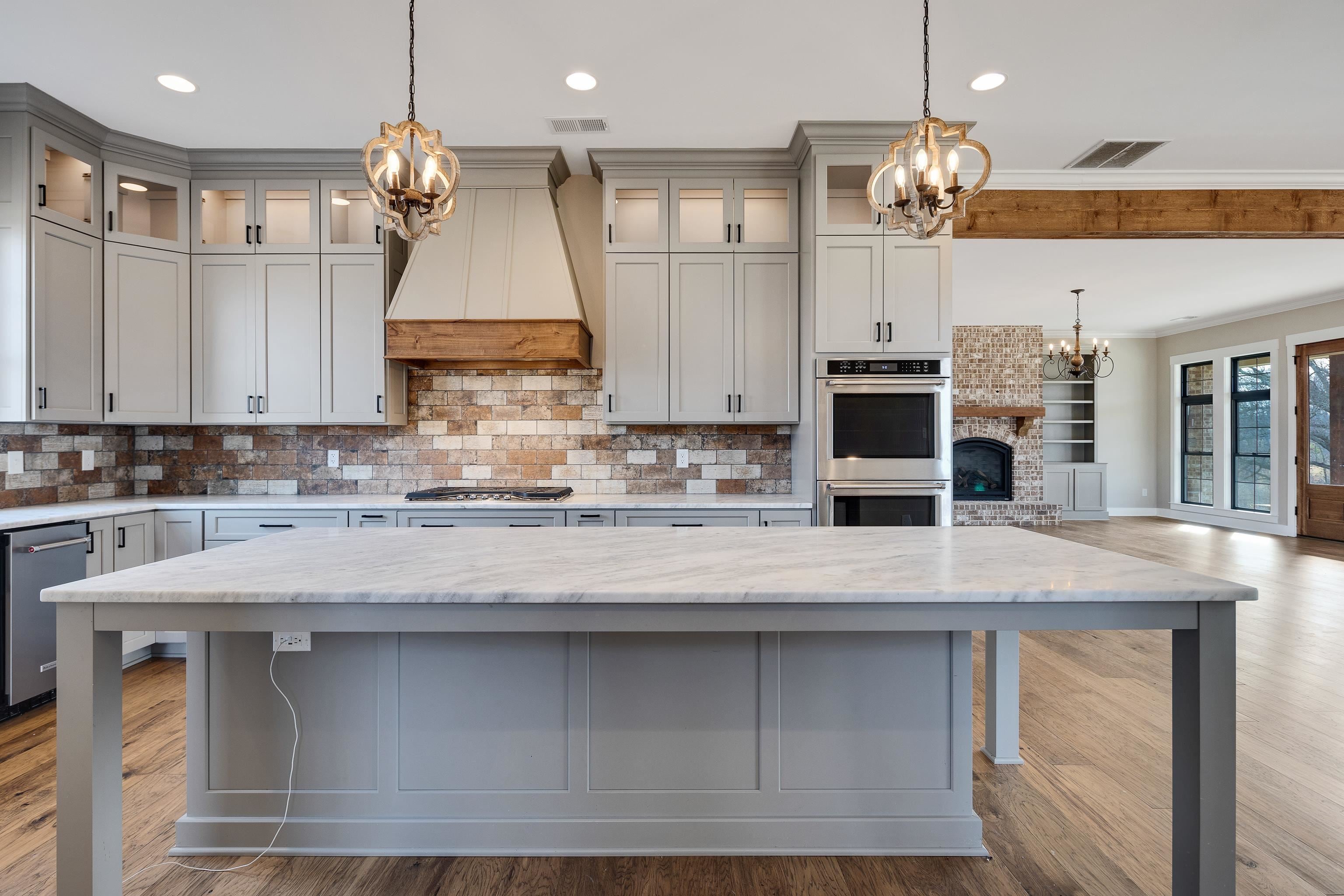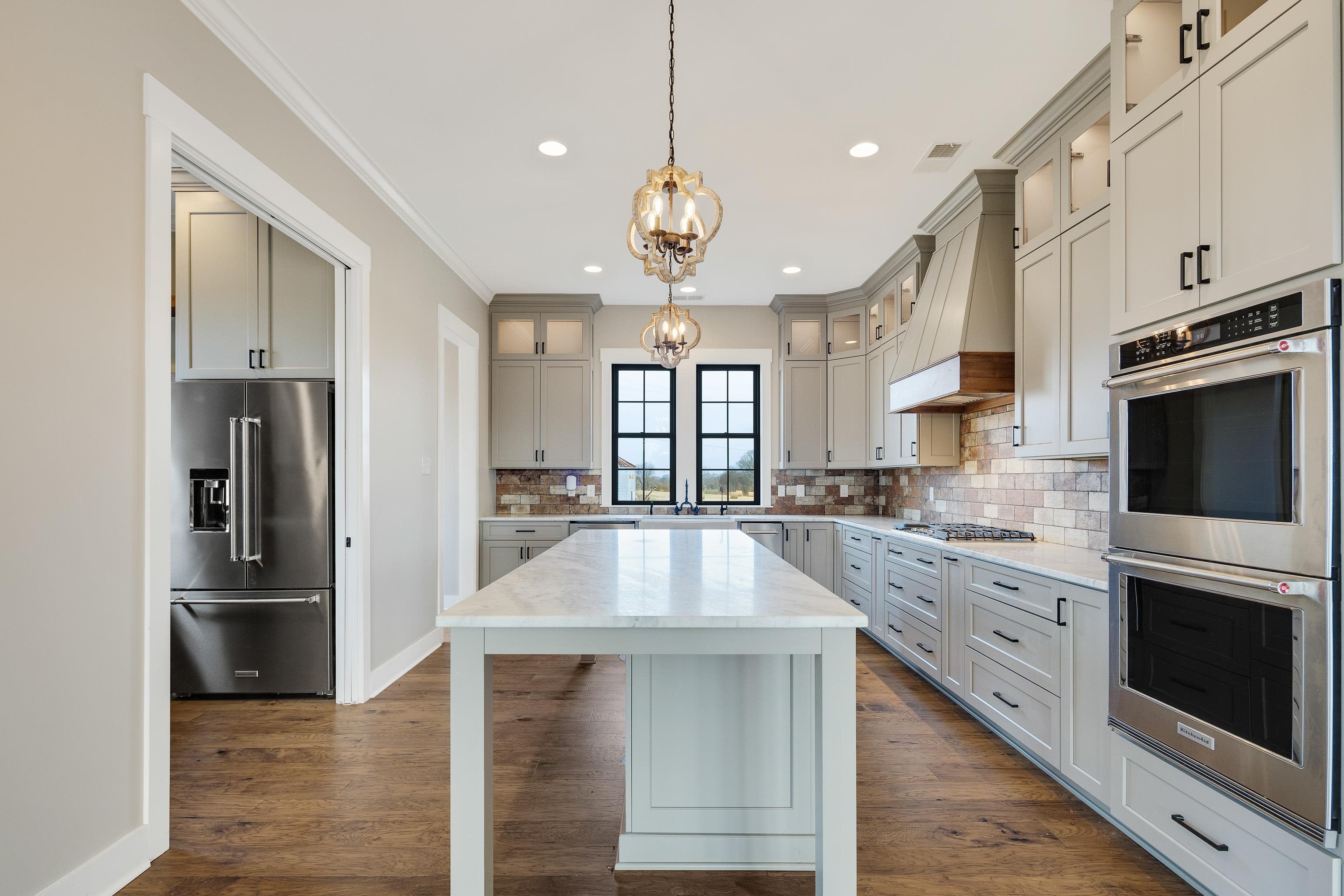 Luxurious 3-Story Modern Rustic Morris Construction Custom Build Strategically Situated Upon Gated & Fenced 23 Acres offering Breathtaking Views of Gently Rolling Pastures, Mature Oak Trees, Stocked Lake w/Fountain Pond and an Abundance of Wildlife. Matching front & back porches w/tongue-n-groove ceilings, solid cedar columns, & balconies. Step inside to the Spectacular 2-story entry w/chandler, iron and wood railing staircase, and classic hardwood floors. Gorgeous Natural light throughout. Great RM w/built-ins & gas fireplace. Chefs kitchen w/island, gas cooktop, DBL ovens, butlers pantry w/beverage fridge, custom Byler Craft cabinets. Primary Suite/Ensuitepatio access, DBL vanity, wet roompebble floor, shower & stand alone tub, walk-in closet w/built-ins. Upstairs: 2BR/1BA, Office w/built-ins & balcony overlooking lake. Spiral staircase to Cupela. 40x80 Shopbay doors, lein-tos, 3-story living space w/3BR/1BA, laundry rm & dog wash station, and separate septic & propane gas.