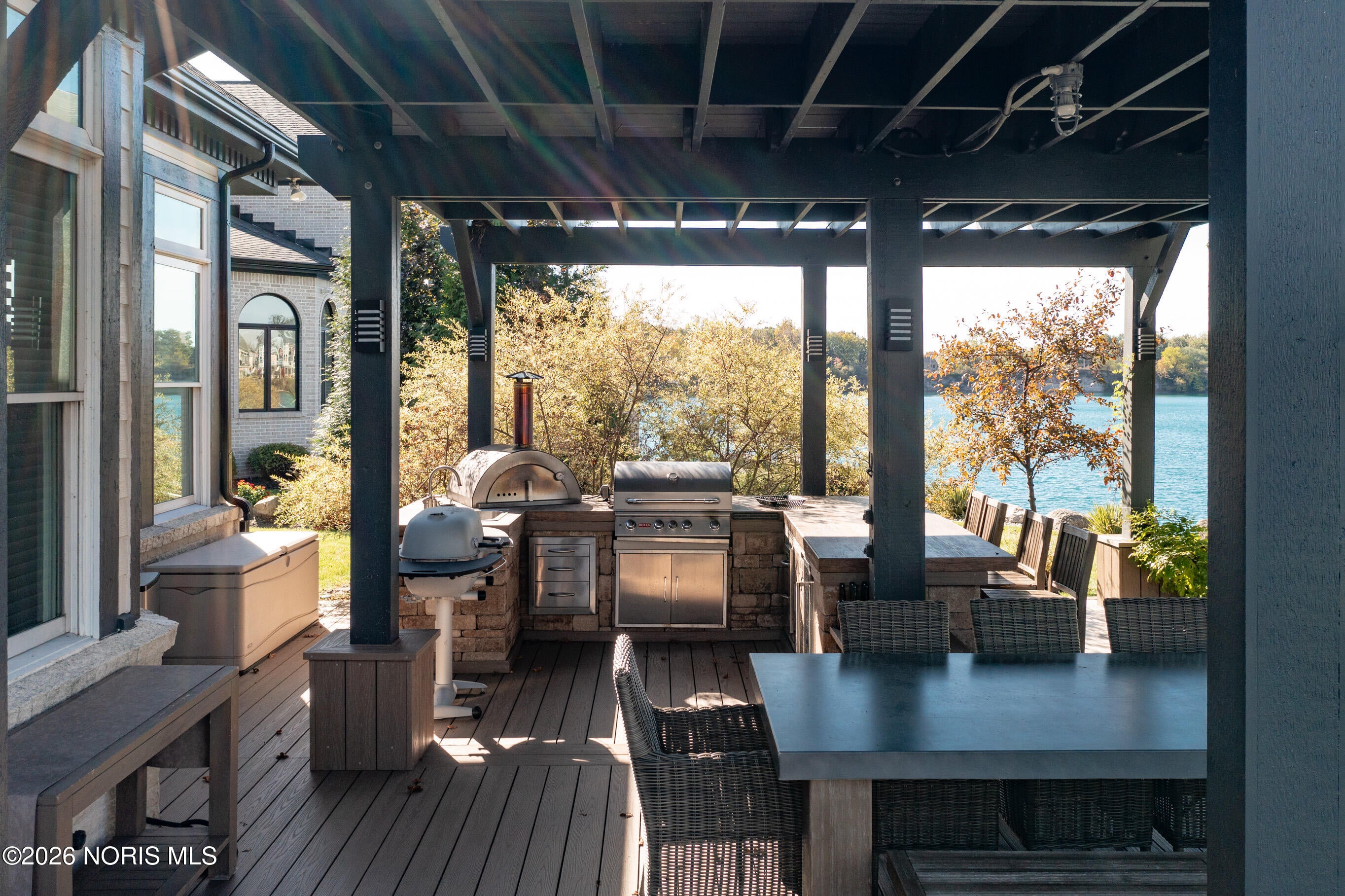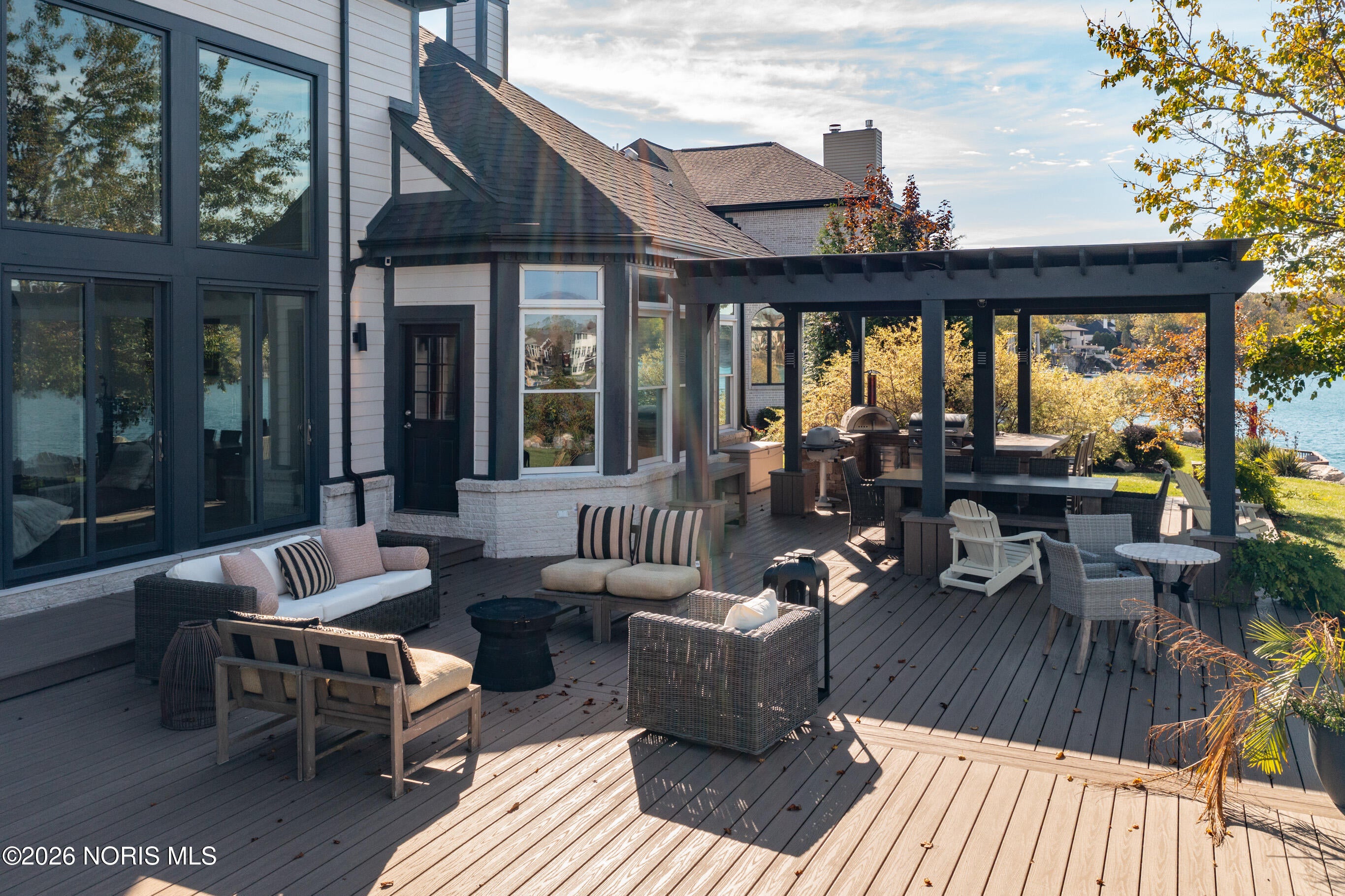 Experience LUXURY LIVING at its finest in this stunning WATERFRONT home in THE QUARRY, offering an exceptional blend of sophistication, comfort and breathtaking views! Upscale residence features FIVE bedrooms, SIX full and TWO half baths. Each bedroom is thoughtfully designed to provide privacy and elegance for family and guests alike. Soaring ceilings and expansive windows flood the home with natural light. The gourmet chefs kitchen boasts topof- the-line appliances, custom cabinetry, and a generous island perfect for entertaining. Lavish, main-level primary suite offers panoramic water views from the spa-like en-suite. Additional suite on the main level ideal for multi-generational living. Upper-level features 3 bedroom each with its own bath, media room, and large bonus room (possibly sixth bedroom). Finished lower level adds exceptional living space with two entertainment areas, fitness room, home theatre and full bath. Outside, enjoy resort-style living with multiple areas for entertainment, including a spacious deck with built-in kitchen, paver patio, green space and a private dock for water toys! With unmatched craftsmanship and an irresistible setting, this home offers the rare opportunity to live every day like youre on vacation!