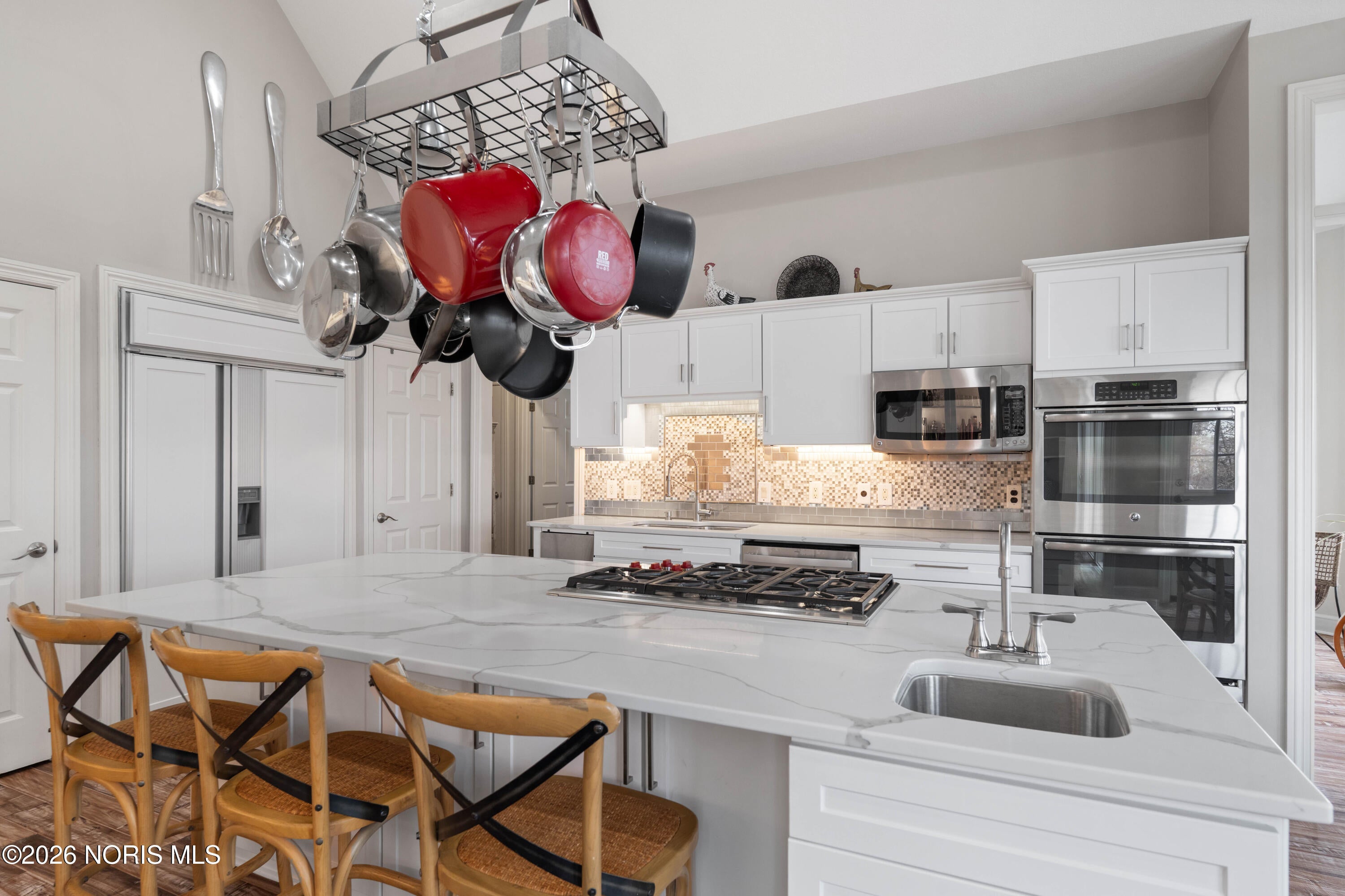 STYLISHLY UPDATED FOUR BEDROOM HOME IN COCHRANS CROSSING WITH FOUR EN SUITE BATHS, TWO HALF BATHS, AND THREE CAR GARAGE. THIS SPECTACULAR HOME EXUDES WARMTH AND ELEGANCE WITH BEAUTIFUL WOOD FLOORS, INTRICATE MILLWORK, TWO FIREPLACES, AND A SPARKLING POOL/SPA. NEW ROOF (2025), HVAC (2021), AND GENERATOR (2021). THE REMODELED KITCHEN FEATURES STUNNING DESIGNER LIGHTING OVER THE HUGE ISLAND, QUARTZ COUNTER TOPS, FARMHOUSE SINK, STAINLESS APPLIANCES, AND A SIX BURNER GAS COOKTOP. PRIMARY EN SUITE BATH DOWNSTAIRS FEATURES STANDING TUB, LARGE SHOWER AND DOUBLE SINKS. ONE OF THE EN SUITE BEDROOMS UPSTAIRS COULD BE SECOND PRIMARY. FRONT LANDSCAPING, CIRCULAR BRICK DRIVEWAY, AND EXTERIOR LIGHTING REPLACED IN 2022.