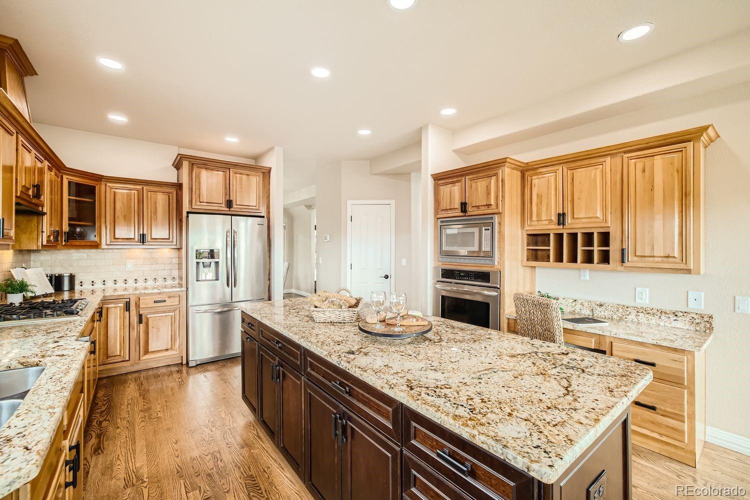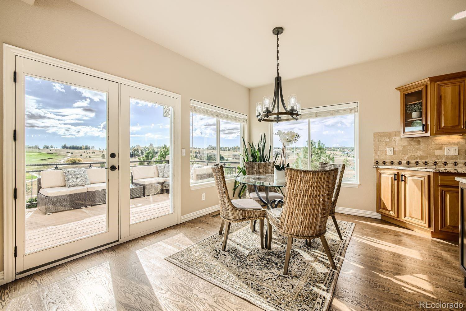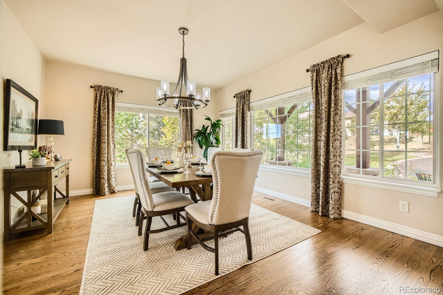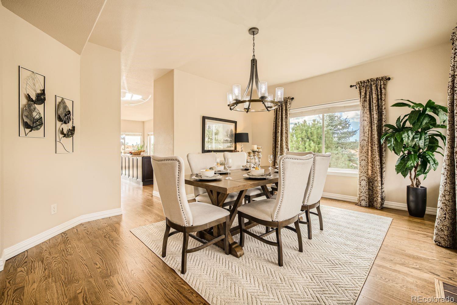 Enjoy this exceptional Colorado living experience on 2.5 acres with beautiful mountain views. Situated on the 18th tee box of Kings Deer Golf course lot in cul-de sac! Located in the highly sought after Kings Deer neighborhood and in the Lewis Palmer School District 38! Stunning views from every window. When you enter through the front door you will notice the impressive stair case & beautiful wood floors and lofty ceilings. This home has 6 bedrooms, 4 bathrooms and a 7-car garage! This gourmet kitchen is a chefs dream. Beautiful granite countertops & custom cherry wood cabinets, equipped with stainless steel appliances, a reverse Osmosis water system and plenty of space to spread out. Also, you will find a spacious eating area with amazing views and a walk-in pantry, formal dining room and private bath on main. Upstairs you will find the large primary suite with French doors, luxurious 5-piece bath, soaking tub, and a generous walk-in-closets and remote controlled blinds. In addition you will find 4 private bedrooms each with a bath & walk-in-closet. The fully finished basement is made for entertaining, featuring a home theater, antique bar, & a dedicated wine room. Theres also an additional suite with ample space for visitors. Outdoor living is just as inviting, with a large composite deck supported by elegant stucco columns & a lower-level patio pre-wired for a hot tub. Both spaces are ideal for entertaining, all while enjoying unparalleled views of Pikes Peak & golf course. Recently enhanced newly completed garage addition, offering space for 7 vehicles. The garage wall organization system comes with cabinets and wall mounted system for extra storage areas, custom epoxy floor, pre-wiring for electric vehicle & generator. So many updates have been made that make this home better than new! Easy access to I-25, COS & Denver. Dont miss this opportunity to own this one-of-a-kind property!