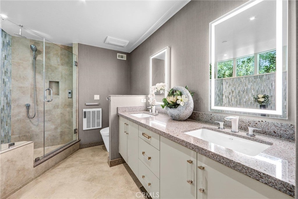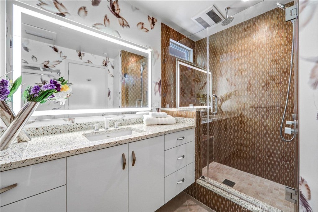 Welcome to this remarkable mid-century modern estate designed by H. Roy Kelley, meticulously remodeled and expanded between 2014 and 2018, this home seamlessly merges iconic architectural charm with modern luxury, offering a sophisticated retreat near the prestigious Langham Hotel. The interior boasts premium finishes and materials, including stone and hardwood flooring, floor-to-ceiling windows, skylights, and a striking fireplace that anchors the living space. The chefs kitchen is equipped with state-of-the-art appliances, featuring a Sub-Zero refrigerator, Bosch range, Oven, microwave and dishwasher, delivering both style and functionality for culinary enthusiasts. Set on impeccably landscaped grounds, the estate offers a wealth of outdoor amenities. Enjoy a resurfaced tennis court, a sparkling pool, a spa, a built-in BBQ bar, and lush, mature plantings that create a serene environment for relaxation and entertaining. The luxurious primary suite serves as a private sanctuary, complete with a secluded deck and its own in-ground spa, perfect for unwinding after a long day. This one-of-a-kind property represents the pinnacle of mid-century modern design, enhanced with contemporary upgrades and situated in a highly coveted location. Dont miss the chance to own this architectural gem!