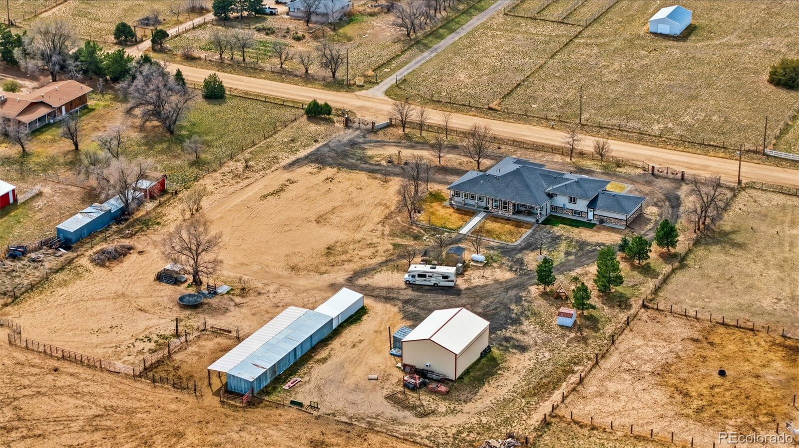 A rare opportunity to own a fully remodeled country retreat and horse property on 9.06 acres in Weld County.This exceptional property showcases a complete transformation, including a stunning brand-new addition designed to blend refined modern living with the tranquility of country living.At the heart of the home is a beautifully reimagined gourmet kitchen featuring elegant quartz countertops, an expansive island, and a walk-in pantryperfectly designed for both everyday living and elevated entertaining. The open-concept living area is filled with natural light and anchored by a striking stone-accented fireplace, creating a warm yet sophisticated atmosphere.The thoughtfully designed addition also includes a private office, a stylish half bath, and a luxurious primary suite that serves as a true retreat, complete with a spa-inspired bathroom and generous walk-in closets.The original portion of the home has been meticulously updated with high-quality finishes throughout, including remodeled bathrooms, new flooring, and an inviting family room with a fireplace and wet barideal for hosting and relaxing. Two fireplaces throughout the home add both charm and ambiance. All five garage spaces are finished, drywalled, and insulated.Major system upgrades include two new heating systems, two new air conditioning units, and a newer roof, offering comfort and peace of mind.The property features 5 bedrooms, 4 bathrooms, and a 5-car garage, all set on 9.06 acres of usable land. Designed with versatility in mind, the property includes a 40x30 outbuilding, two additional sheds, and a stable with loafing sheds, ideal for horses, livestock, or other animals.Experience the perfect balance of luxury, privacy, and true Colorado country livingthis property truly has it all.