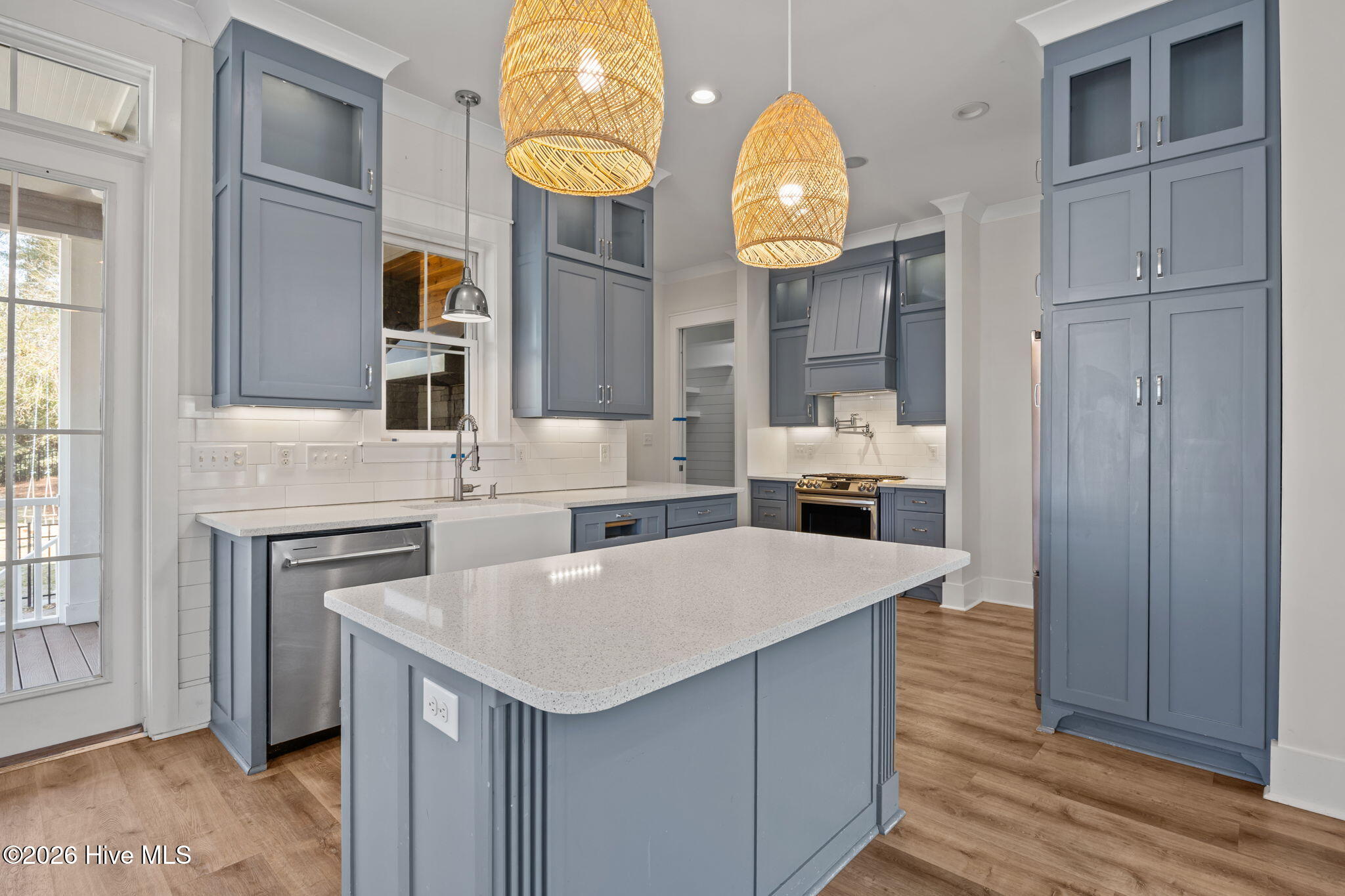 This absolutely breathtaking coastal home and deeded boat slip with lift embodies the very best that Emerald Isle living has to offer. The open floor plan, 10-foot ceilings and huge windows make the house feel absolutely grand. The attention to detail and uncompromising craftsmanship make every room special. The professional-grade gas range, cabinets galore, and farm sink will spoil any chef, and on those beautiful warm summer nights, grill outside on the custom outside kitchen on the screened-in porch. Friends, kids, dogs bring them all. There are four bedrooms, an extra playroom, and a gigantic fenced-in backyard. Walking distance to your boat perched on its lift or the growler for a cold cocktail, this oasis is central to everything you could want to do.