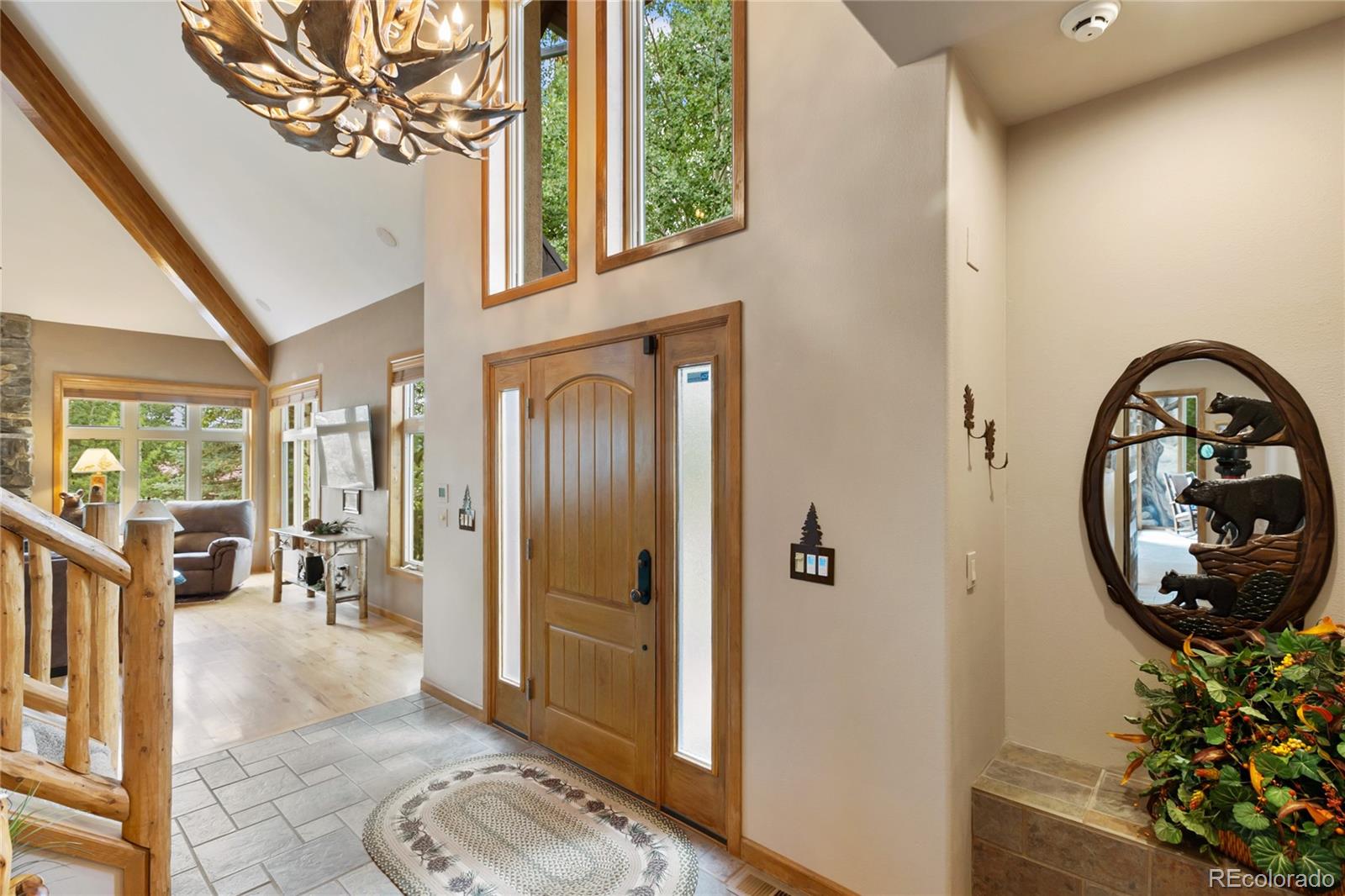 Welcome to a mountain retreat that feels intentional in every detailwhere custom craftsmanship, flexible living, peaceful privacy, & views of Pikes Peak come together on a beautifully treed corner lot in Woodland Park. Designed to live like a spacious ranch, this custom 6 bed, 5 bath home offers room to gather, retreat, & growall w/out sacrificing warmth or character. Vaulted, beamed ceilings.