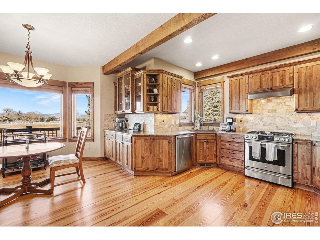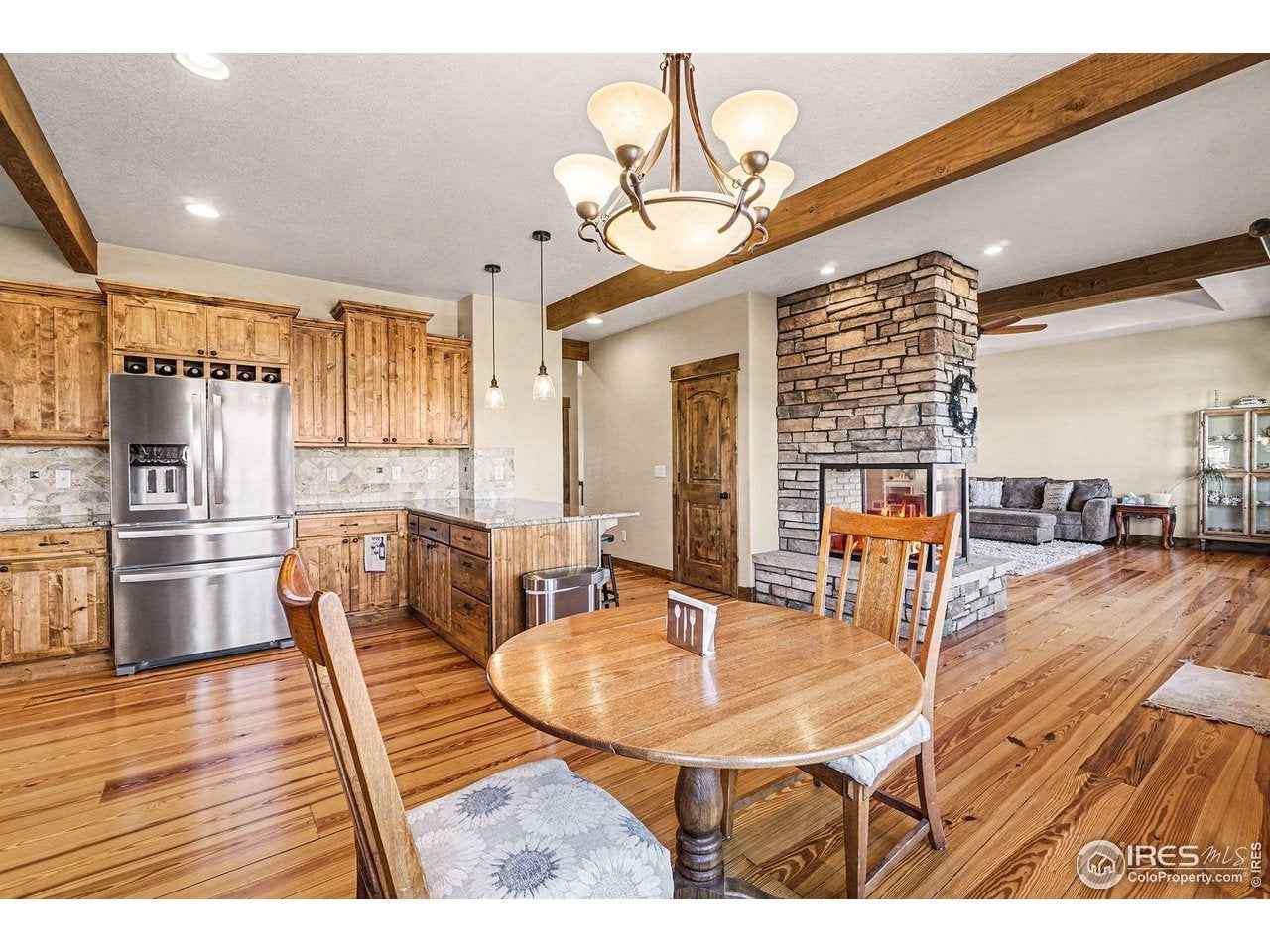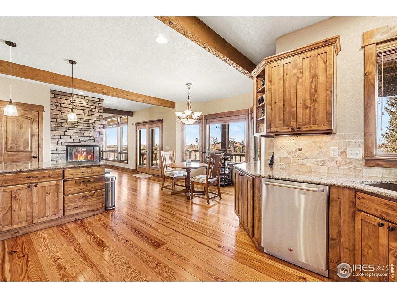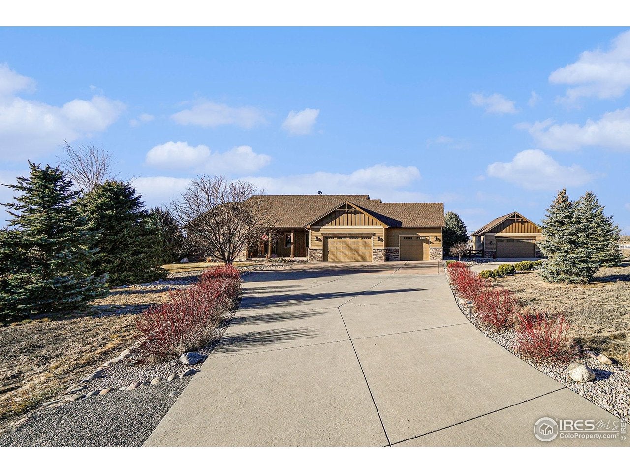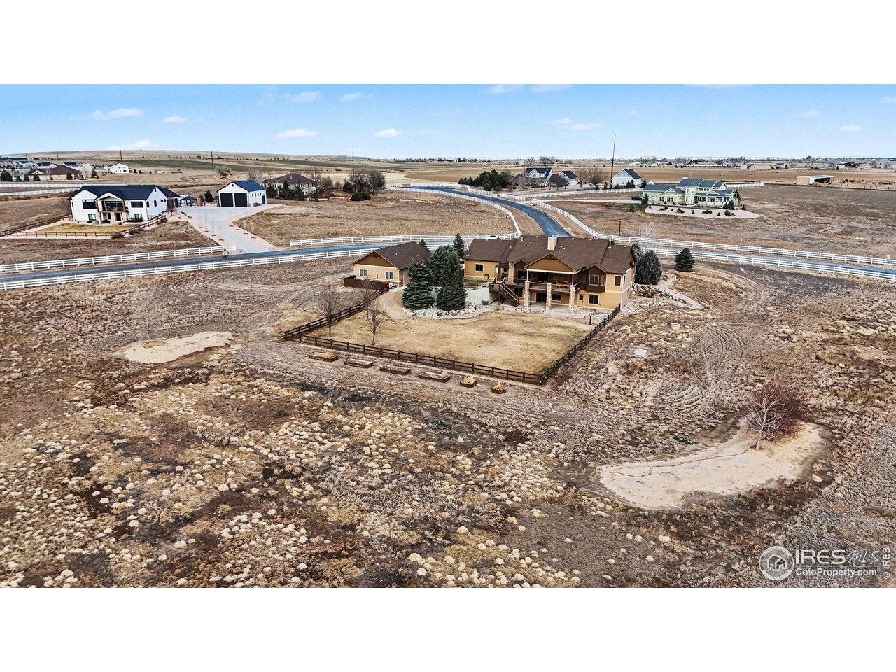 Positioned on 3.7 acres in the gated Belmont Farms community, this custom ranch with walkout basement captures expansive Front Range views and true Colorado privacy-just minutes from I-25 and free of metro district taxes.Designed with intentional sightlines and natural light, the great room showcases floor-to-ceiling windows, hardwood flooring, and a striking three-sided fireplace that anchors the open living space. The kitchen flows seamlessly into the main living area and features granite countertops, stainless appliances, ample cabinetry, and a generous pantry-ideal for gathering and entertaining.The primary suite offers a private retreat with its own fireplace, sitting area, and spa-inspired bath with an oversized walk-in shower. A second main-level bedroom and laundry room provide flexibility and convenience.The finished walkout basement adds substantial living space with a large recreation area, wet bar, additional fireplace, two bedrooms, full bath, and extensive storage-well suited for guests, hobbies, or multi-generational living.Outdoor living is equally impressive with mature landscaping, a covered deck, and a walkout patio that frame the surrounding mountain views. The attached heated three-car garage is complemented by a detached heated shop with high doors and its own bathroom-ideal for vehicles, equipment, or workshop use.Acreage, views, gated setting, and functional outbuildings-properties like this rarely become available in Belmont Farms.