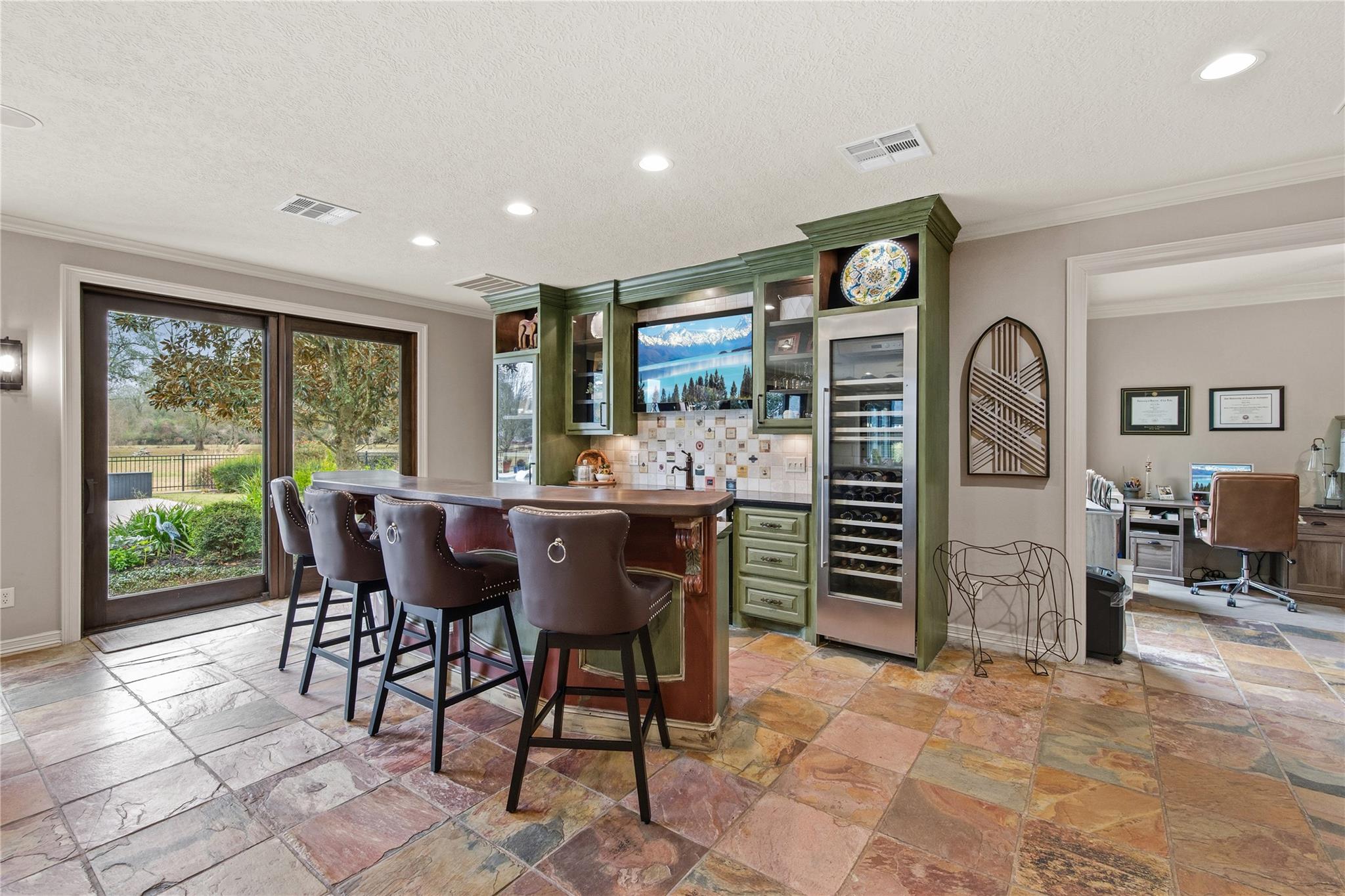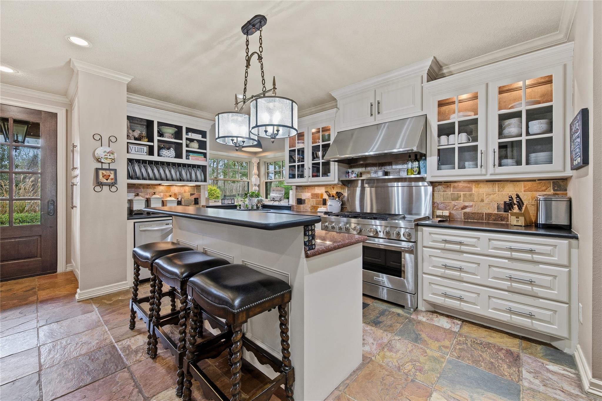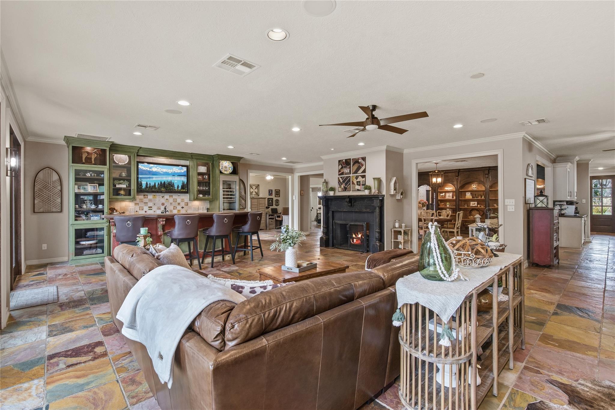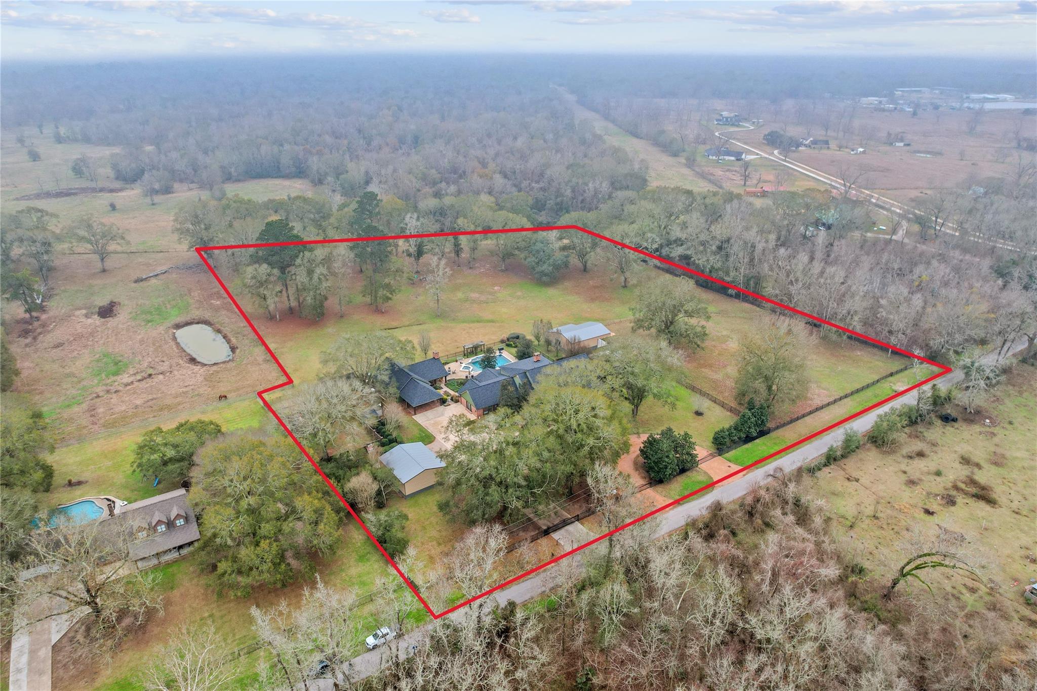 The peace & tranquility of this 1-of-a-kind property nestled on 7.1 completely fenced acres with beautiful trees, lush landscaping & City services is a must see. The main home has luxurious amenities throughout including natural slate floors, crown molding, plantation shutters, Pella sliding doors & screens & custom cabinets throughout, Chefs kitchen is equipped with 48 dual fuel range, built-in refrigerator, salamander broiler, 2 sinks, 2 dishwashers and 2 islands. The family & dining room are anchored by a double-sided gas log fireplace. Family room has incredible views along with a wine fridge, ice maker & bar area. Primary suite has his/hers bathrooms, clawfoot tub, walk-in shower & 2 walk-in closets. First floor also has a large utility room, half bath, sunroom/game room, 1 bedroom guest suite. Upstairs are 2 bathrooms, media room, 2 flex spaces that could be bedrooms, storage or playroom. 1260 sq ft guest home, Viking appliances, outdoor fireplace, in-ground pool, barn/stable