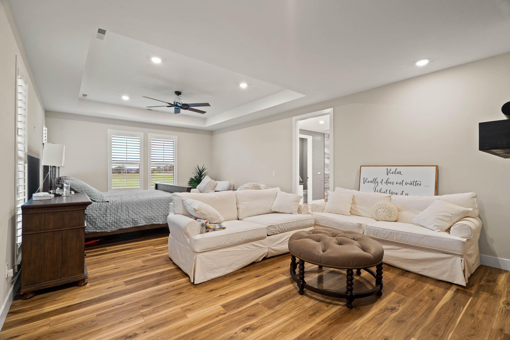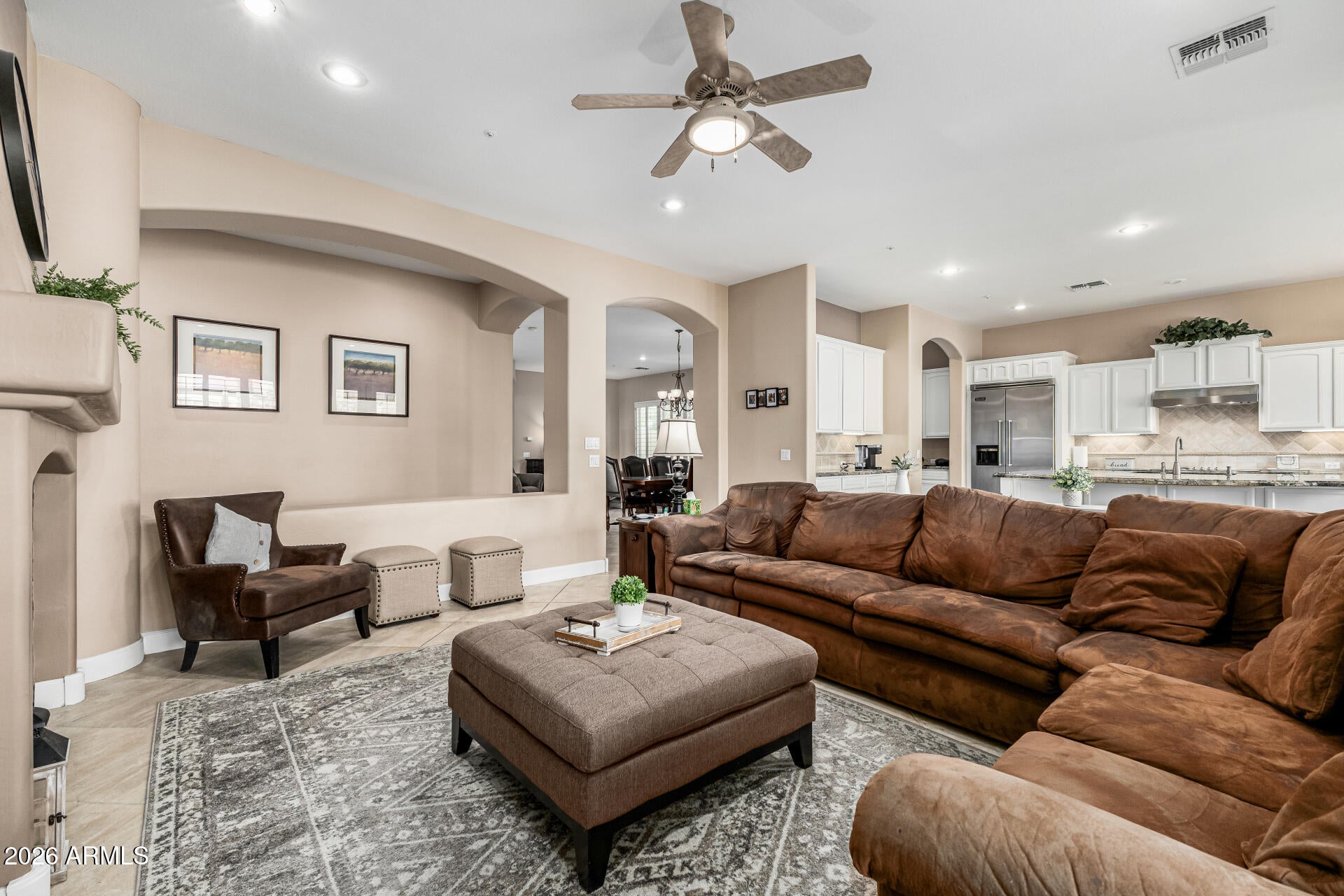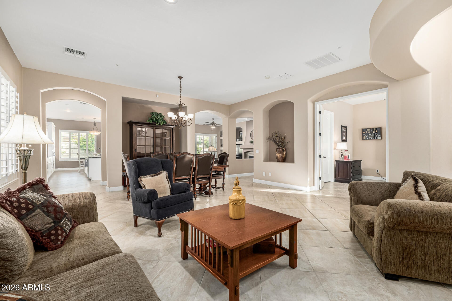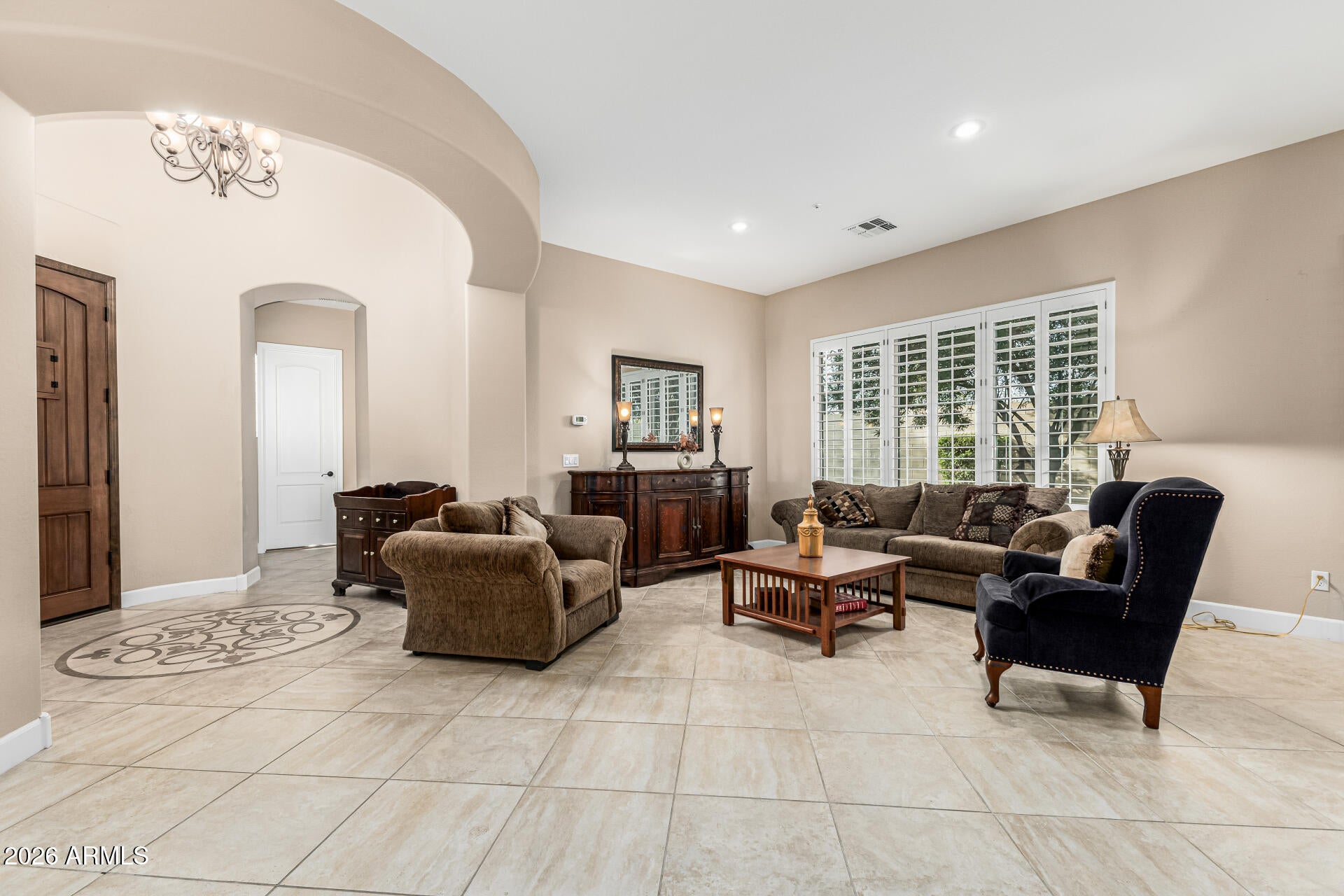 Welcome to your dream home! This remarkable estate perfectly blends timeless elegance w/modern luxury! Manicured landscape, stone accents, & a courtyard elevate its curb appeal. Discover impeccable craftsmanship & meticulous attention to detail throughout. Circular foyer, tile flooring, archways, plantation shutters, fire sprinklers, & bountiful natural light create a bright, airy ambiance.